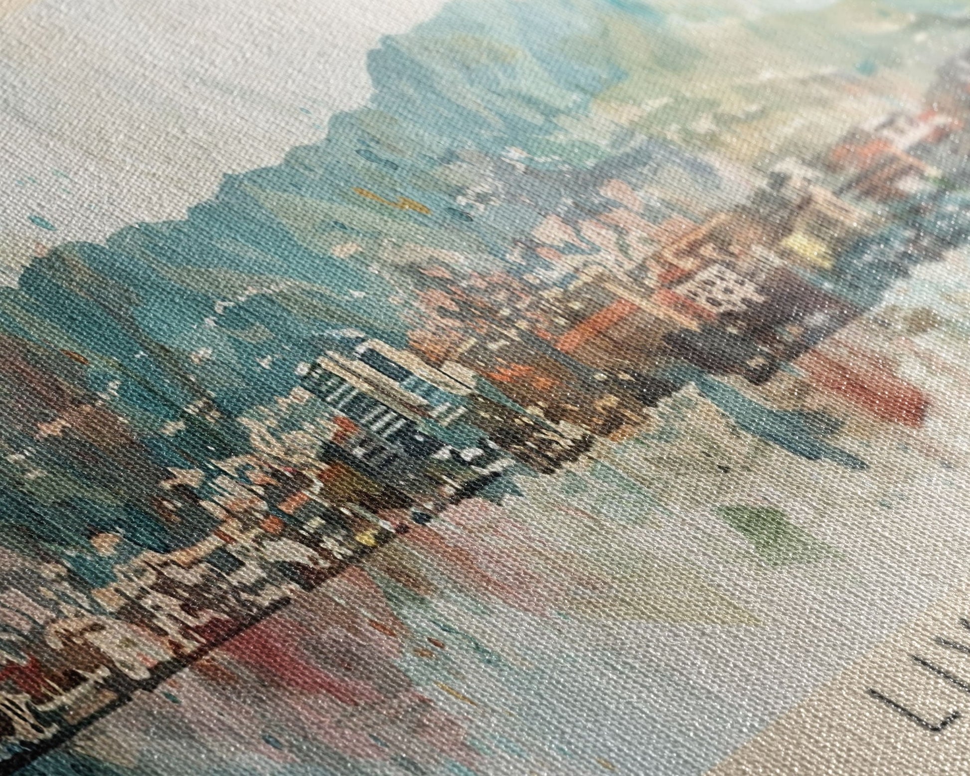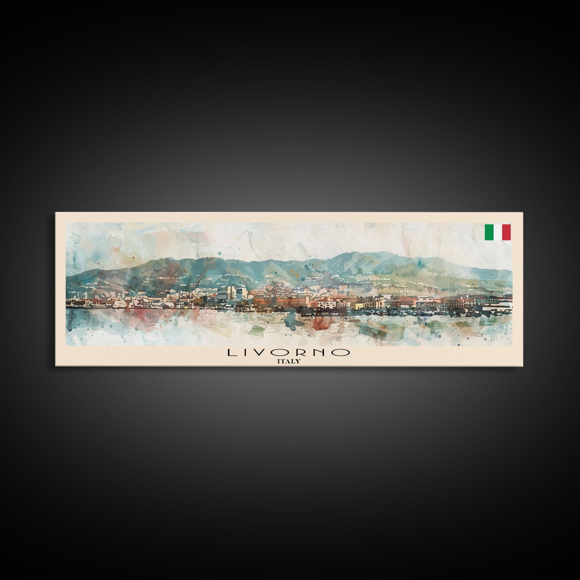Livorno Italy Panoramic Travel Poster, Framed Canvas Print or Metal Wall Art, Travel Art, Home Decor, Panoramic Painting, Midcentury Art