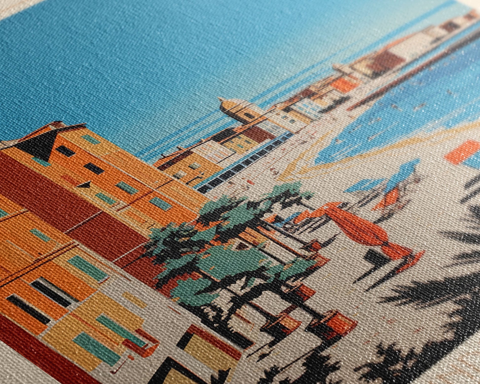 Livorno Italy Travel Poster Framed Canvas Print, Wall Decor, Midcentury Modern Art, Pop Art, Scenic Art for Bedroom and Office