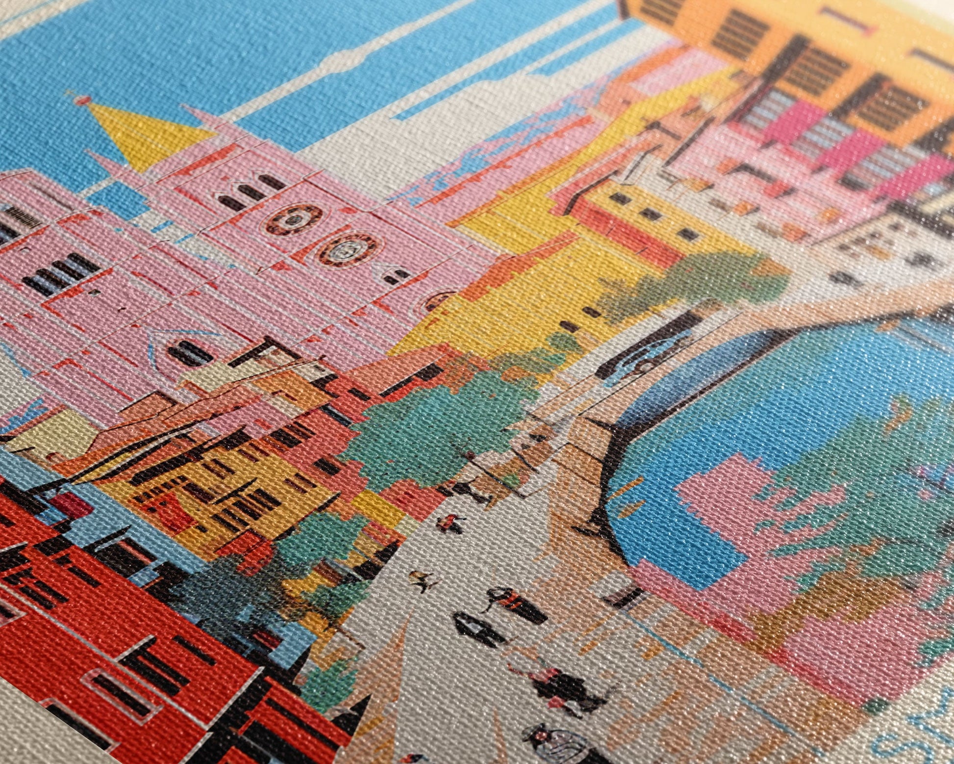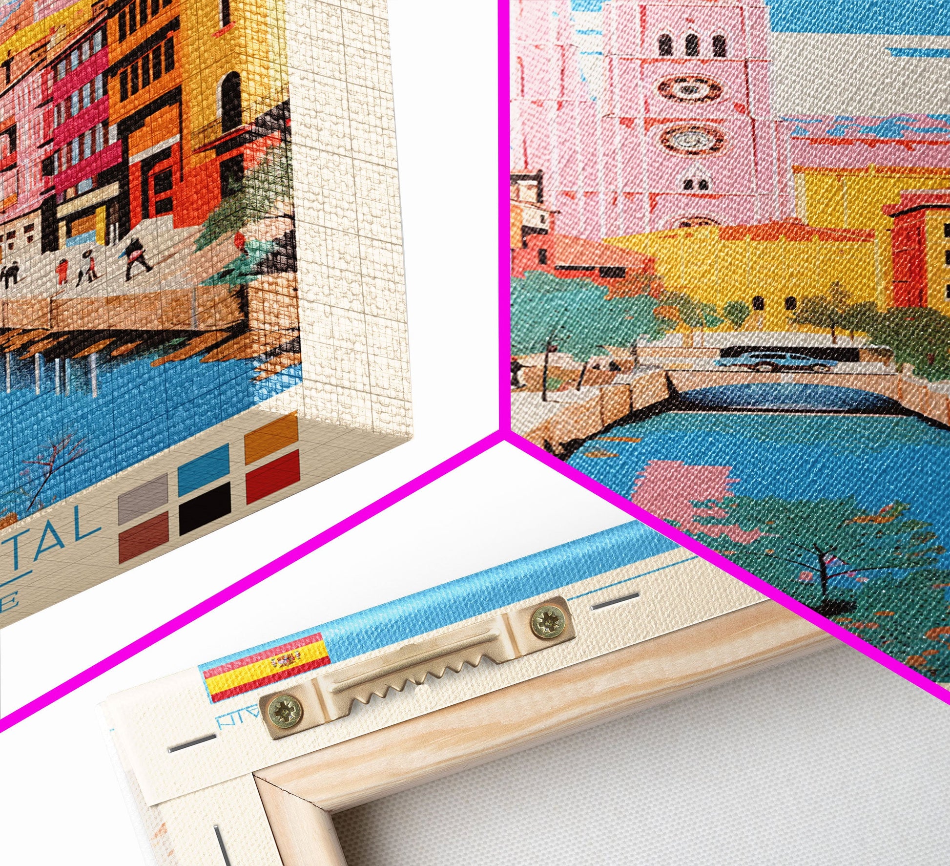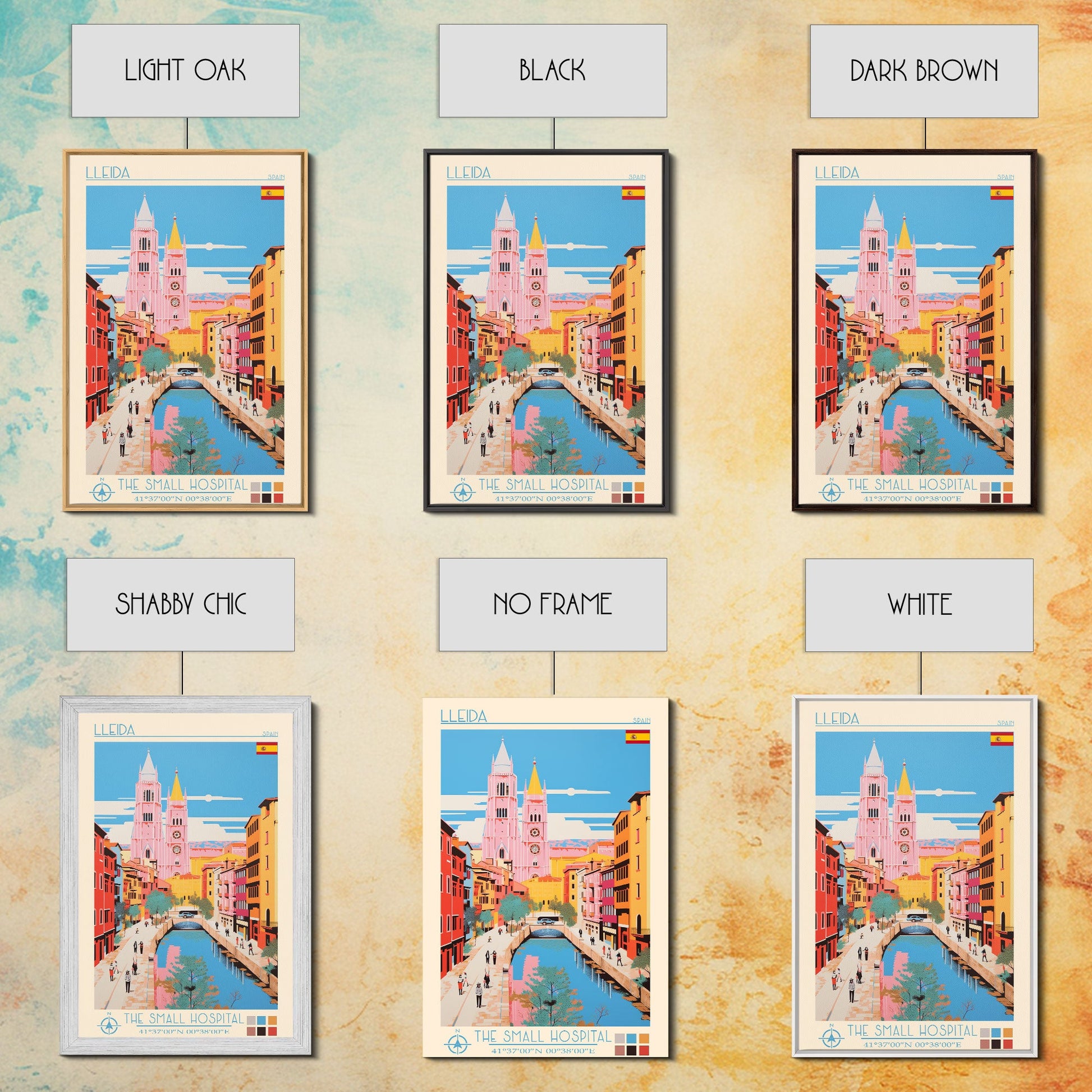Lleida Spain Travel Poster Framed Canvas Print, Midcentury Modern Art, Pop Art Wall Decor, Scenic Art, Living Room and Office Gift