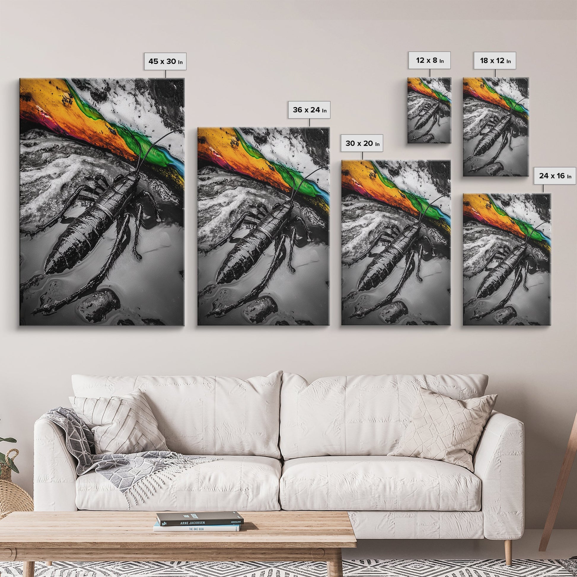 Lobster Art, Coastal Wall Decor, Ocean Life Print, Black and White Art, Nautical Theme, Canvas Print, Beach House Wall Art
