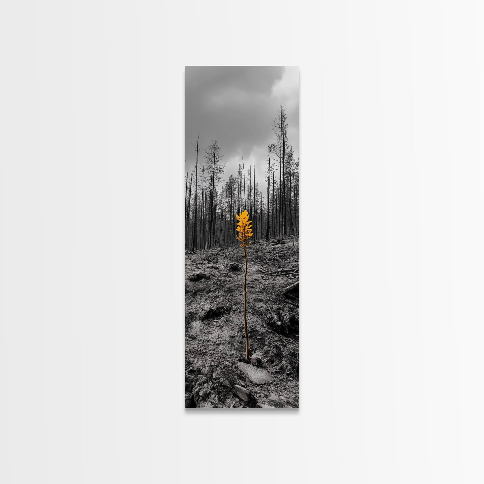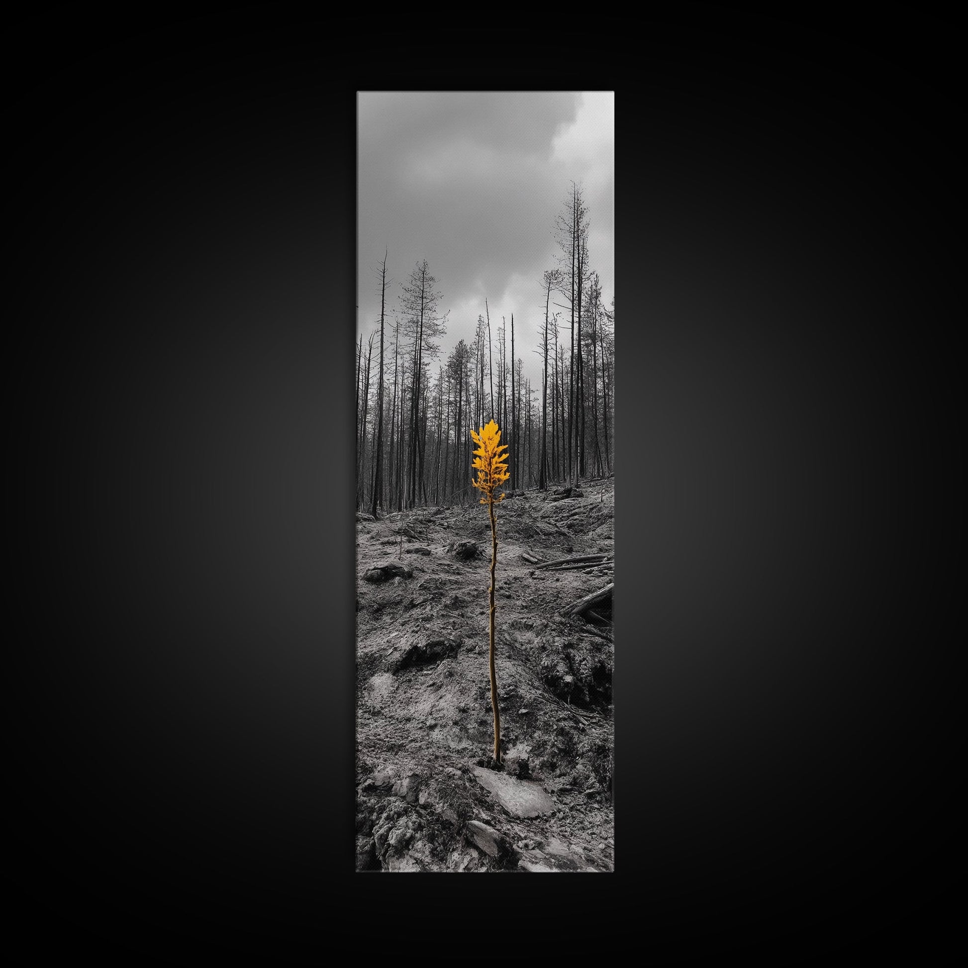 Lone Sprout, Forest Renewal, Emotional Nature Scene, Moody Landscape Art, Framed Canvas Print, Autumn Wall Decor, Rustic Nature Style