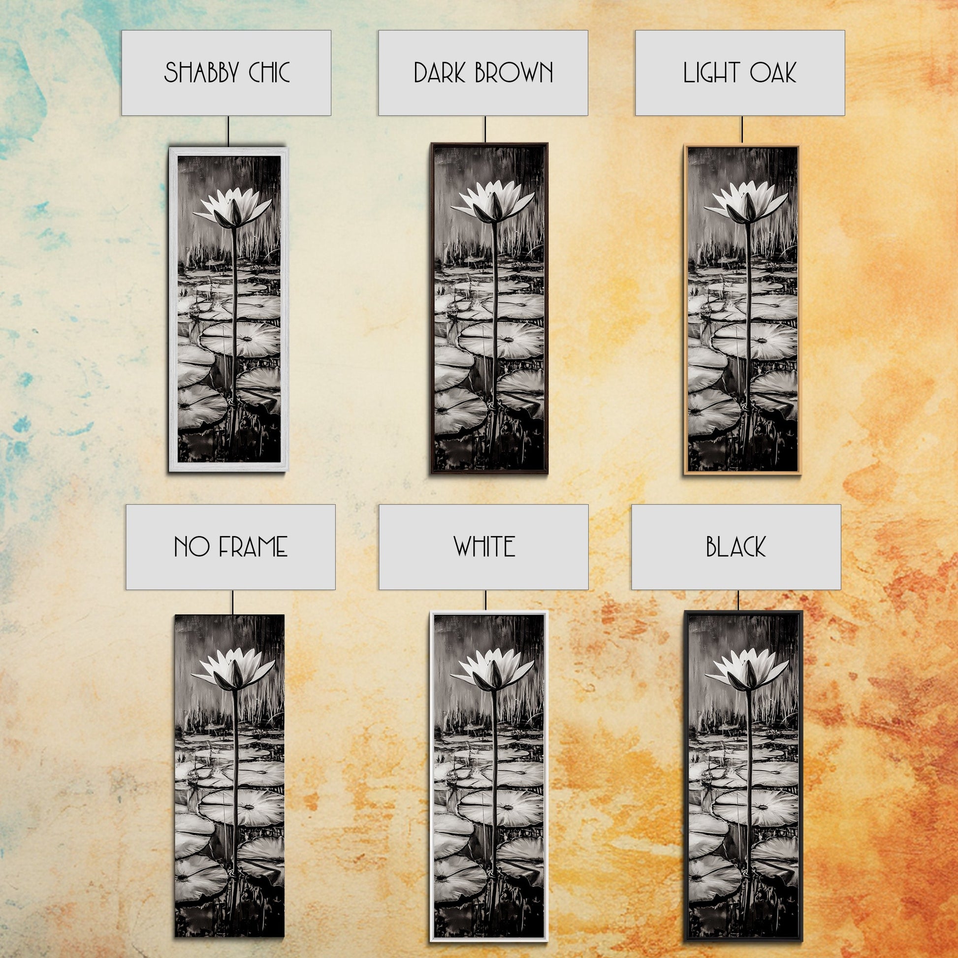 *Optional frames add a total of 1.5 inches to each dimension, for example a 10x20 canvas with a frame will be 11.5 by 21.5 inches total. All framed canvas are 1.5" total depth.