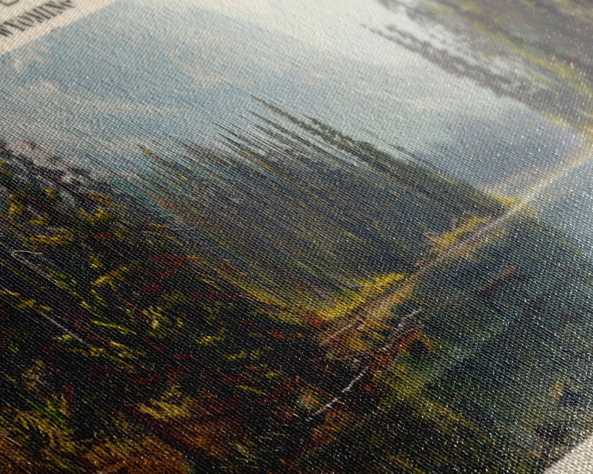 Lower Slide Lake Wyoming Framed Canvas Print, Lake House Decor, Panoramic Wall Art, Travel Poster, Landscape Painting, Bedroom Decor