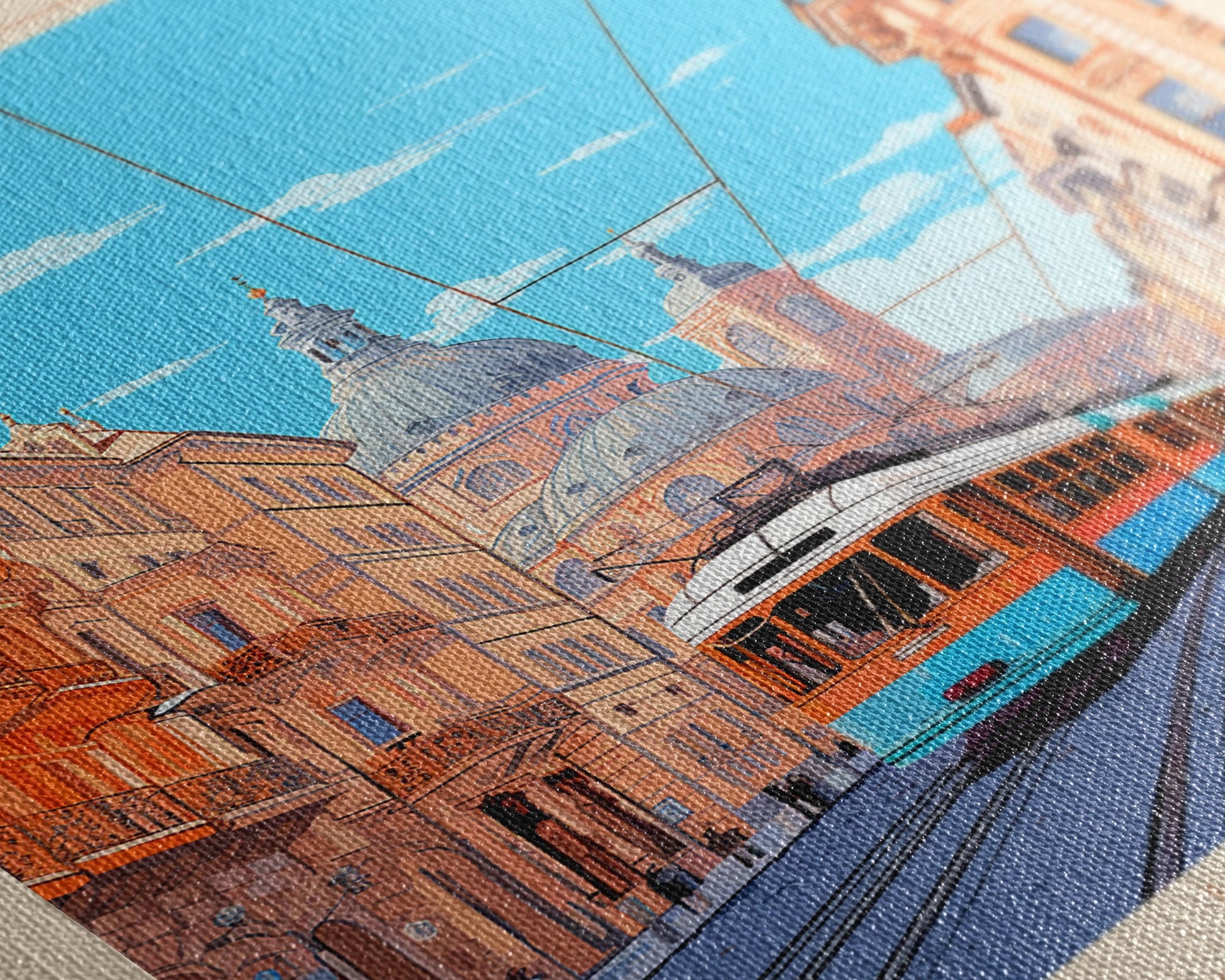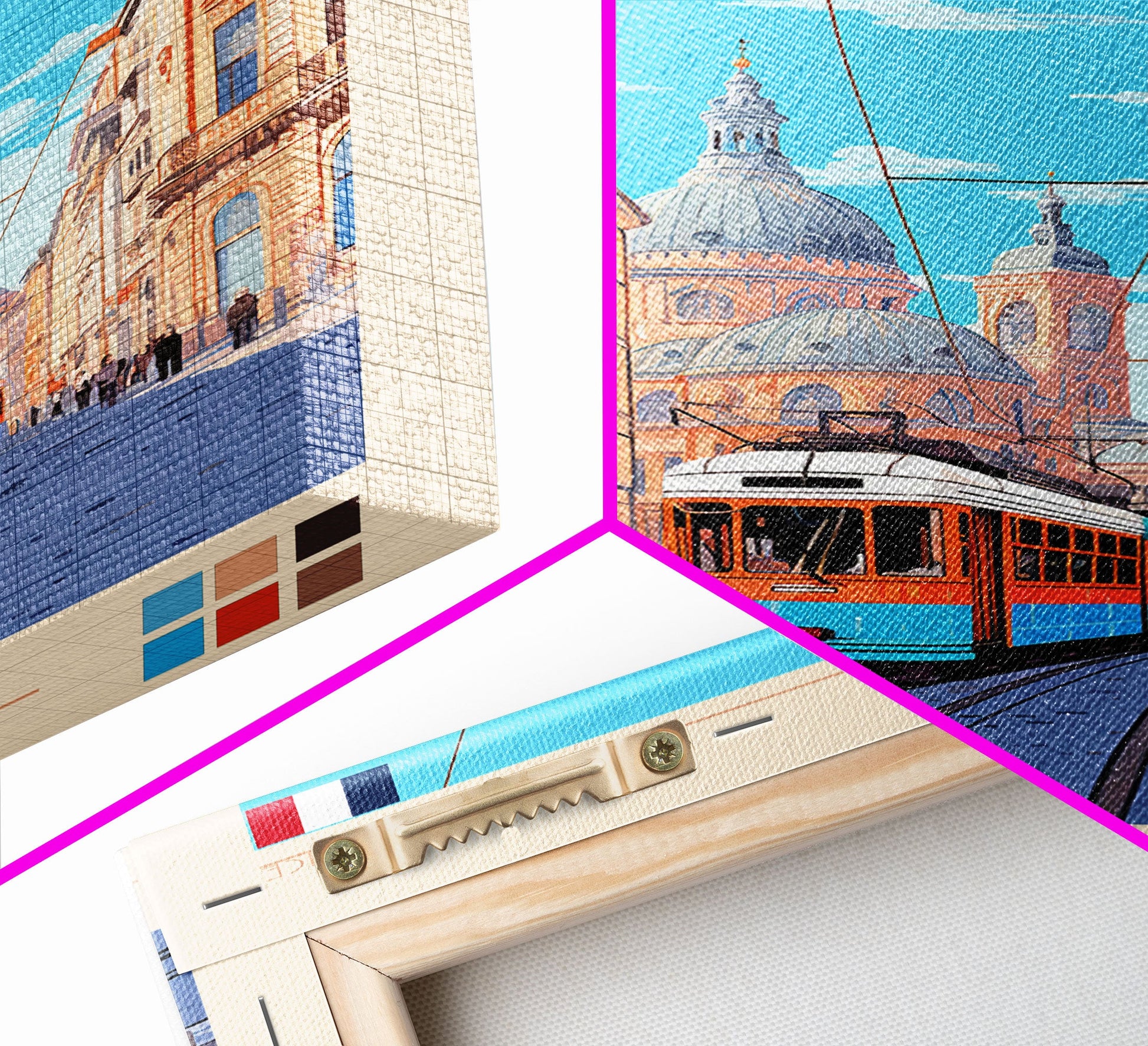 Lyon France Travel Poster Framed Canvas Print, Midcentury Modern Art, Pop Art Wall Decor, Scenic Bedroom Art, Office Decoration