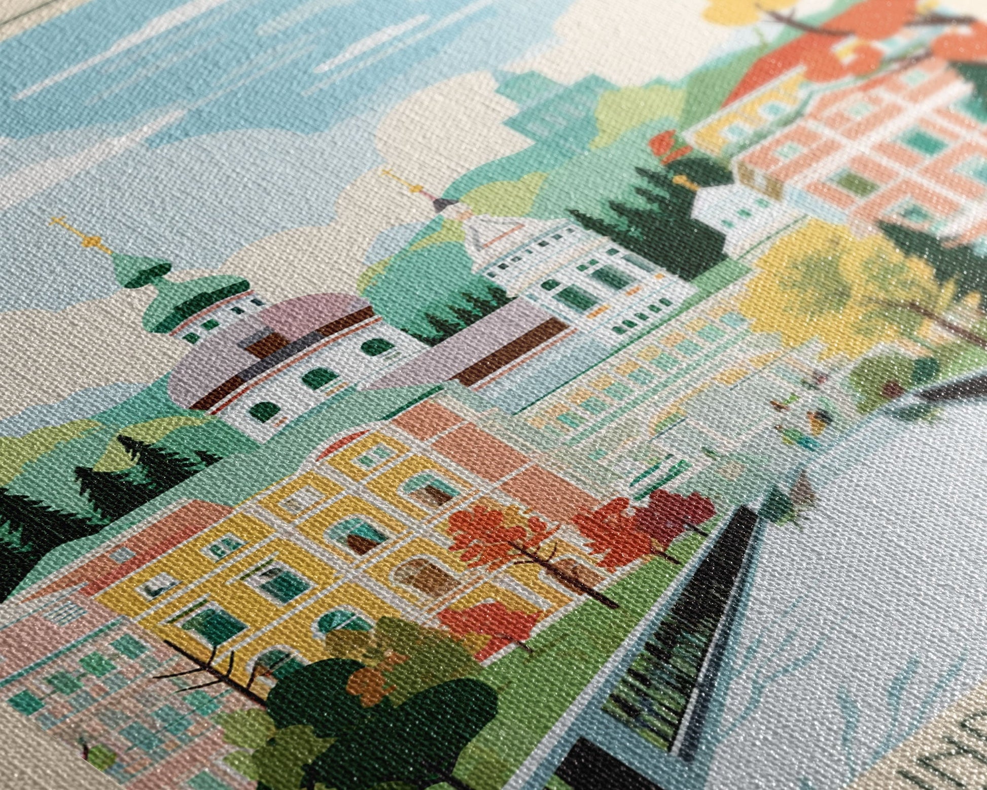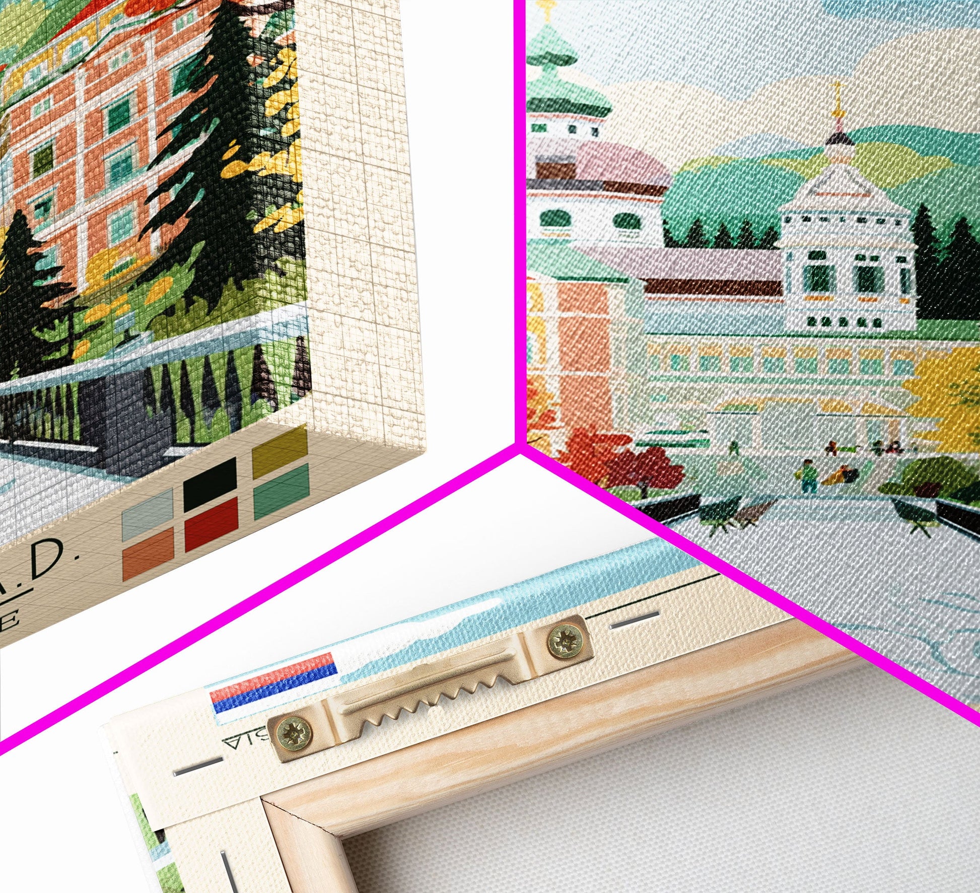 Lyubertsy Russia Travel Poster Framed Canvas Print, Midcentury Modern Art, Pop Art Wall Decor, Scenic Living Room Art, Bedroom Decor