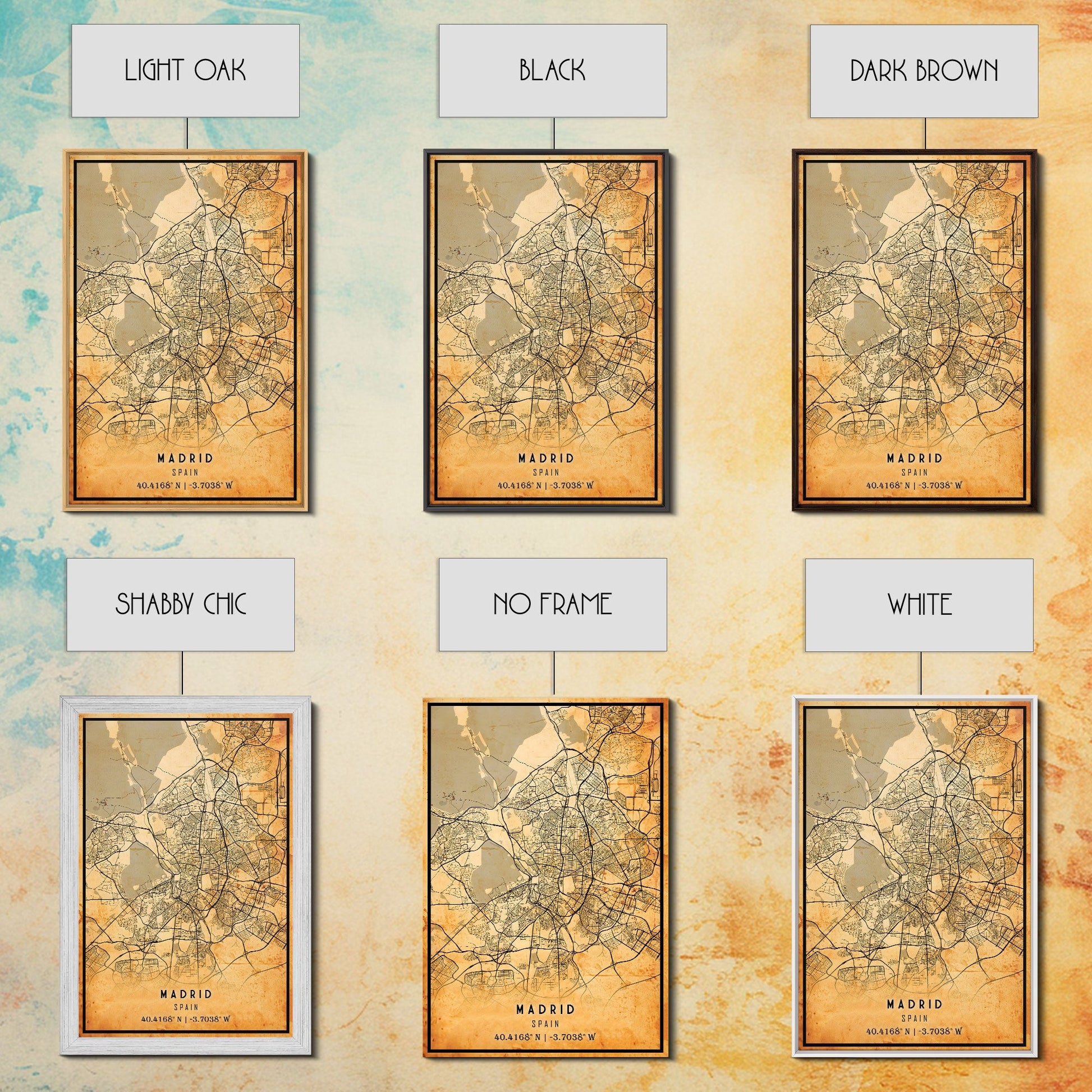 Madrid Spain map print poster or framed canvas, Madrid map print poster canvas, Madrid city map print poster canvas, Vintage Travel Art