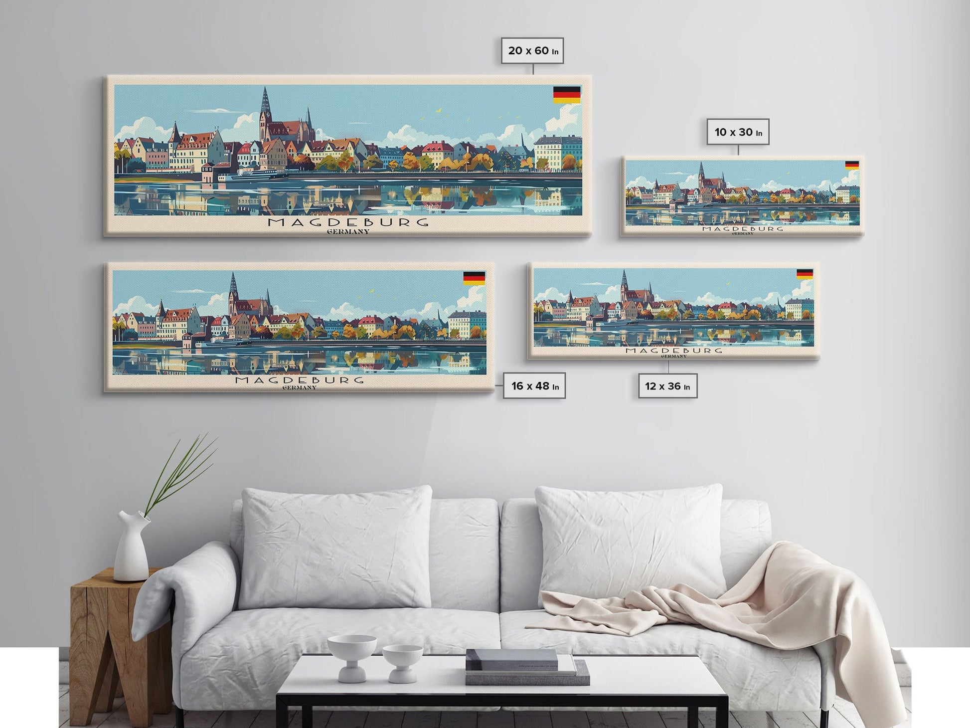 Magdeburg Germany Wall Art, Panoramic Travel Poster, Panoramic Framed Canvas Print, City Wall Art, Wall Hanging Home Decor, Travel Art
