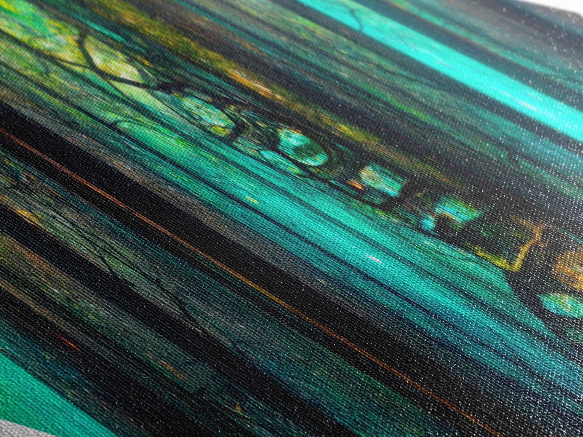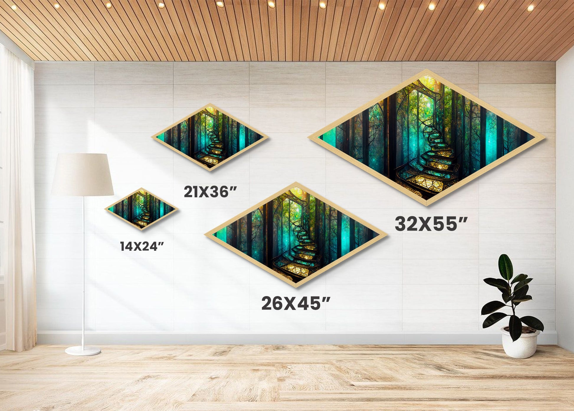Magic Forest Portal Diamond Shaped Canvas Textured Print, fantasy woodland entrance art, colorful ethereal tree landscape print