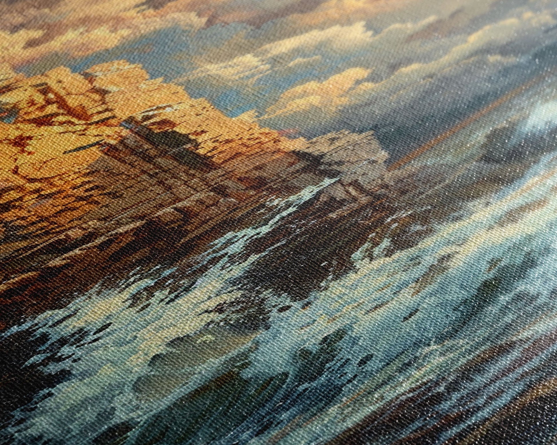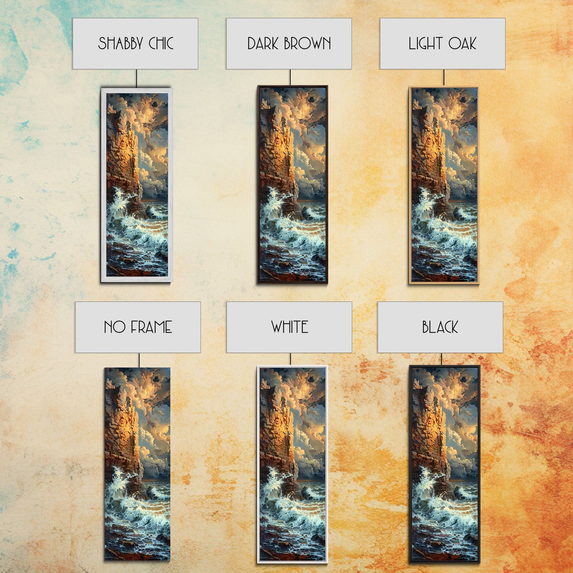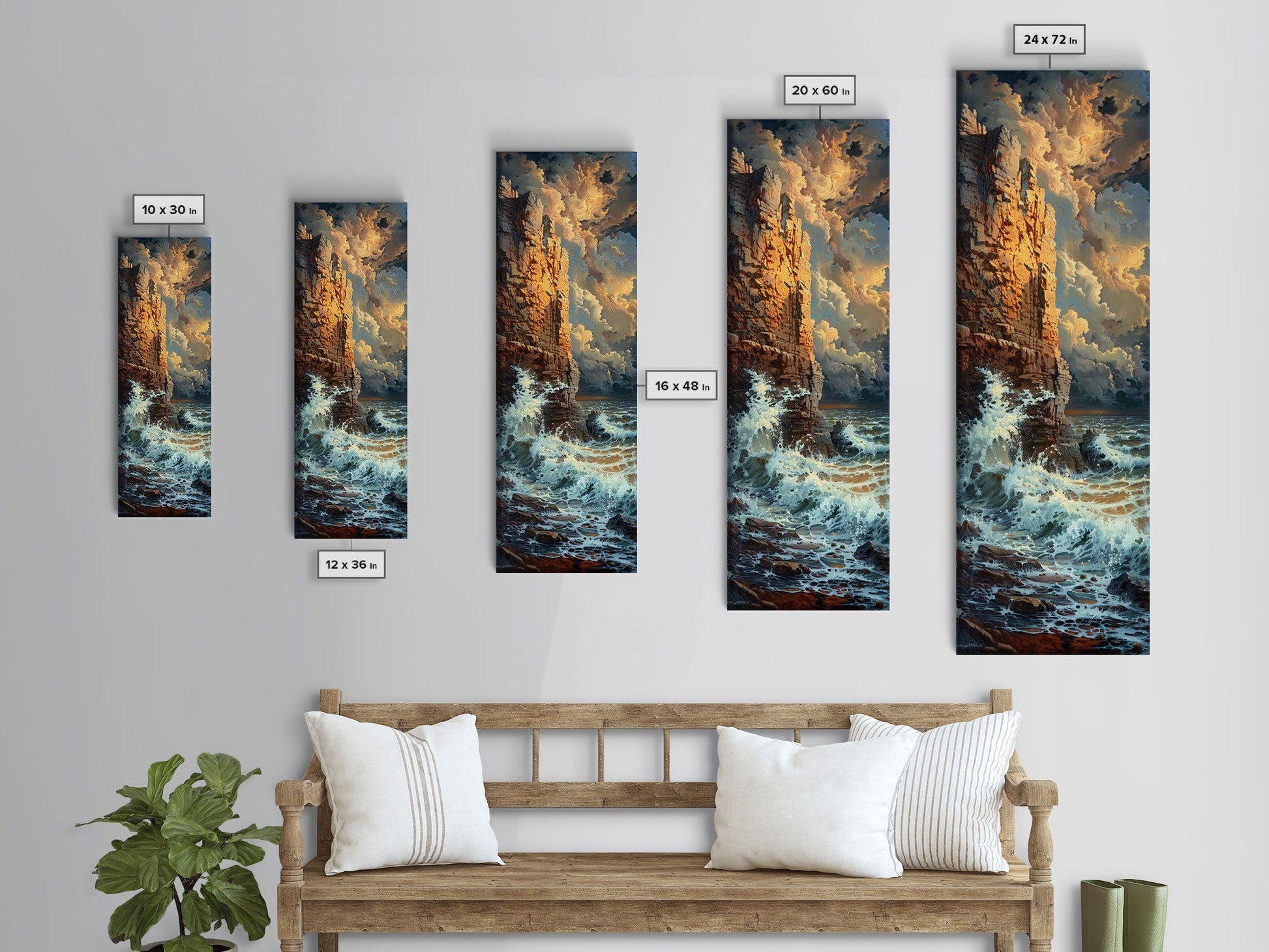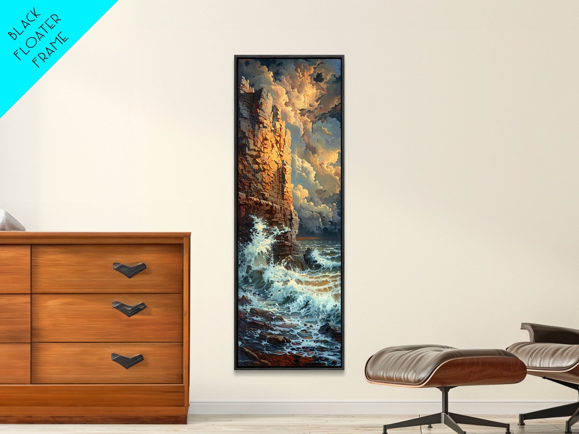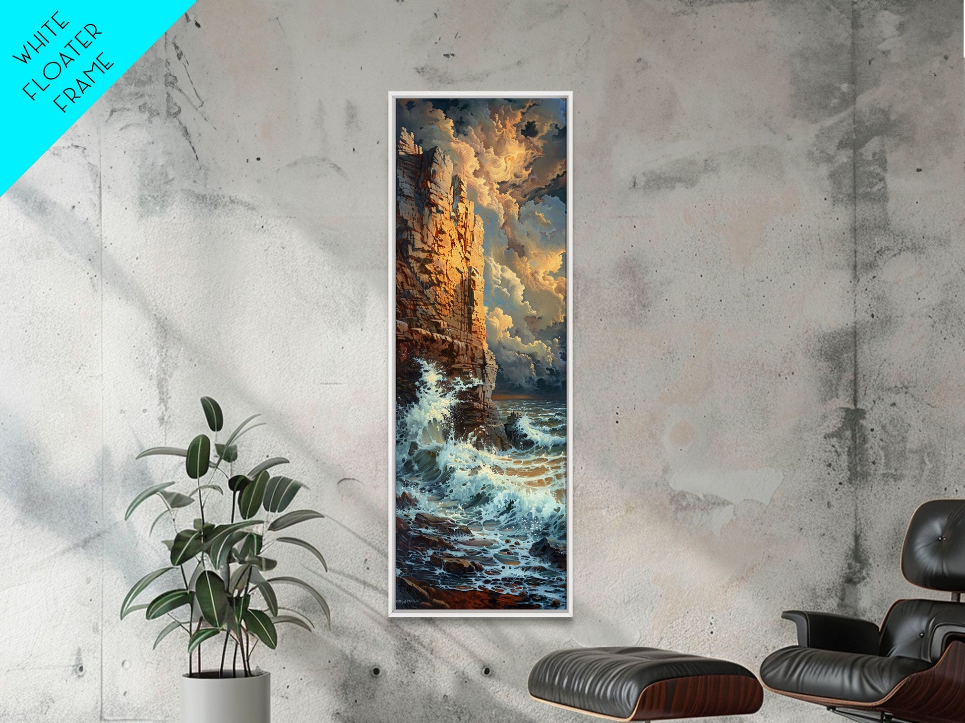 Majestic Cliffside and Crashing Waves in a Coastal Landscape on a Framed Canvas Print Tall Art Piece