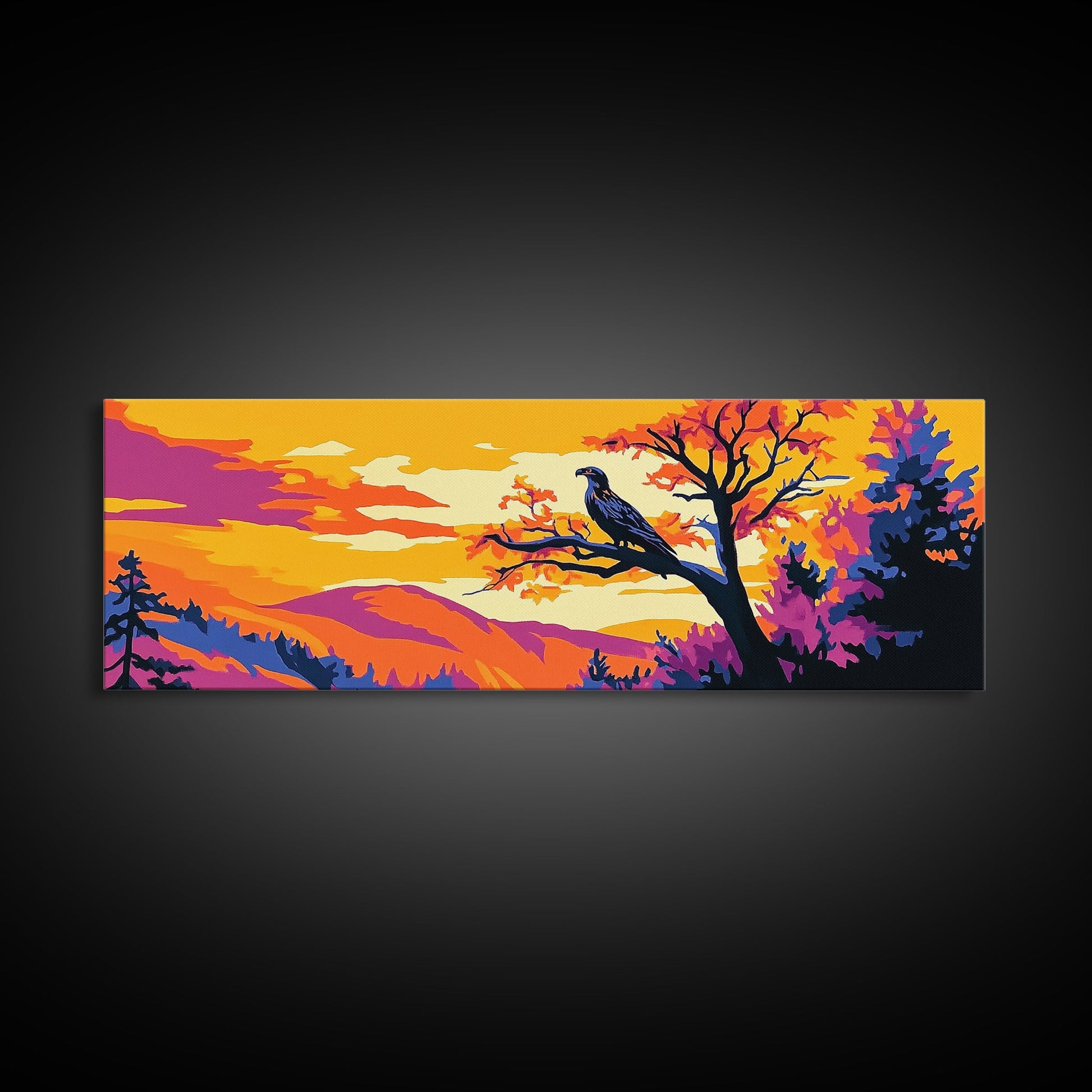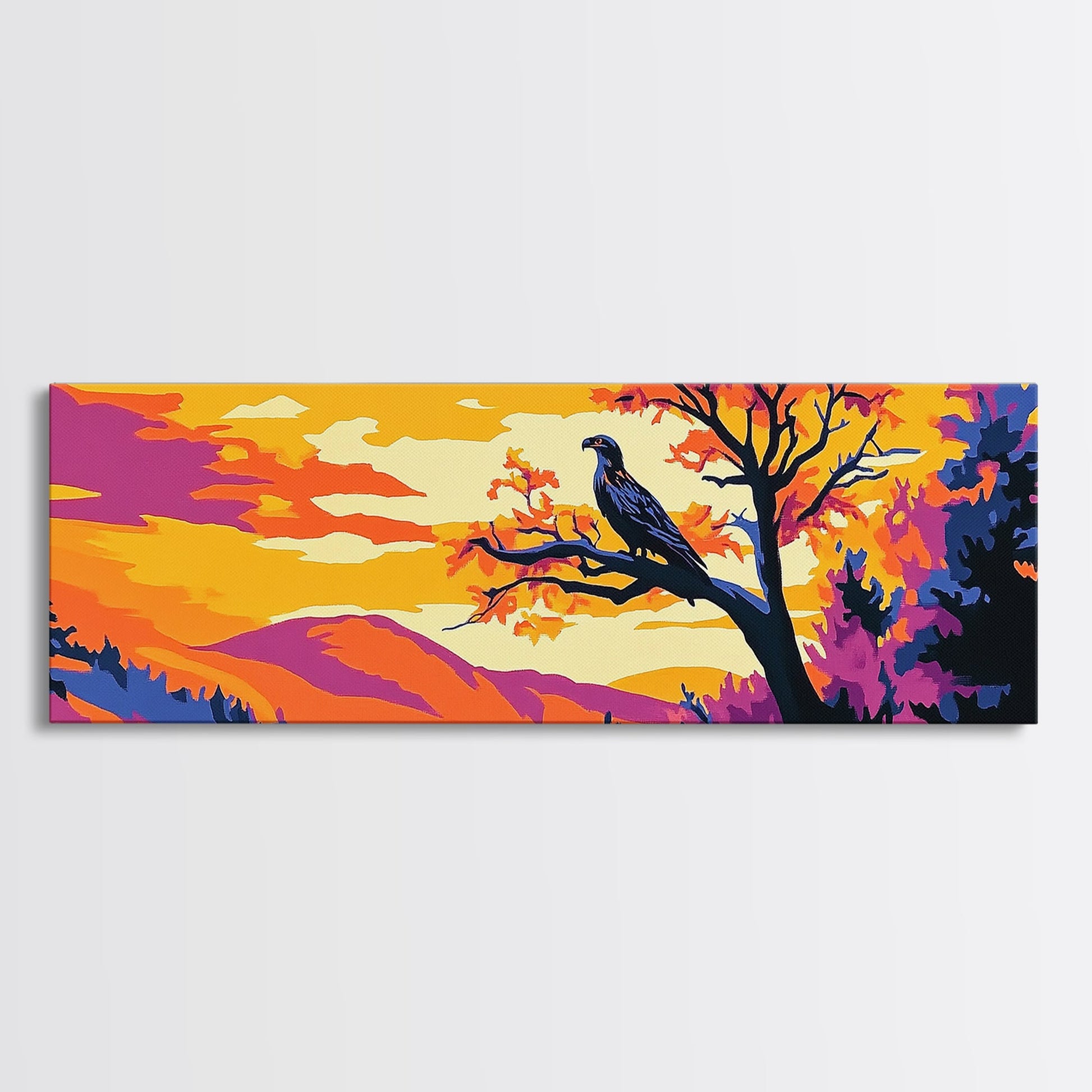 Majestic Eagle, Autumn Tree Wall Art, Wildlife Nature Print, Mountain Wall Decor, Framed Canvas Print, Living Room Art, Boho