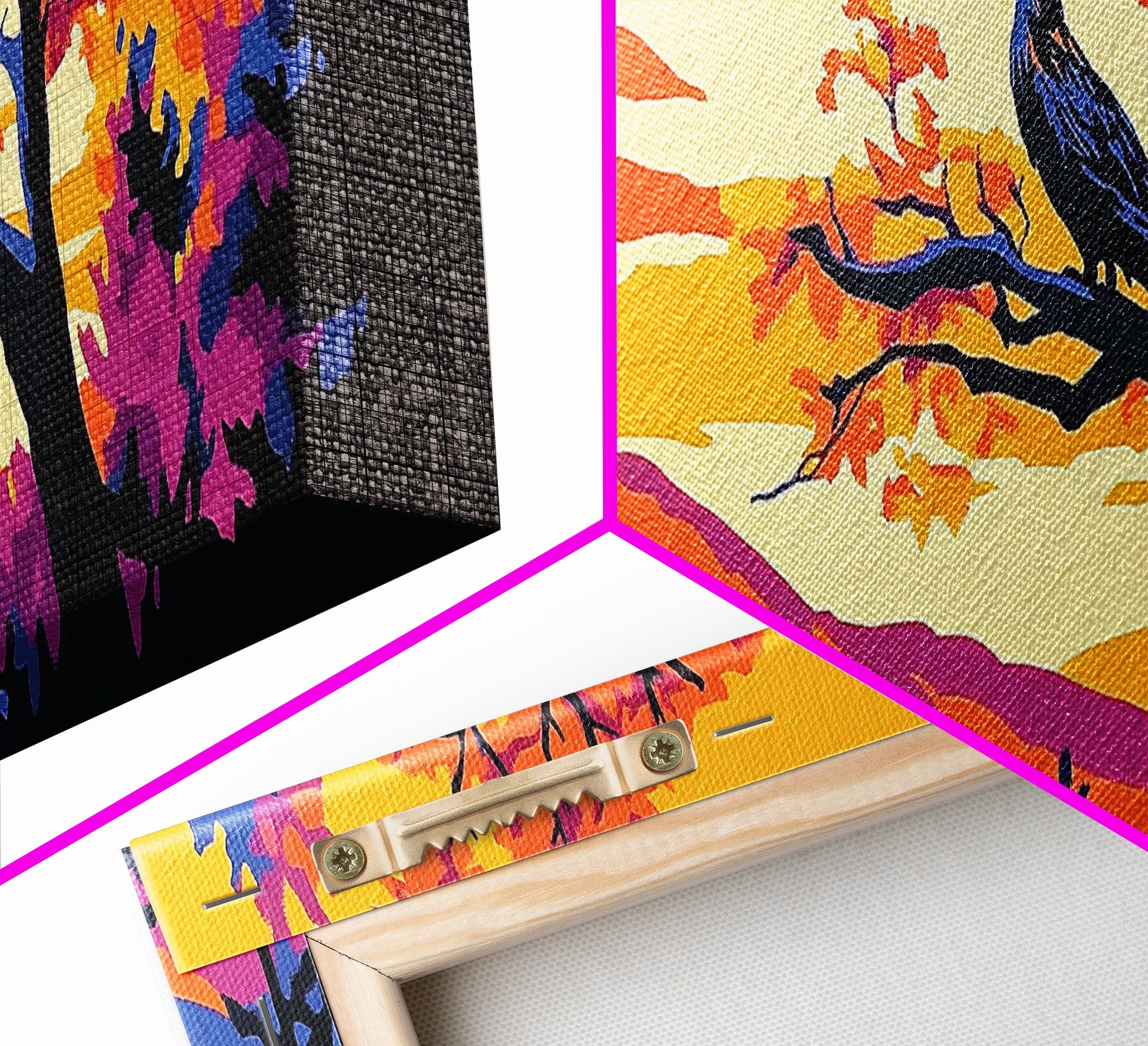 *SHIPPING: Every canvas is carefully wrapped in bubble wrap and foam corner protectors, and shipped fully assembled and ready to hang with sawtooth hangers in a flat box. All you need is a hammer!