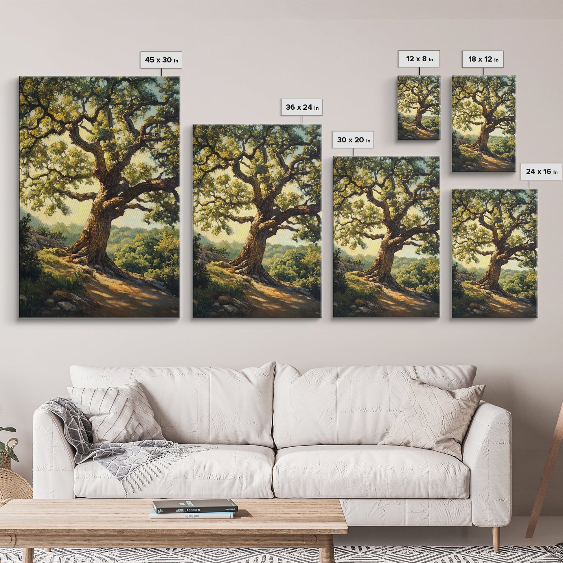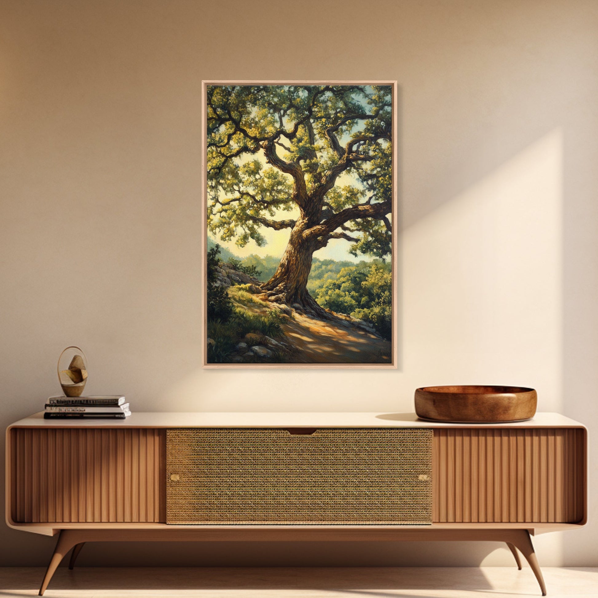 Majestic Oak Tree Framed Canvas Print Rustic Landscape Painting Oak Tree Art Above Couch Decor Living Room Wall Art Gift Idea