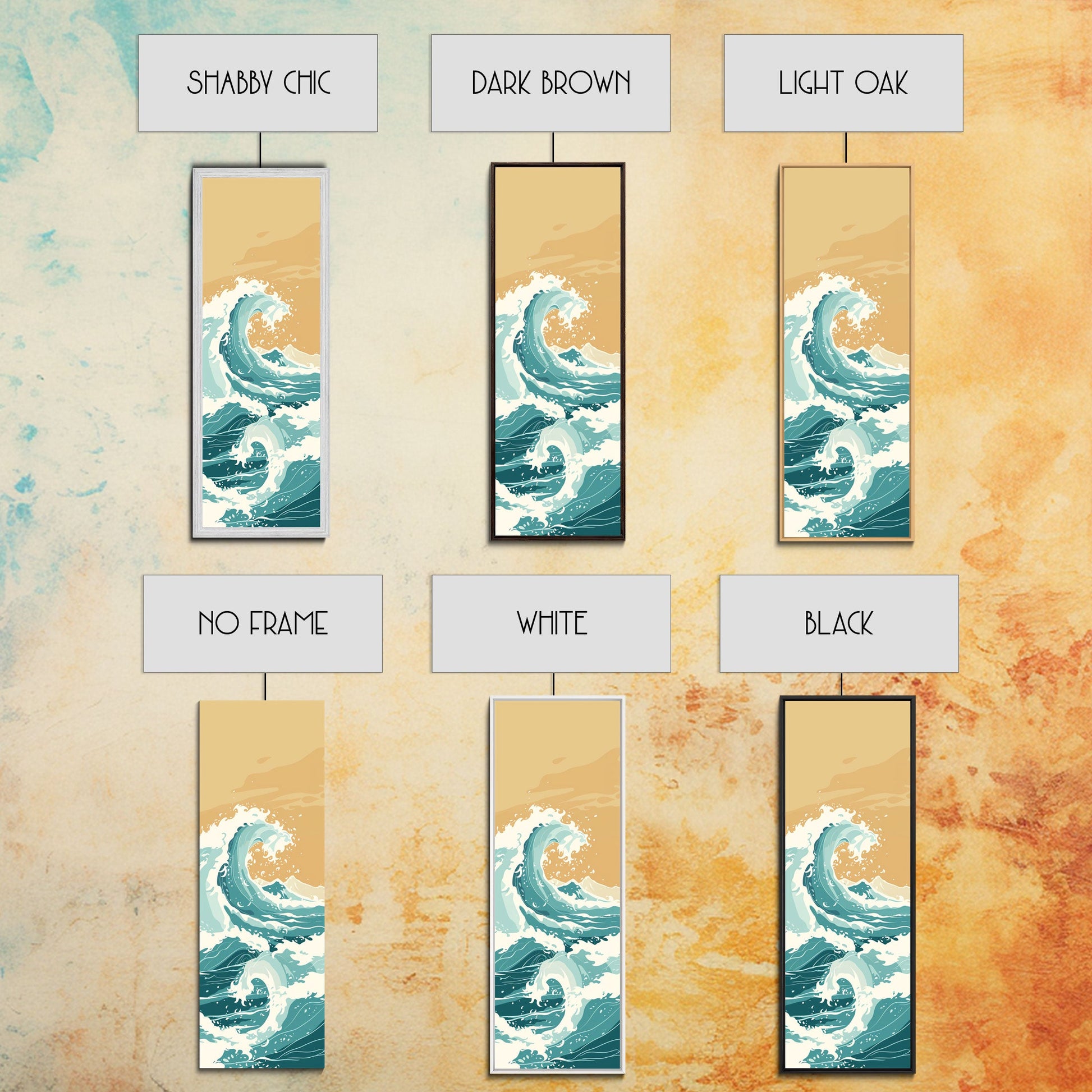 Majestic Ocean Wave In A Minimalist Style – Framed Canvas Print With Skinny Art And Tall Art Featuring Ukiyo-E Art And Japanese Style Art