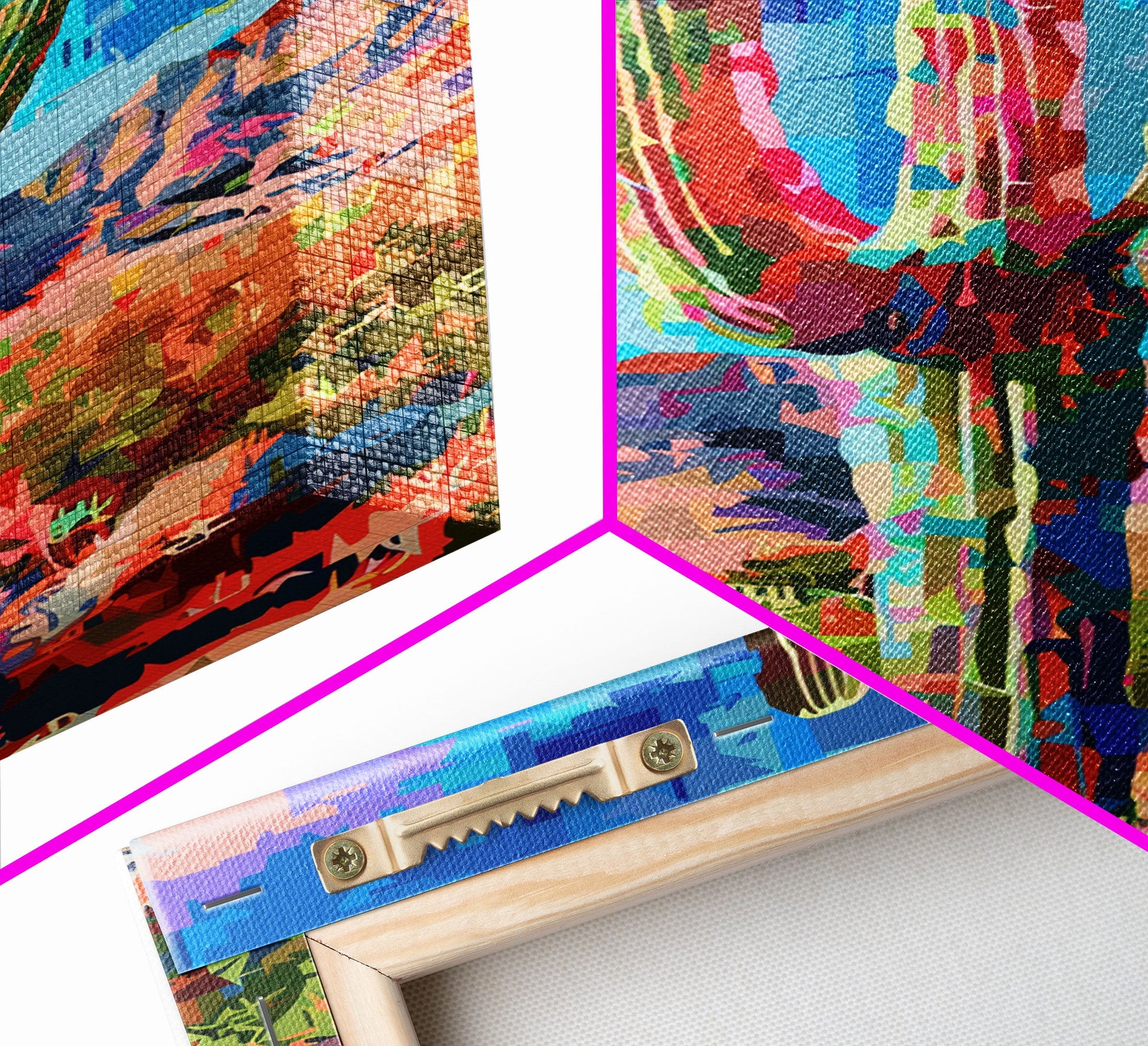 Hello and thank you for taking the time to view our modern high quality giclée artwork! We offer both posters and stretched canvas prints. Our posters are printed on Ultra Matte 60 lb / 230 GSM high quality photo paper, with a thickness of 10 mil. Our canvases are printed on museum grade 350 GSM canvas material with ECO friendly archival grade ink, then hand stretched and stapled over premium, FSC certified and shrink resistant frames. Designed and built to last a lifetime.