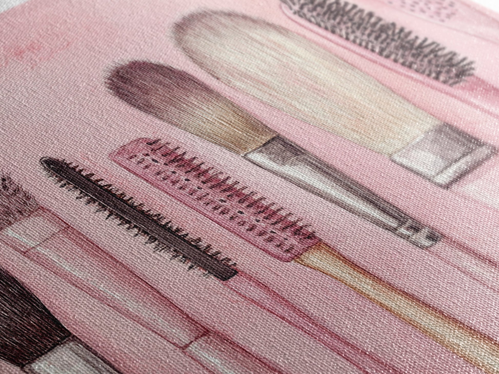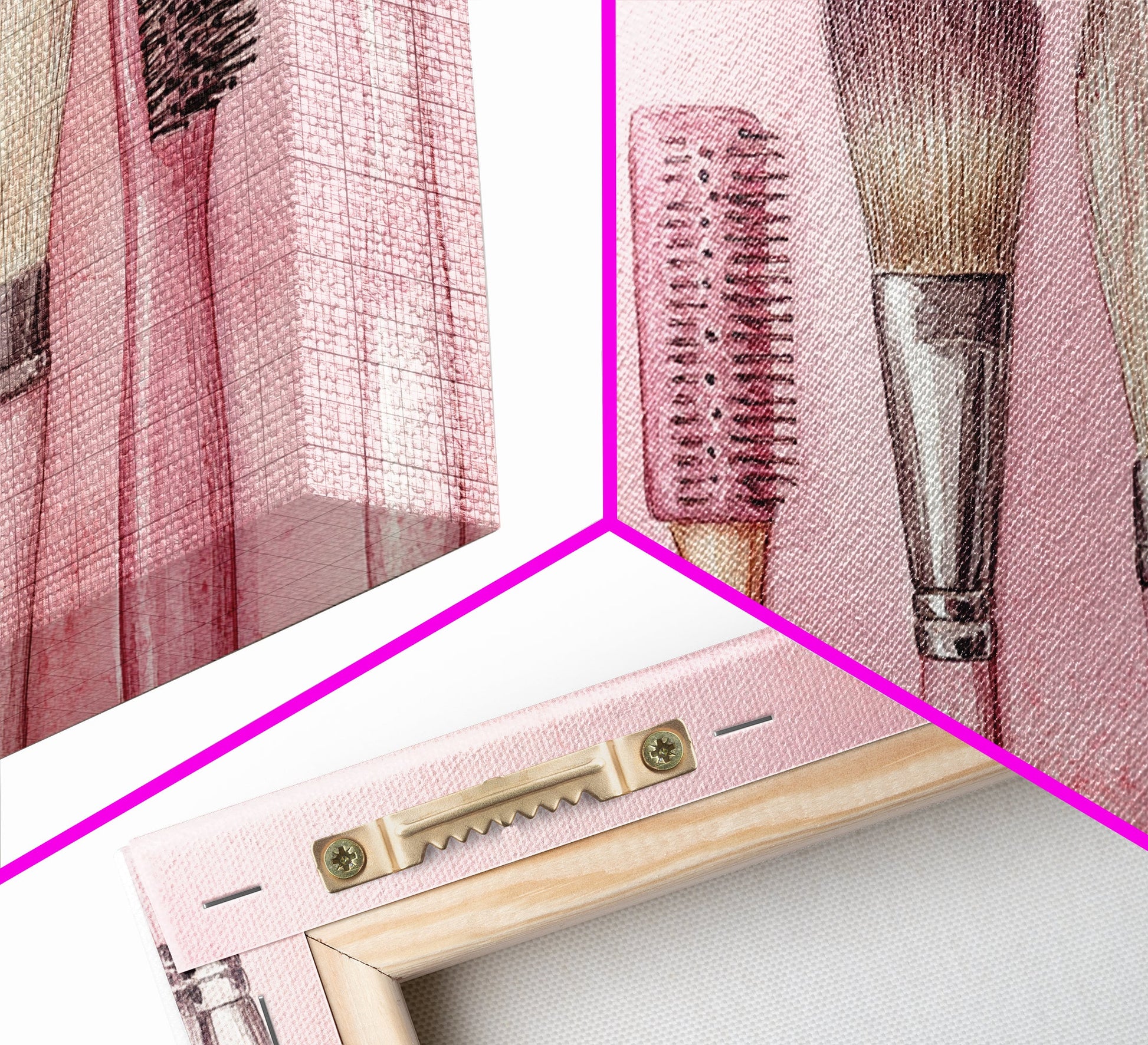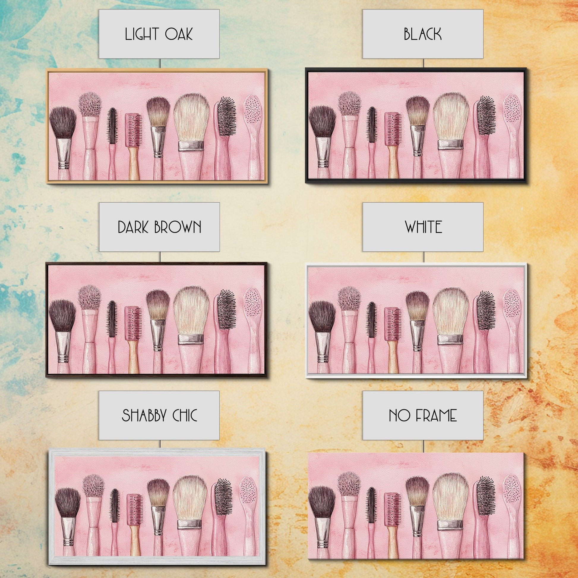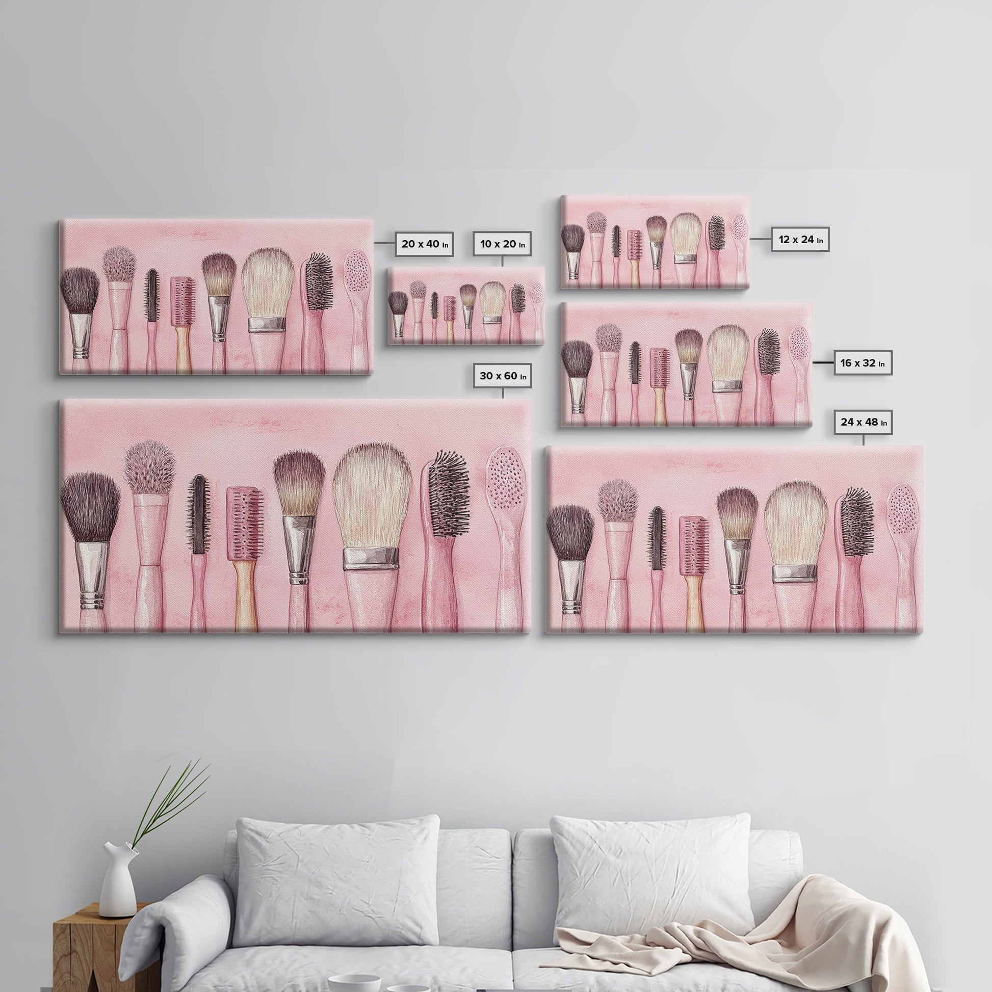 Makeup Brush Art Framed Canvas Print, Light Pink Chinoiserie Wall Art Whimsical Decor, Minimalist Art Rustic Wall Gift Idea