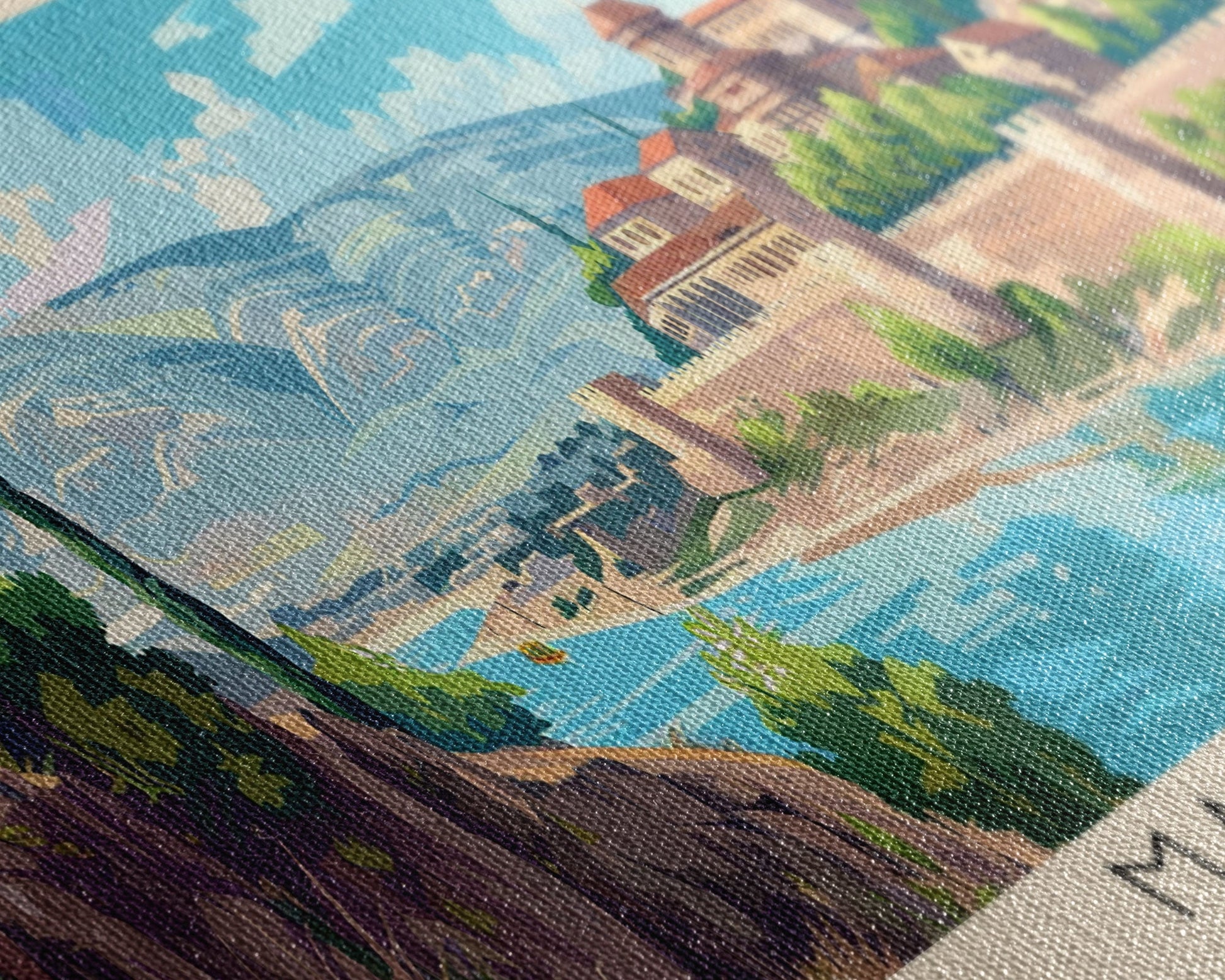 Most of our canvases are made in the USA, with the exception of canvases ordered with the light oak unstained frames, and any large canvases (24x48, 30x60, 16x48 and 20x60) ordered WITH a frame. These are temporarily made in and shipped from Europe, while we try to find a more consistent supplier in the USA.