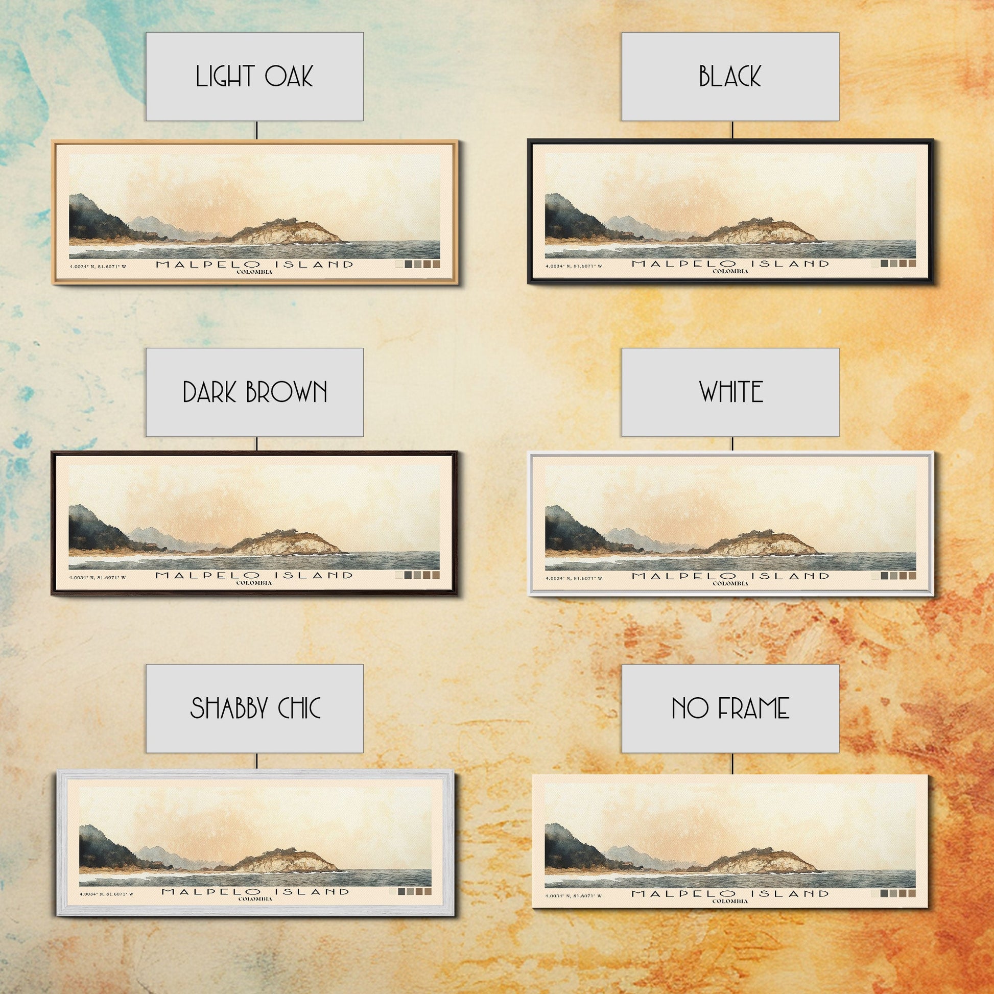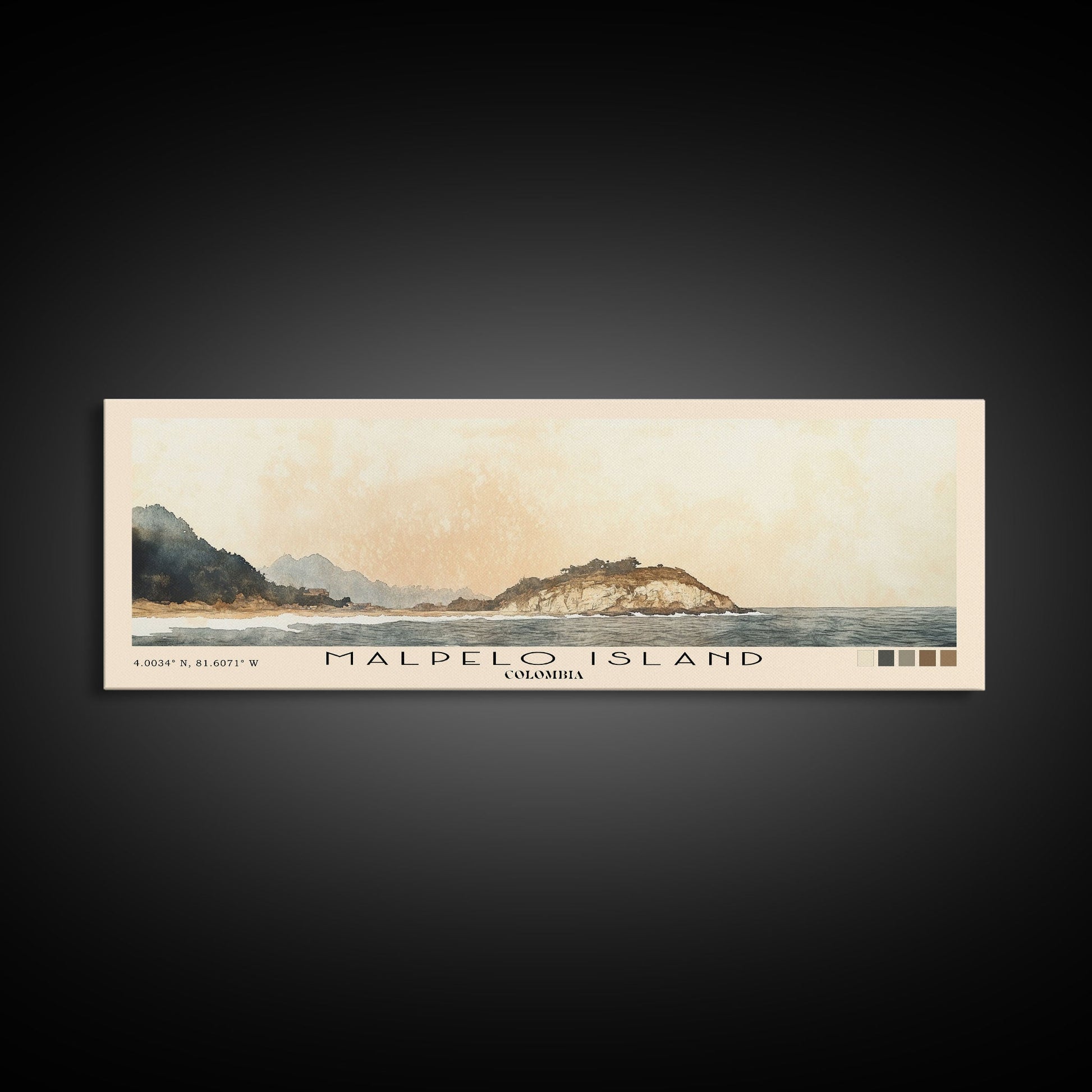 Malpelo Island, Colombia Watercolor Print, Vacation Gift, Colombia Wall Art, Beach Painting, Beach Decor, Large Wall Art, Wood Frame Art