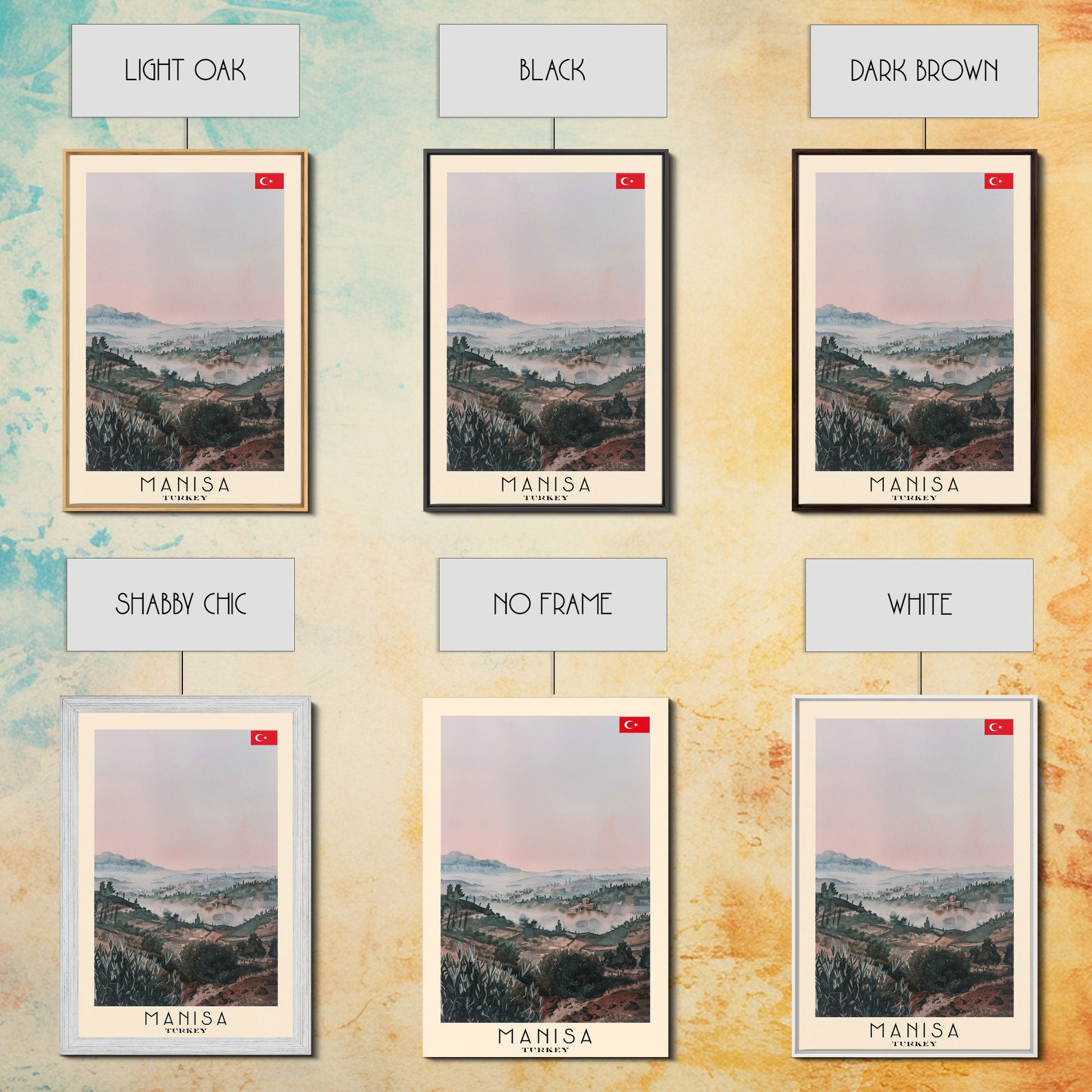 Manisa Turkey Travel Poster Framed Canvas Print, Scenic Landscape, Watercolor Art, Wall Decoration, Home Design, Travel Print, Unique Art
