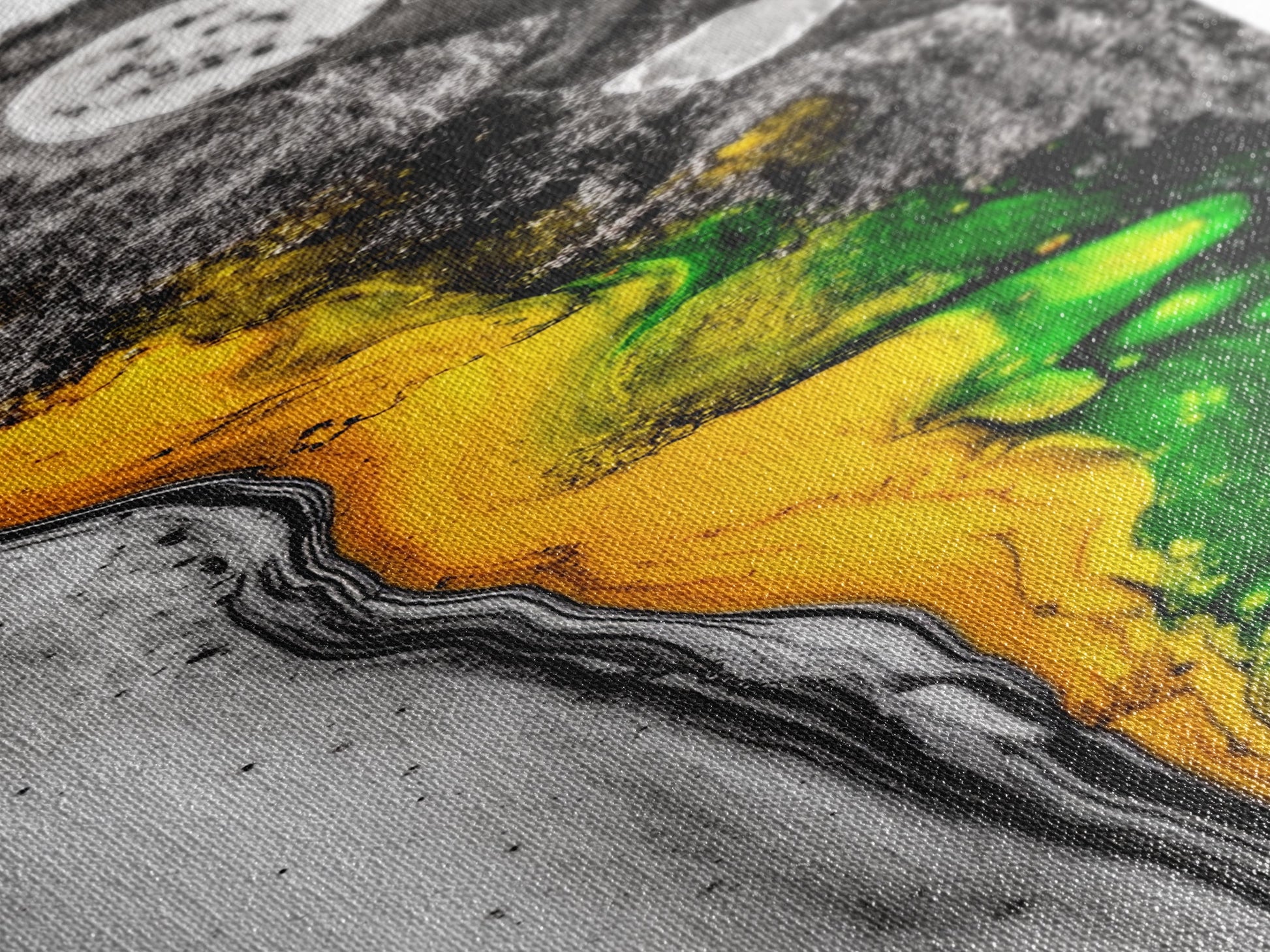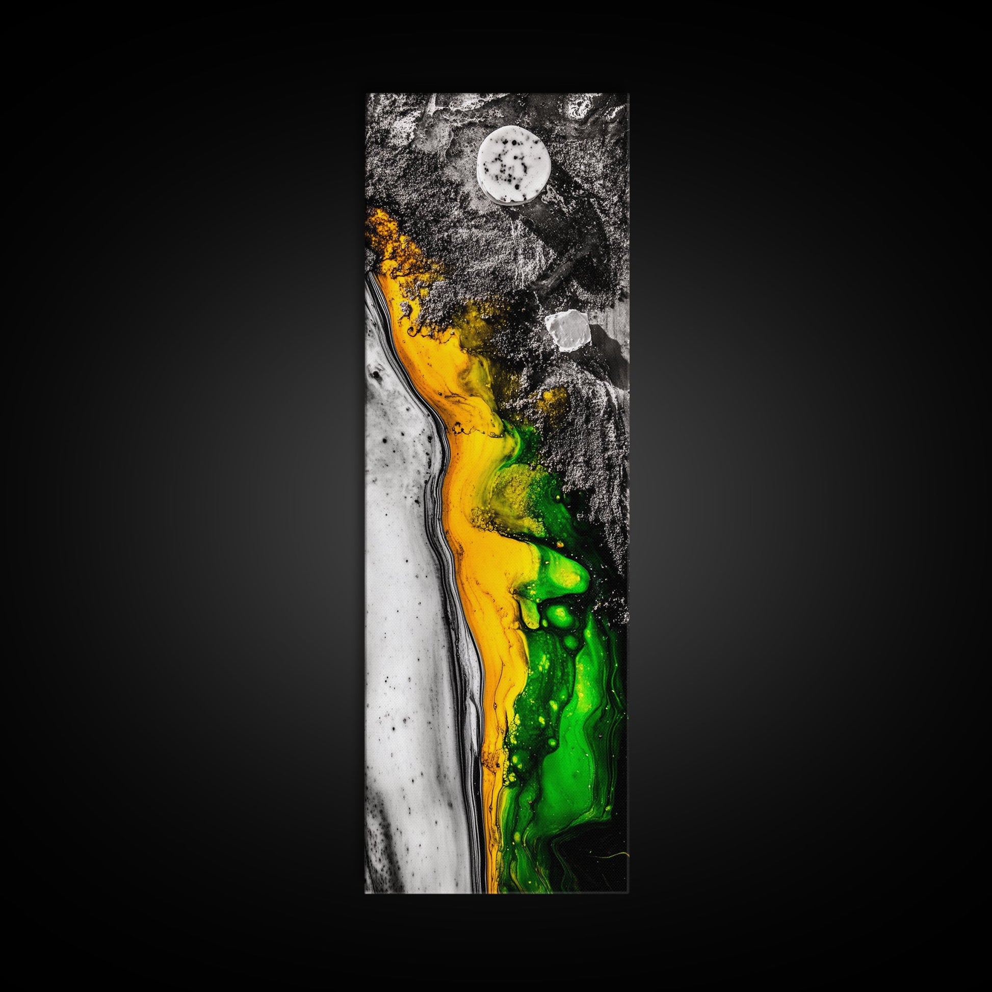 Marbled Abstract Art, Green and Yellow Fluid Painting, Modern Wall Decor, Textured Artwork, Contemporary Office Art, Framed Canvas Print