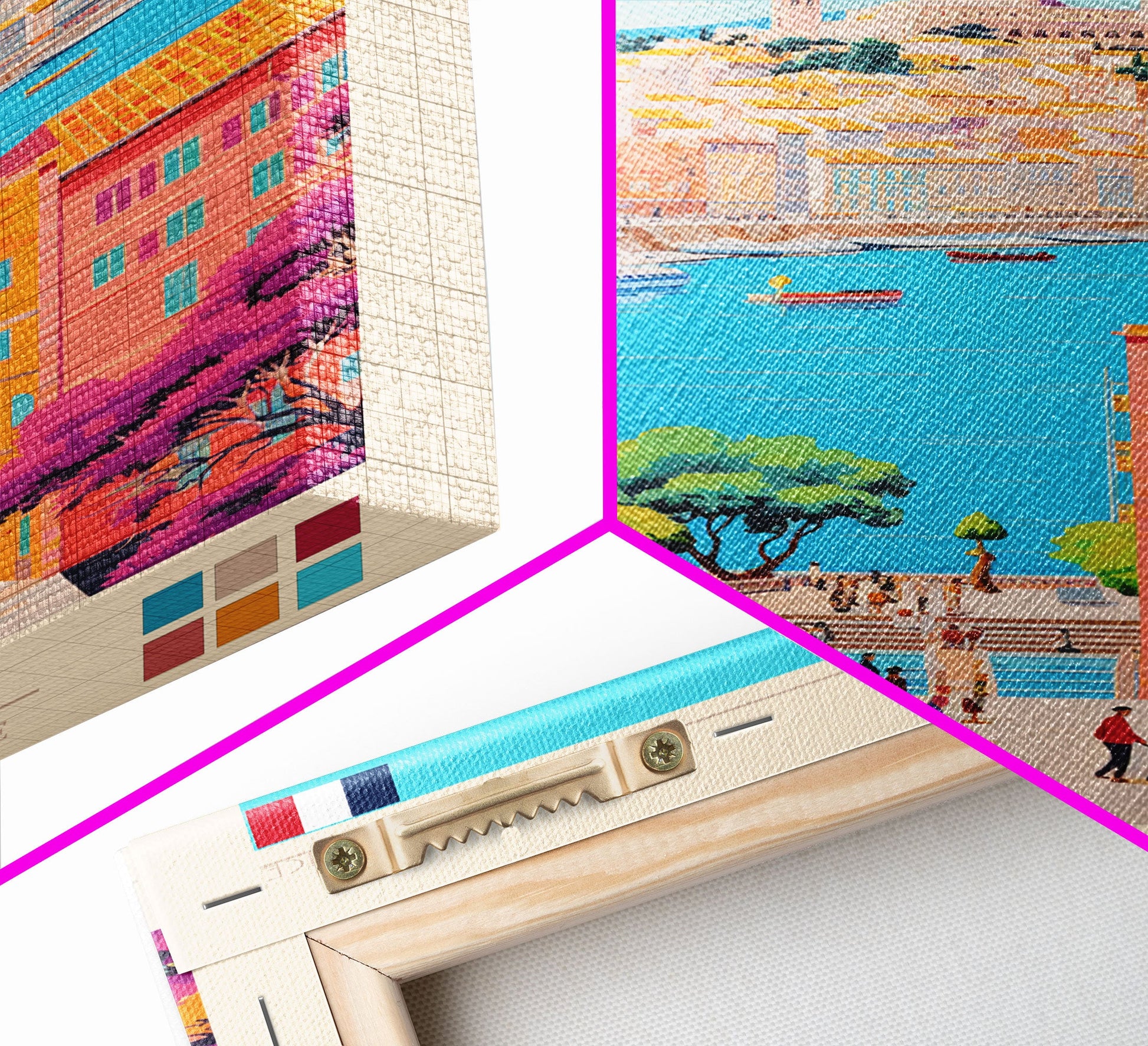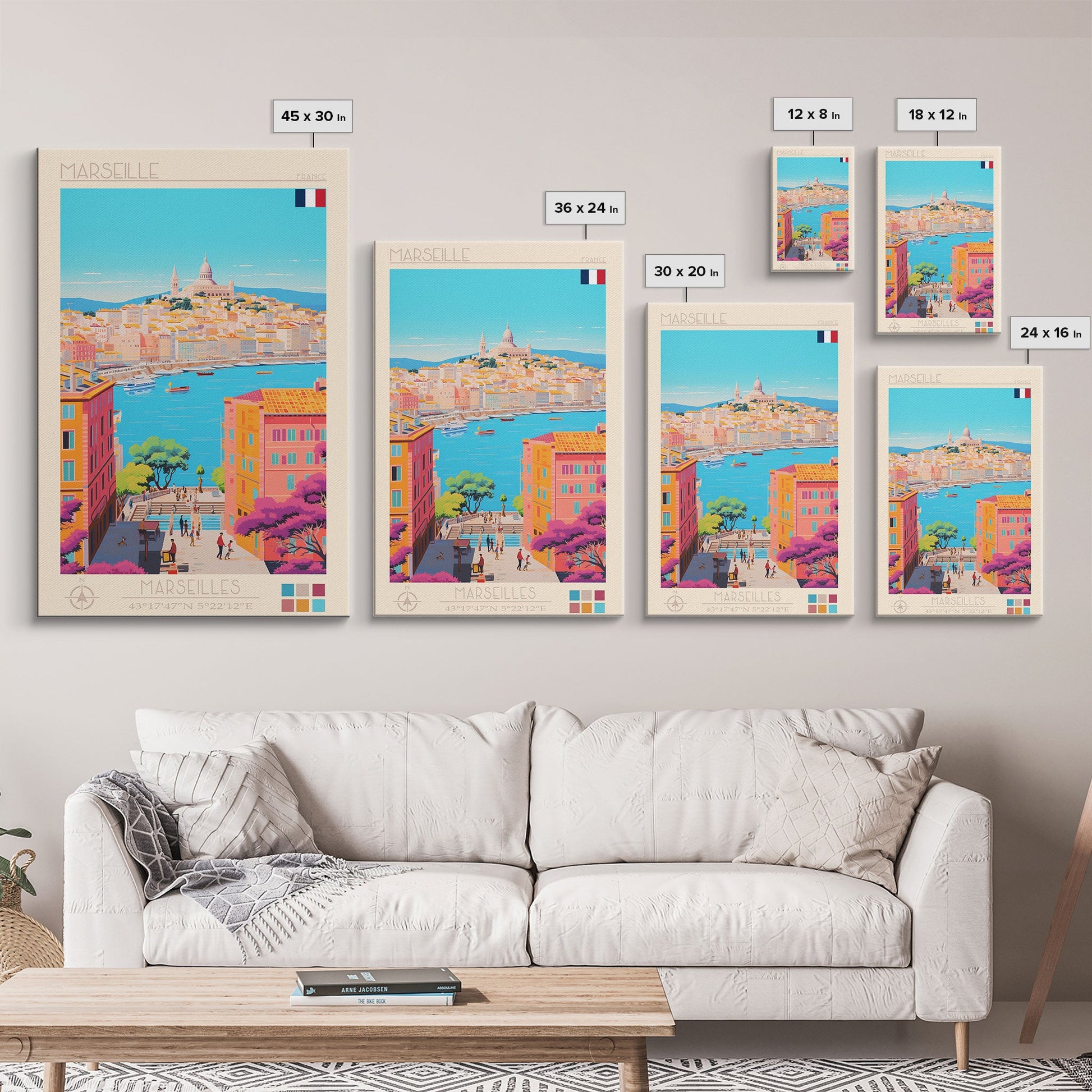 Marseille France Travel Poster Framed Canvas Print, Midcentury Modern Art, Pop Art Wall Decor, Scenic Living Room Art, Bedroom Gift