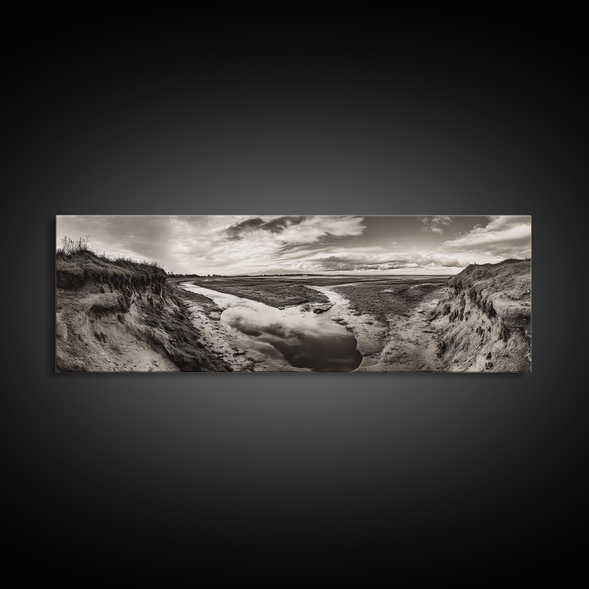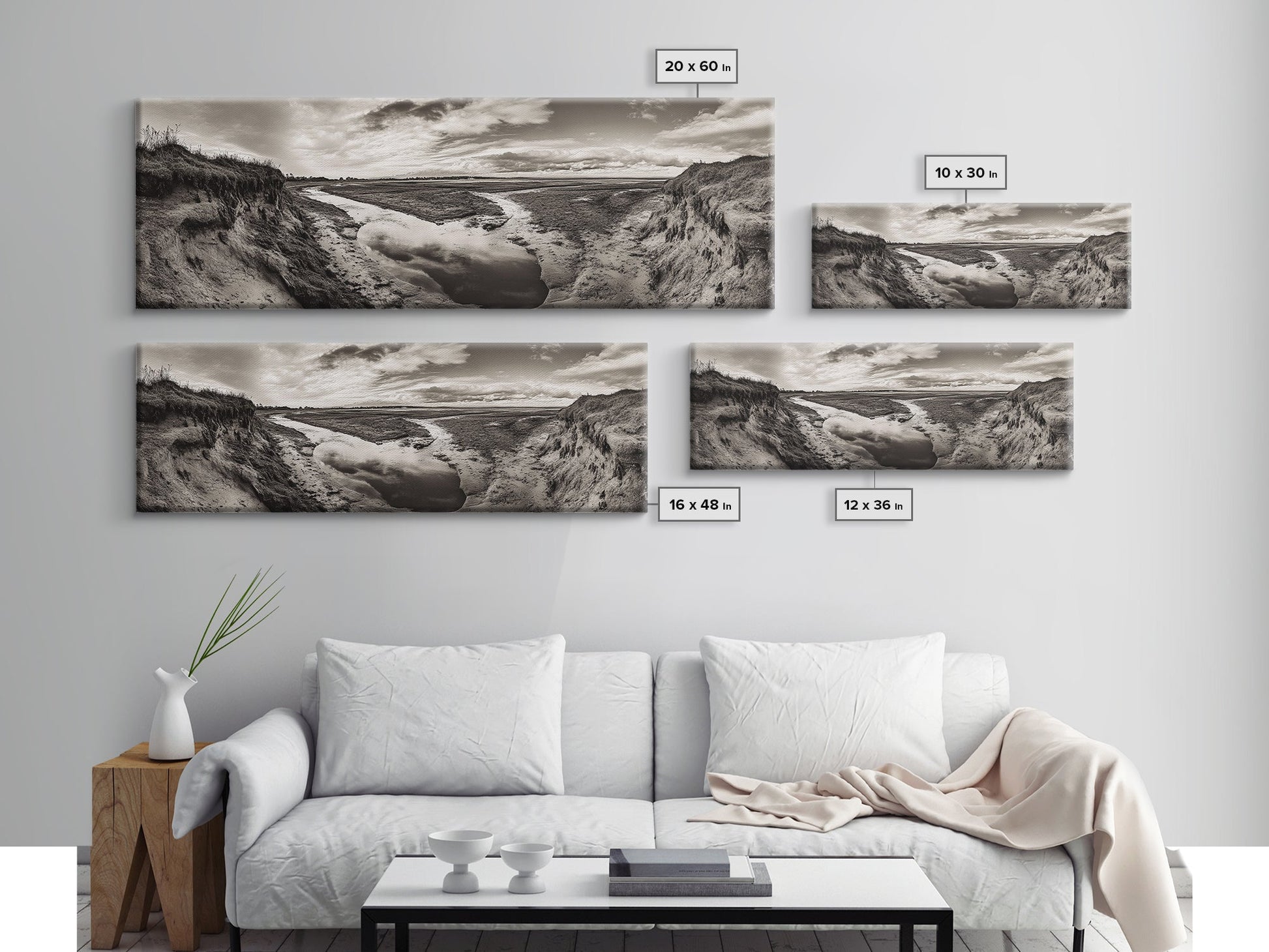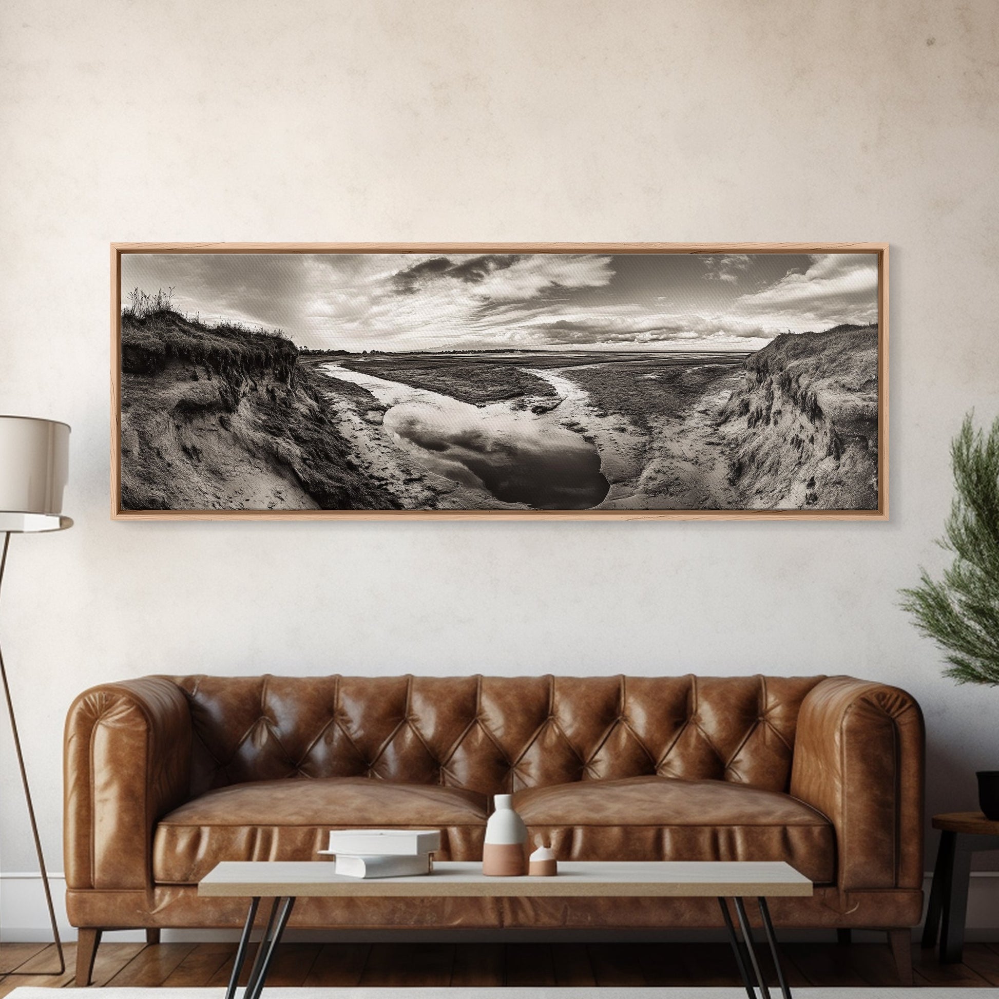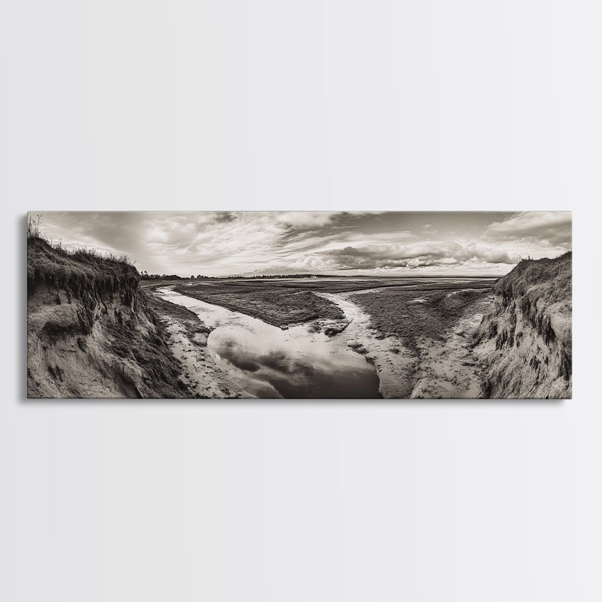 Marsh Landscape, Coastal Grasslands, Autumn Earth Tones, Framed Canvas Print, Fall Wall Art, Farmhouse Style, Rustic Entryway Decor