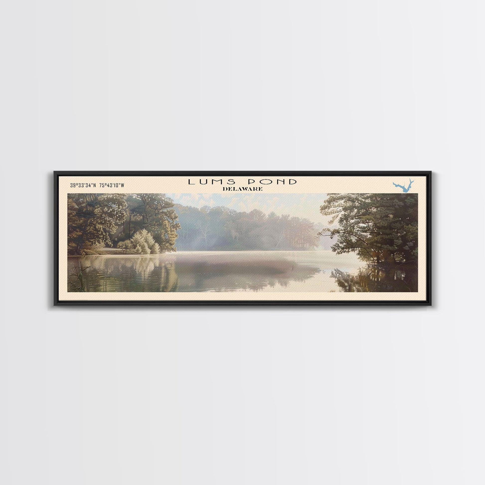 Maurepas Lake Framed Canvas Print, Lake House Decor, Panoramic Wall Art, Travel Poster, Landscape Painting, Modern Art