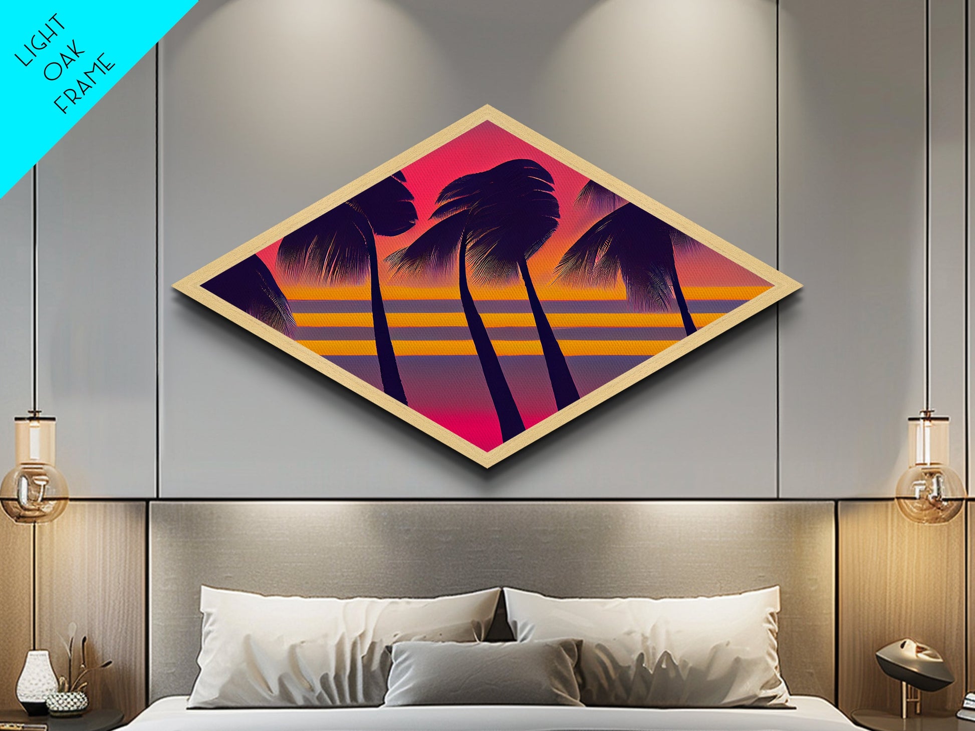 MCM Palm Trees Framed Canvas Art Print - Diamond Shaped Art - Retro Synthwave Home Decor