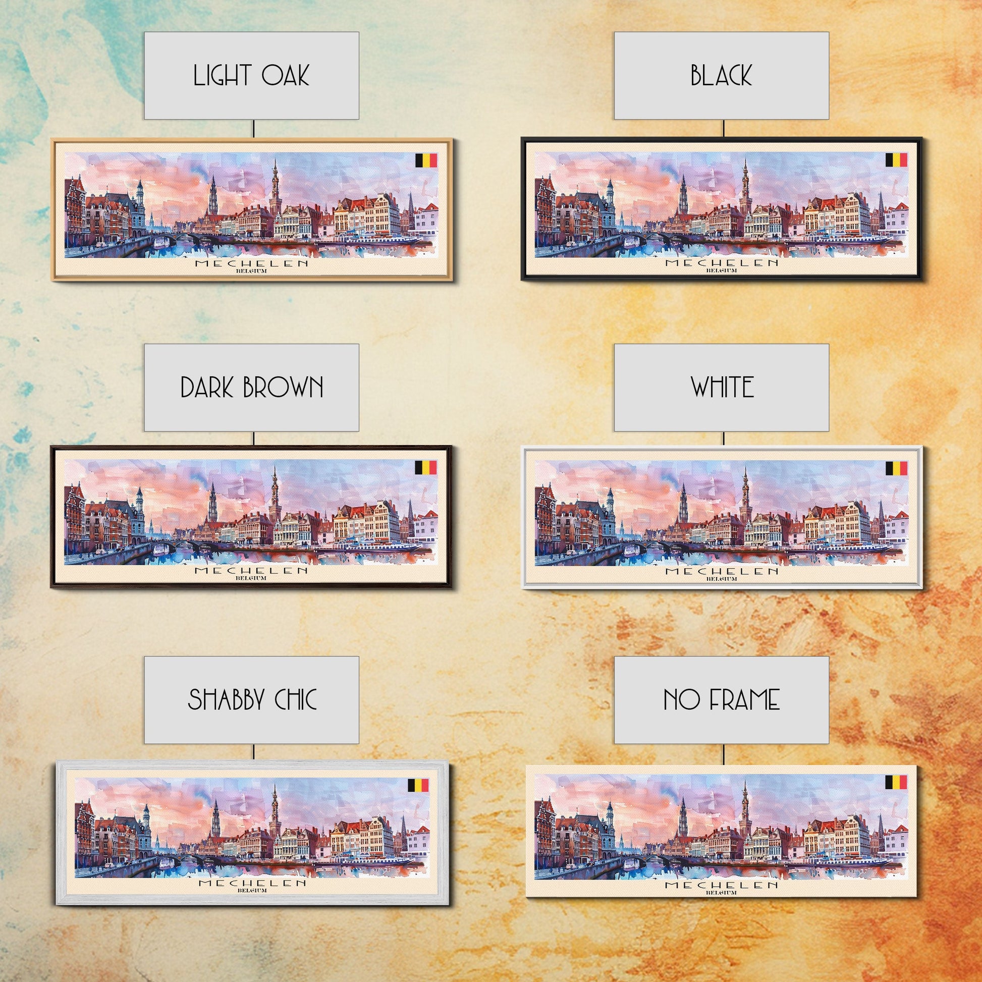 Mechelen Belgium Panoramic Travel Poster, Framed Canvas Print or Metal Wall Art, Travel Art, Home Decor, Panoramic Painting, Midcentury Art
