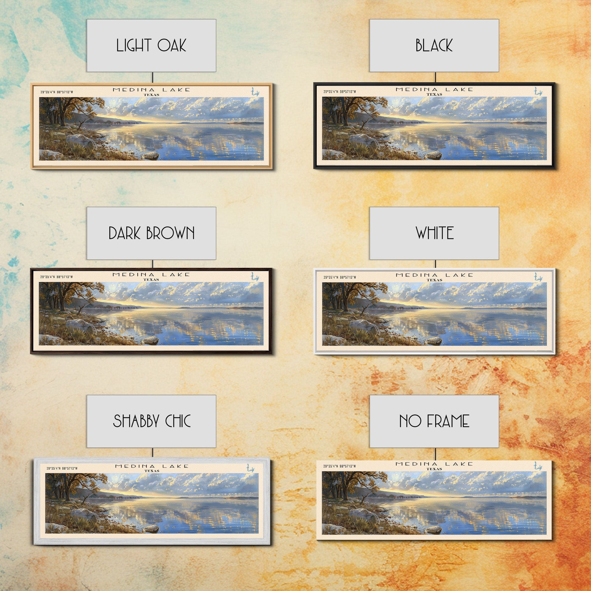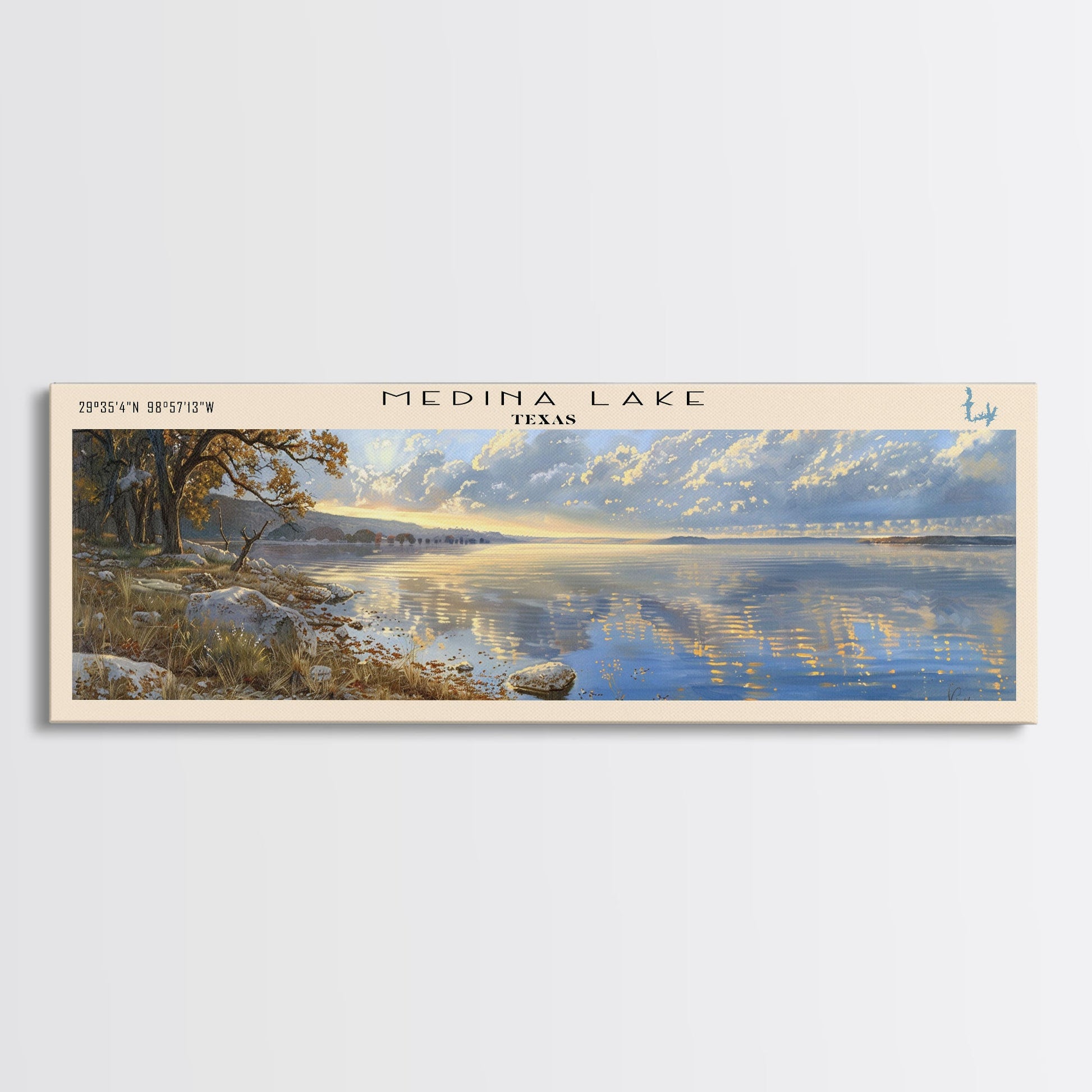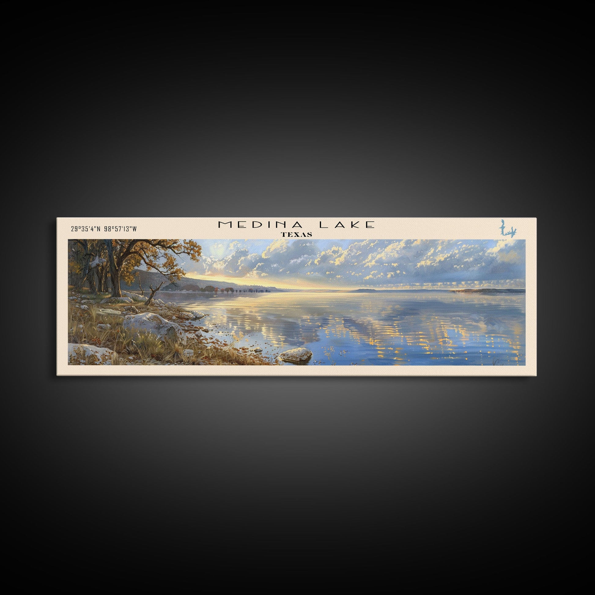Medina Lake Texas Framed Canvas Print, Lake House Decor, Panoramic Wall Art, Travel Poster, Landscape Painting, Bedroom Decor