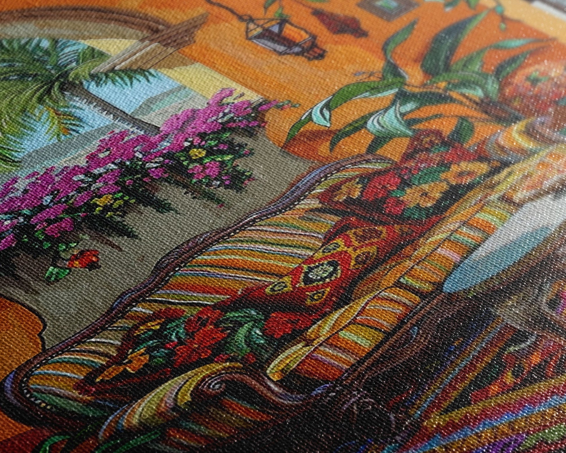 Most of our canvases are made in the USA, with the exception of canvases ordered with the light oak unstained frames, and any large canvases (24x48, 30x60, 16x48 and 20x60) ordered WITH a frame. These are temporarily made in and shipped from Europe, while we try to find a more consistent supplier in the USA.