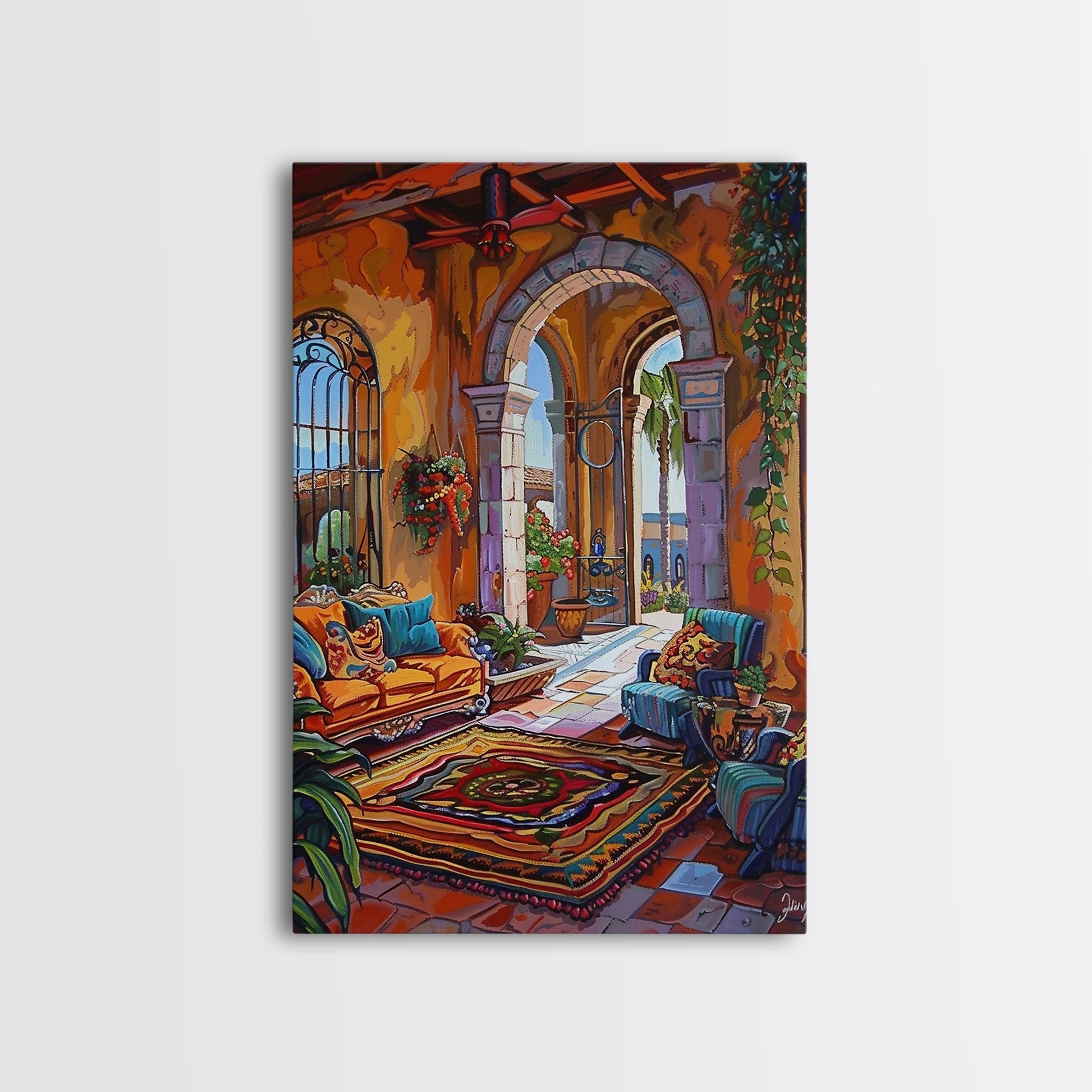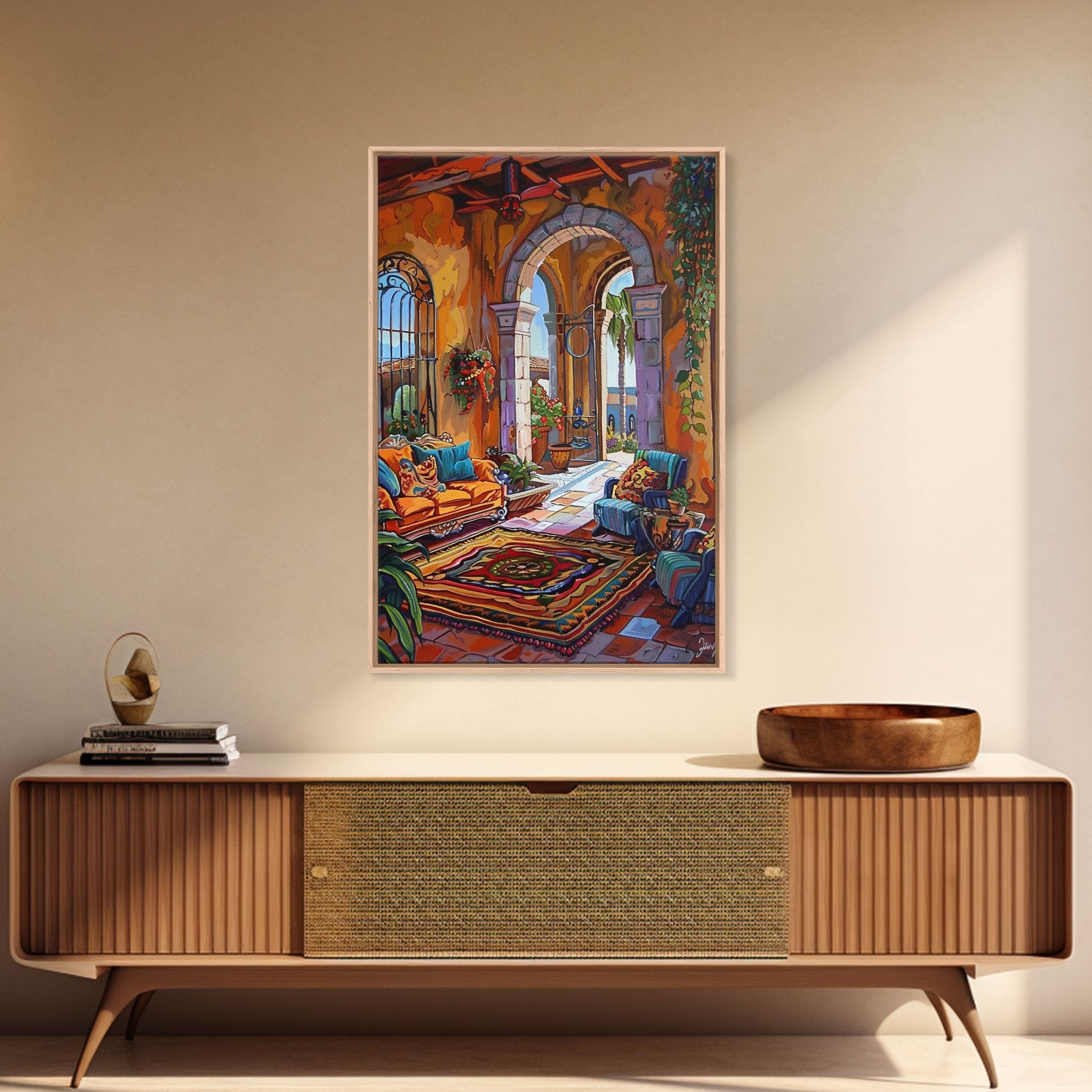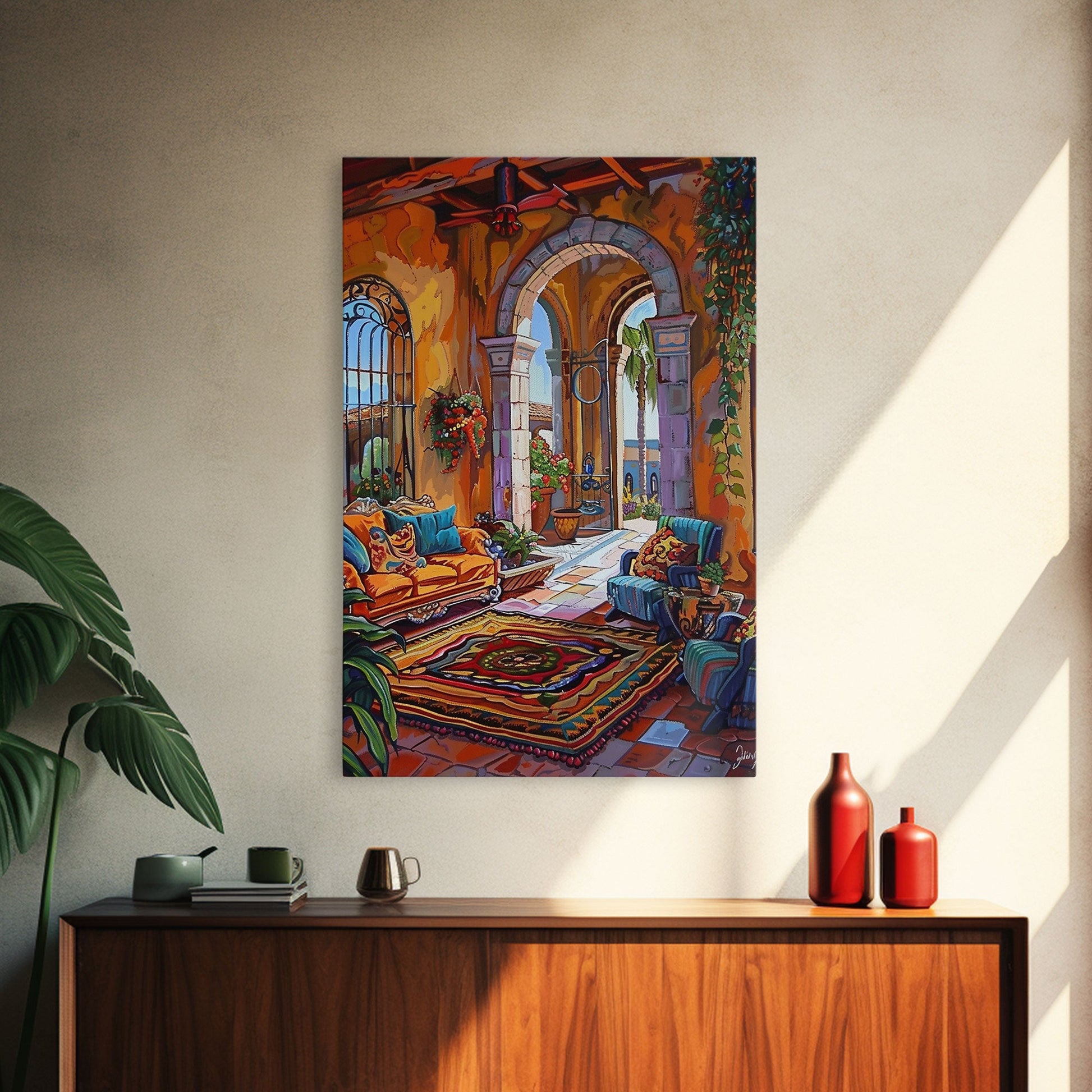 Mediterranean Lounge With Mountain View Framed Canvas Print Spanish Style Patio Wall Art Home Decor Best Gift Seasonal Above Sofa Art
