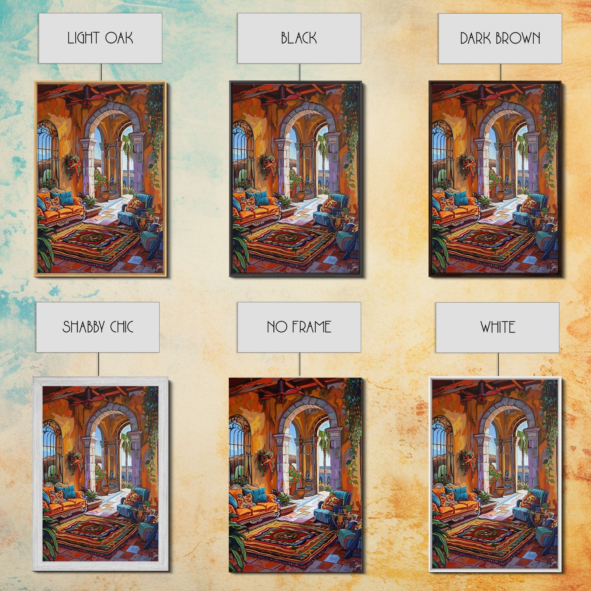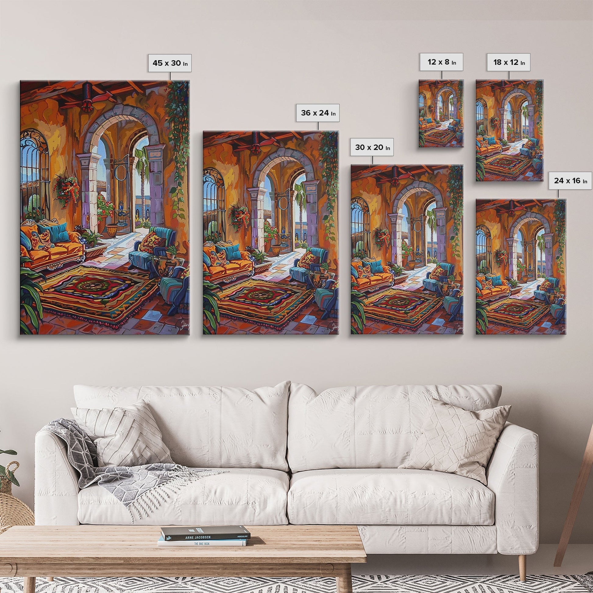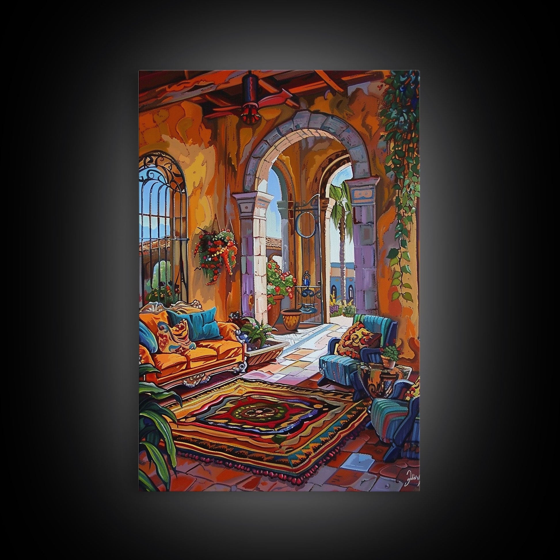 Mediterranean Lounge With Mountain View Framed Canvas Print Spanish Style Patio Wall Art Home Decor Best Gift Seasonal Above Sofa Art