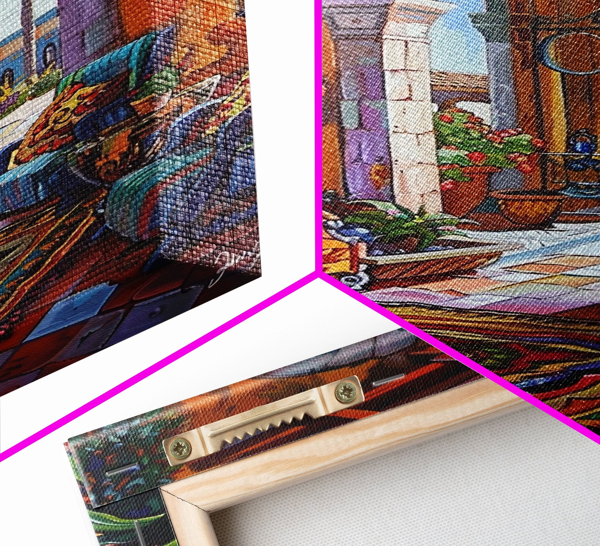 *SHIPPING: Every canvas is carefully wrapped in bubble wrap and foam corner protectors, and shipped fully assembled and ready to hang with sawtooth hangers in a flat box. All you need is a hammer!