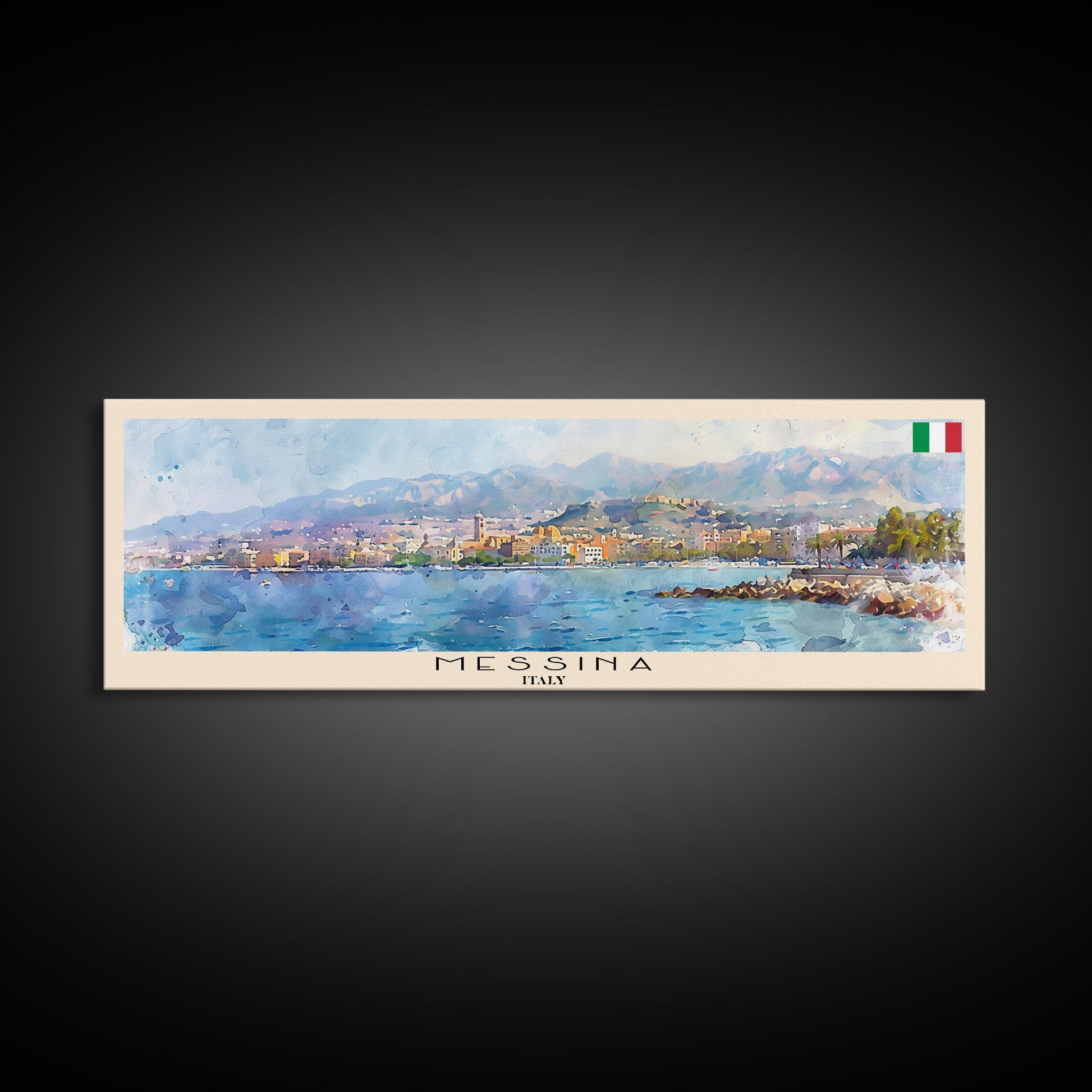 Messina Italy Travel Print Wall Art, Panoramic City Art, Travel Art, Wall Decor, Vacation Gift, Framed Canvas Print Or Metal Art