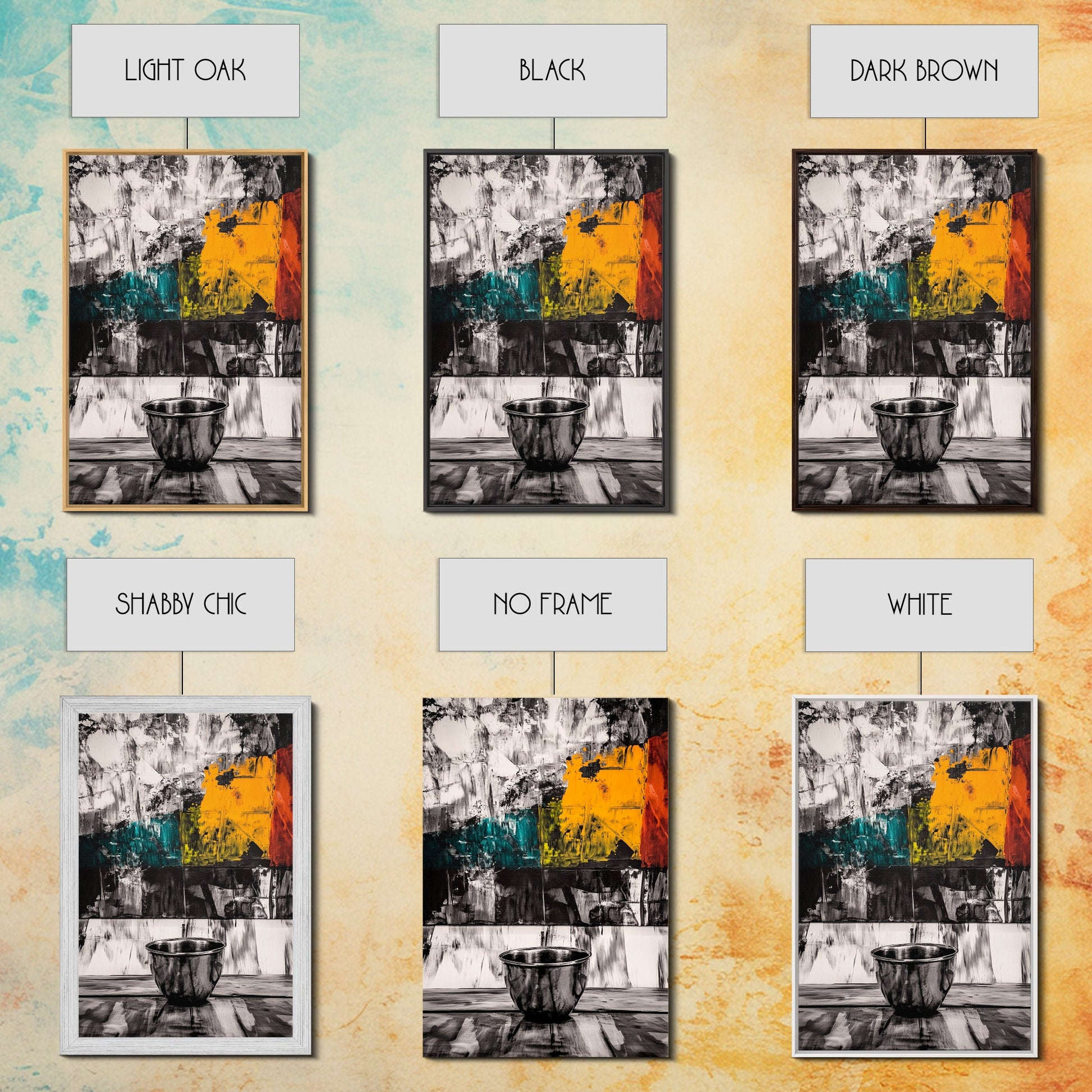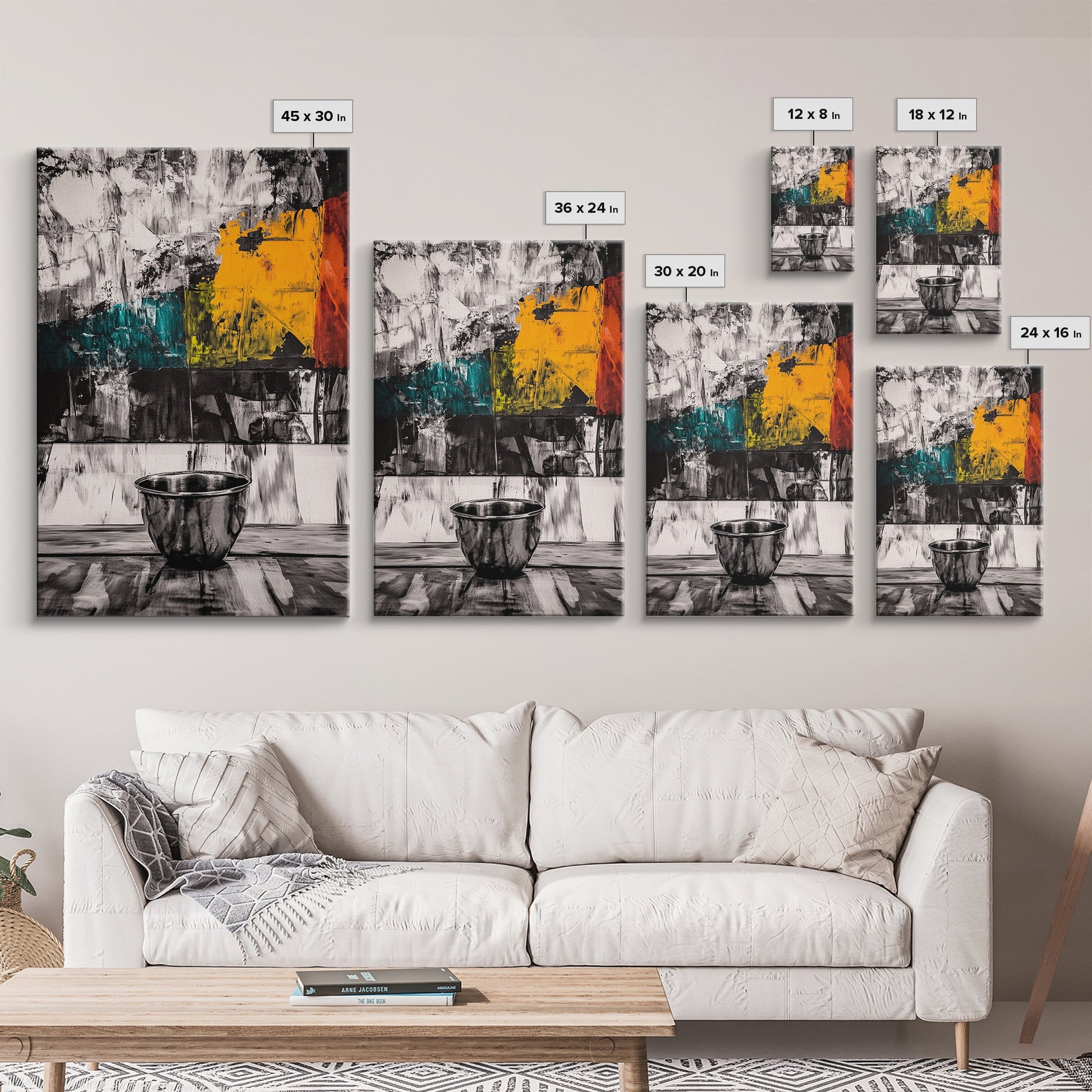 Metal Bowl, Industrial Kitchen Art, Abstract Still Life, Black and White Wall Decor, Modern Framed Canvas Print, Minimalist Aesthetic