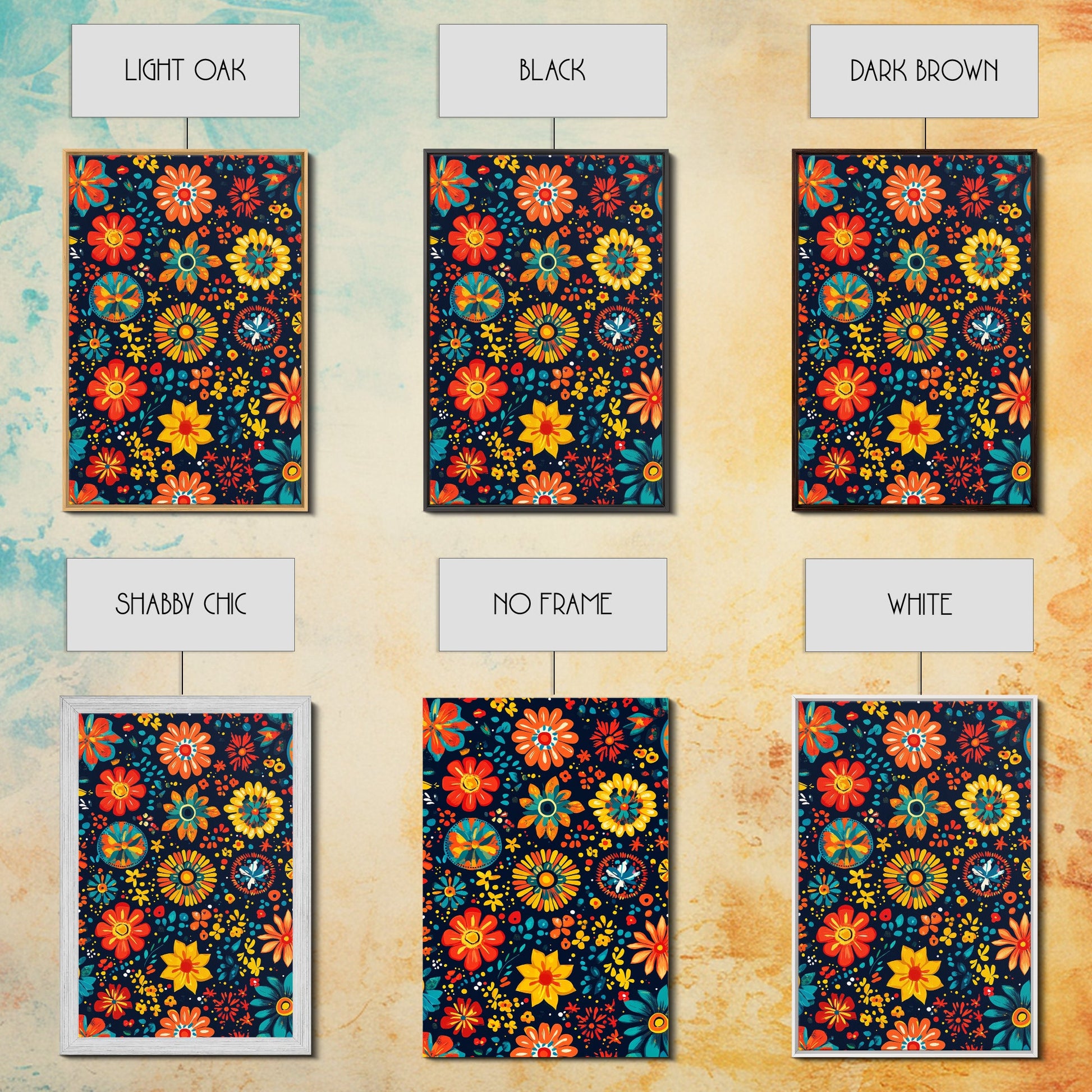 Mexican Tile Pattern Wall Art, Framed Canvas Print, Chicano Wall Art, Mexicano Wall Art, Textile Inspired Wall Decor