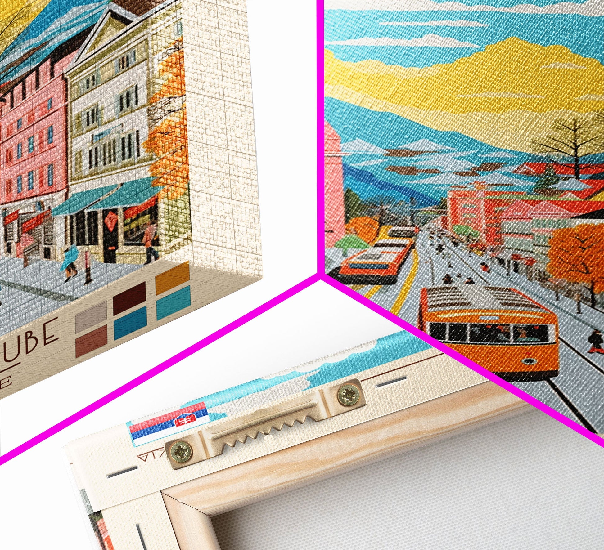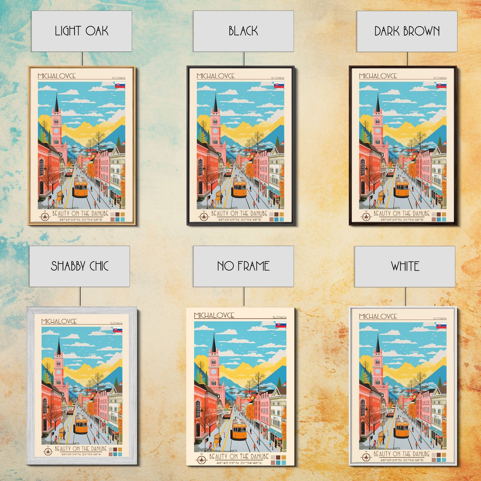 Michalovce Slovakia Travel Poster Framed Canvas Print, Midcentury Modern Art, Pop Art Wall Decor, Scenic Wall Art, Living Room Decoration, Office Art