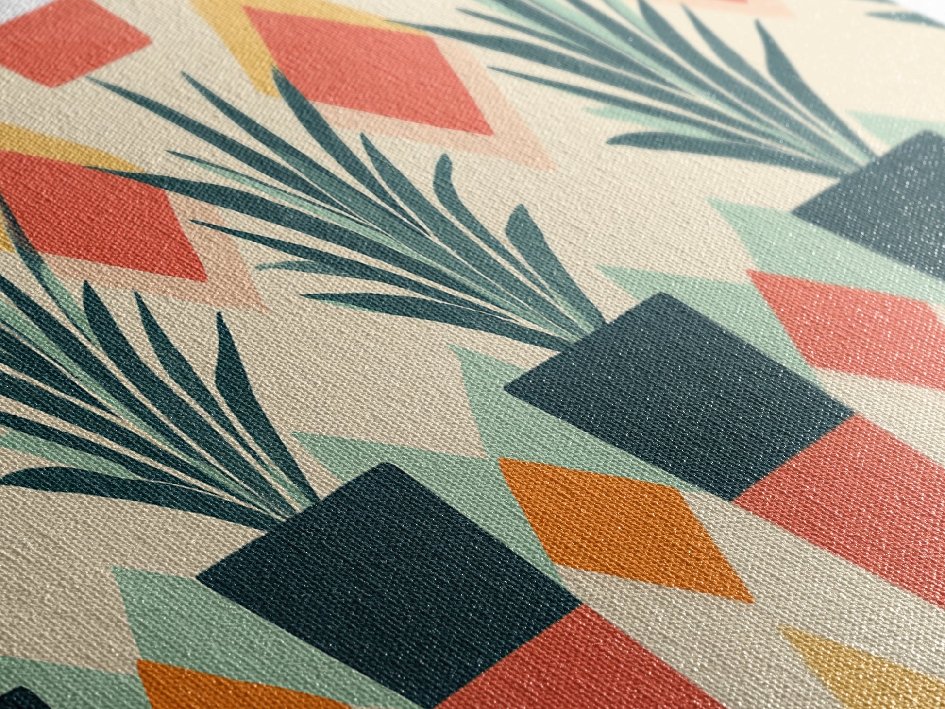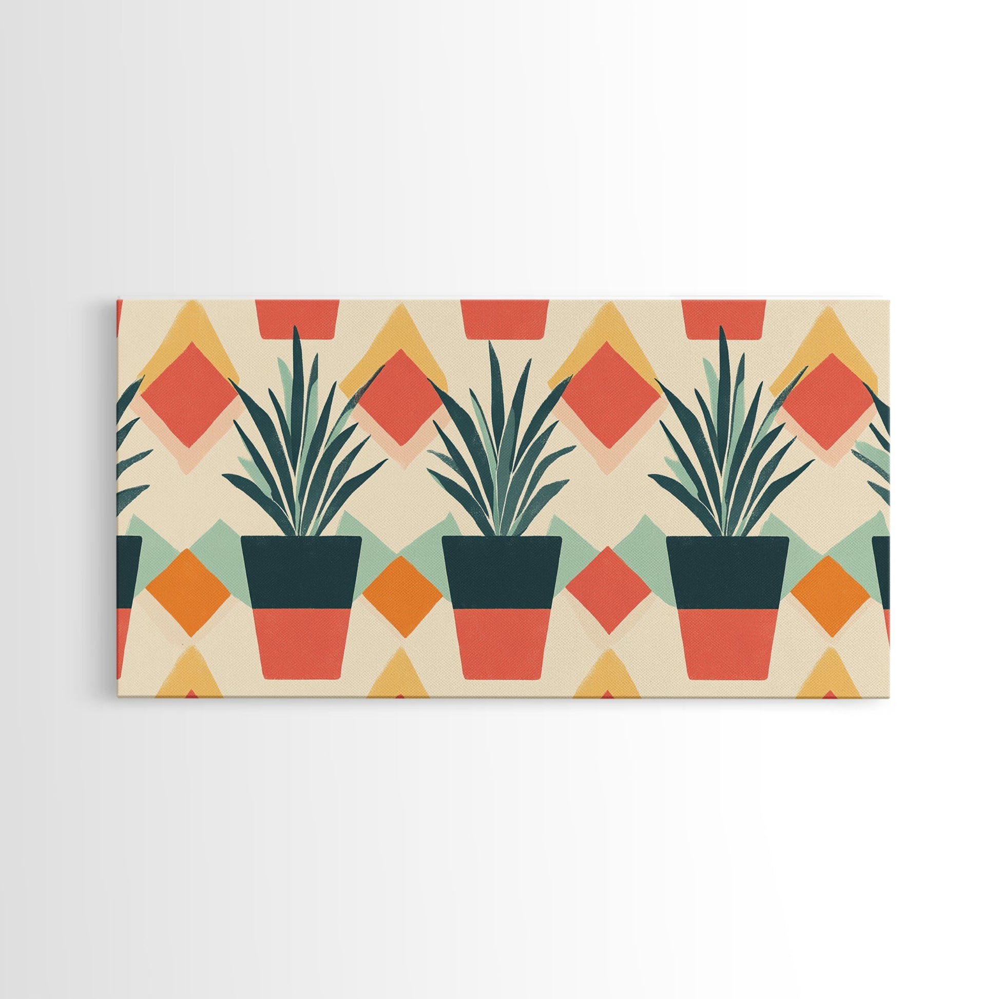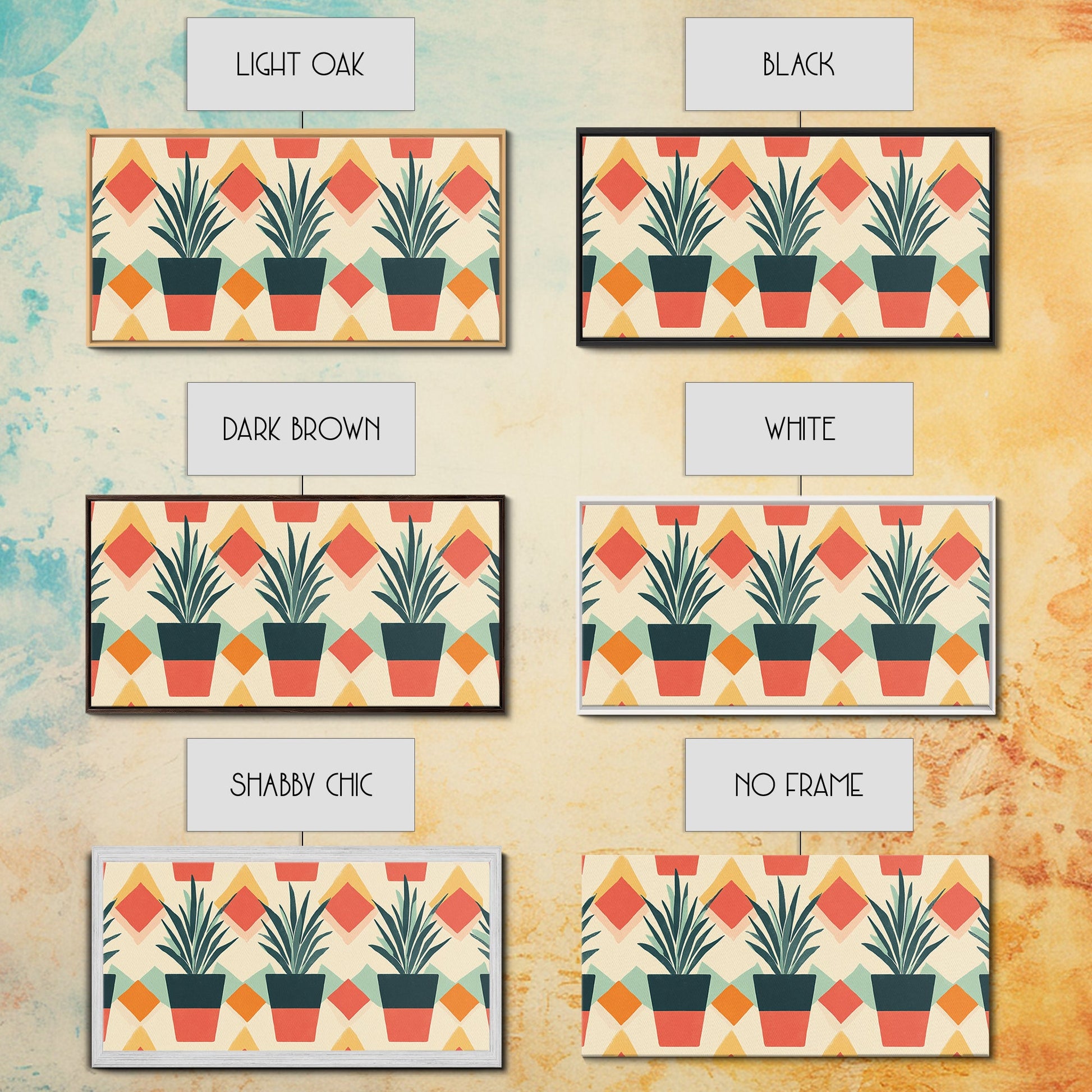 Mid Century Modern Botanical Print, Wood Framed Canvas Art, Botanical Wall Art, Boho Style Southwestern Pueblo Art
