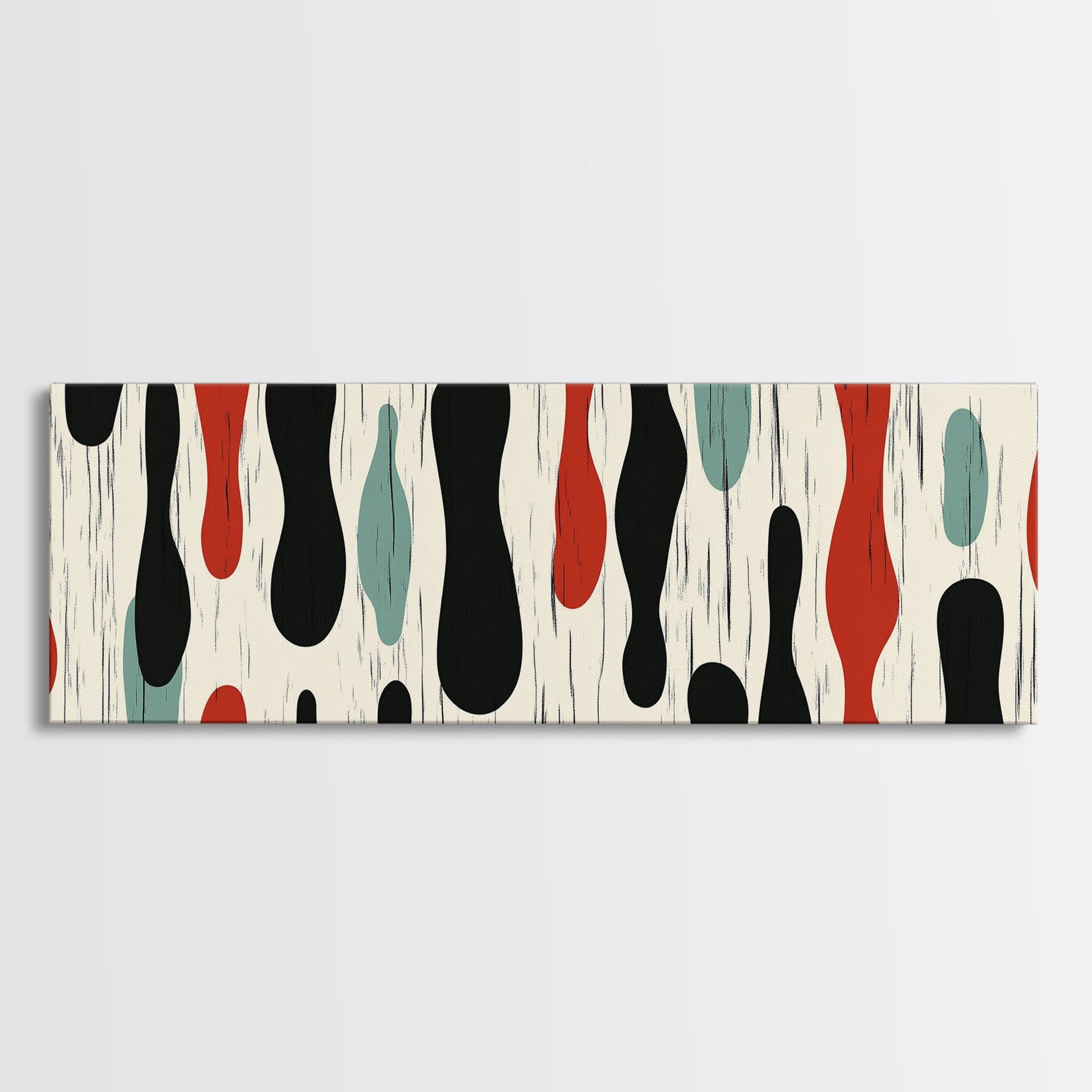 Mid Century Modern Wall Art Framed Canvas - Rain Drops - Panoramic Modern Wall Art Print - Above Bed or Above Sofa Wall Art, Modern Art