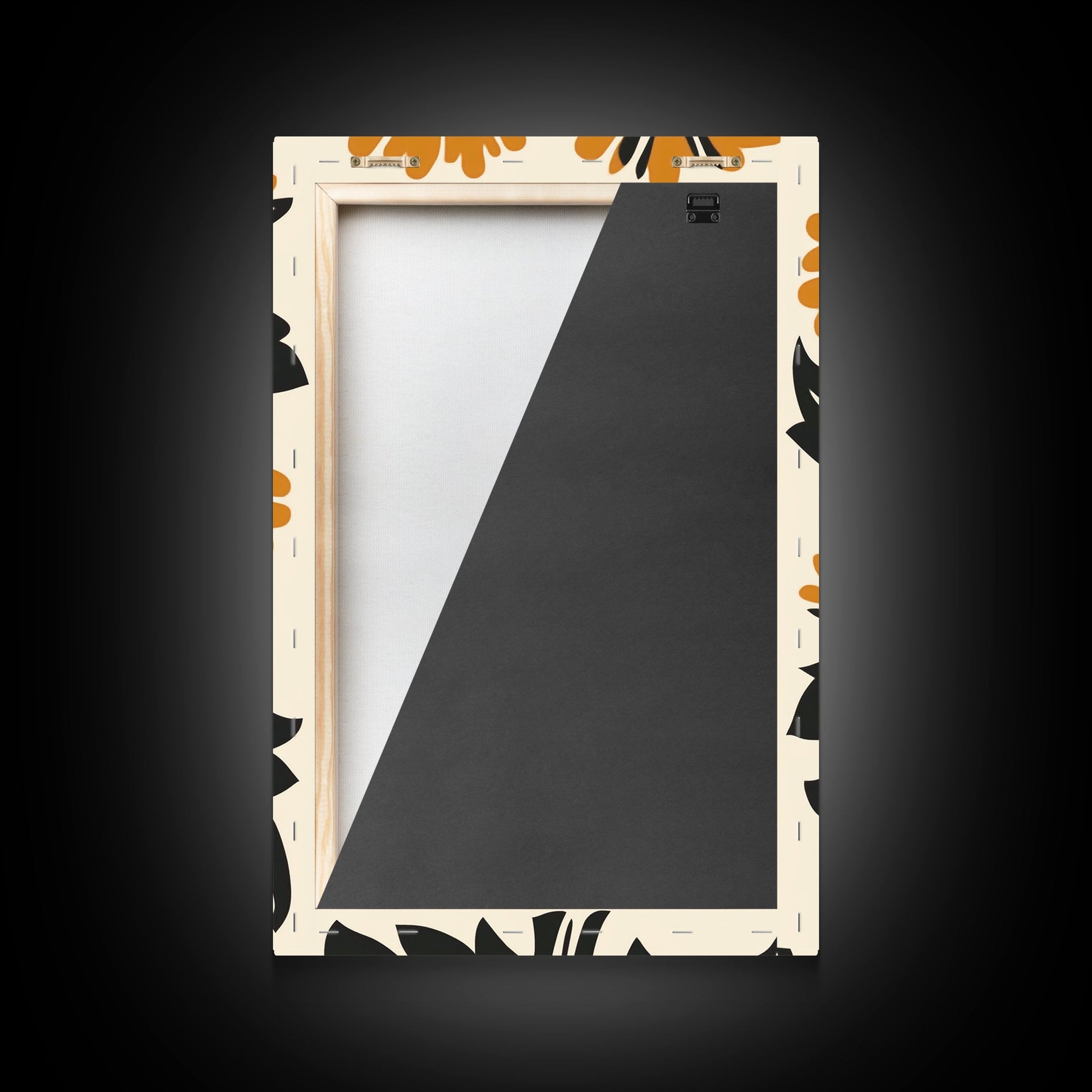 Midcentury Modern Boho Flowers Bouqet Wall Art Canvas Print, MCM Wall Art, Retro Style Abstract Art, Orange Flowers on White Background