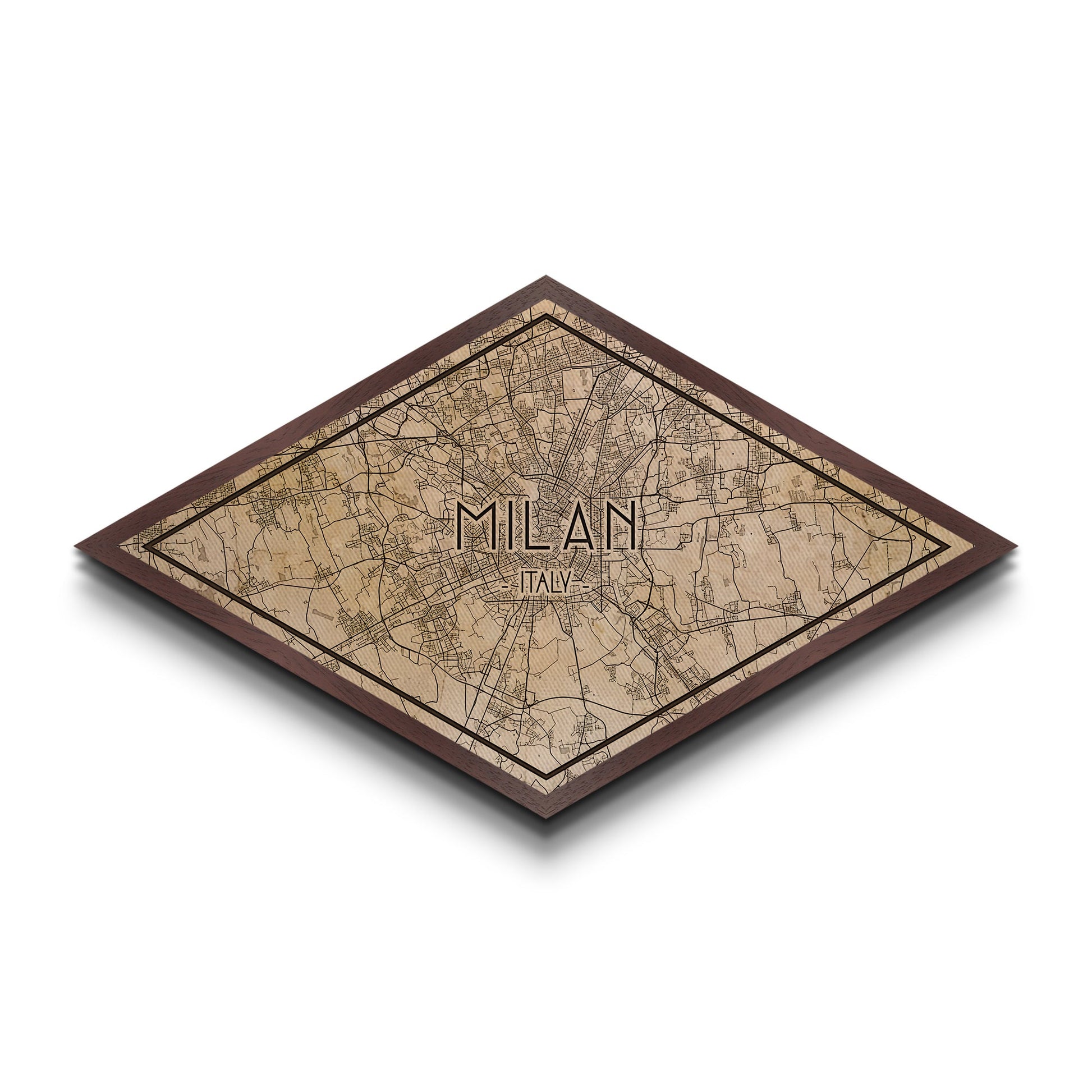 Milan - Italy Diamond Shaped City Map, Custom Diamond Shaped Wall Art, City Map Canvas