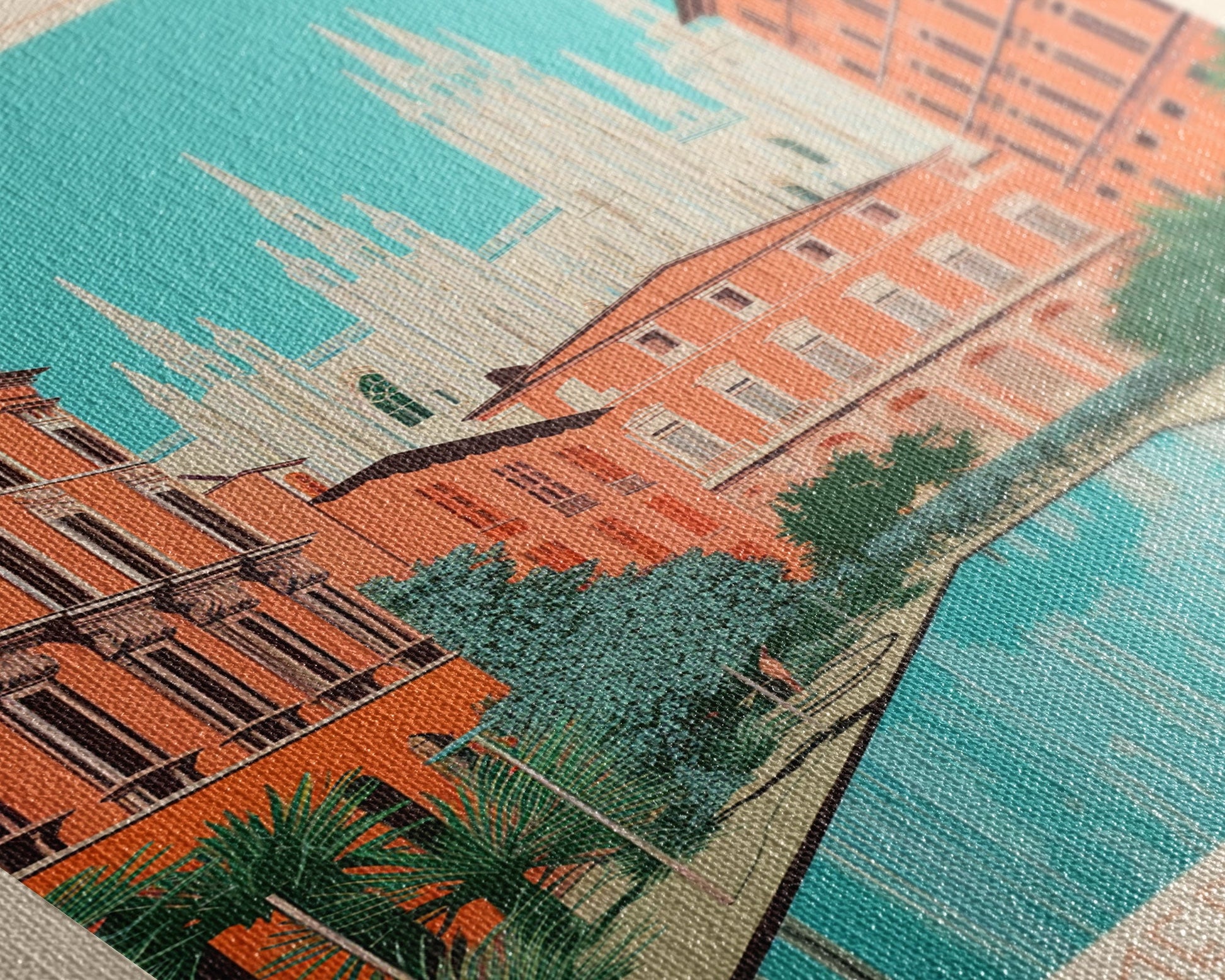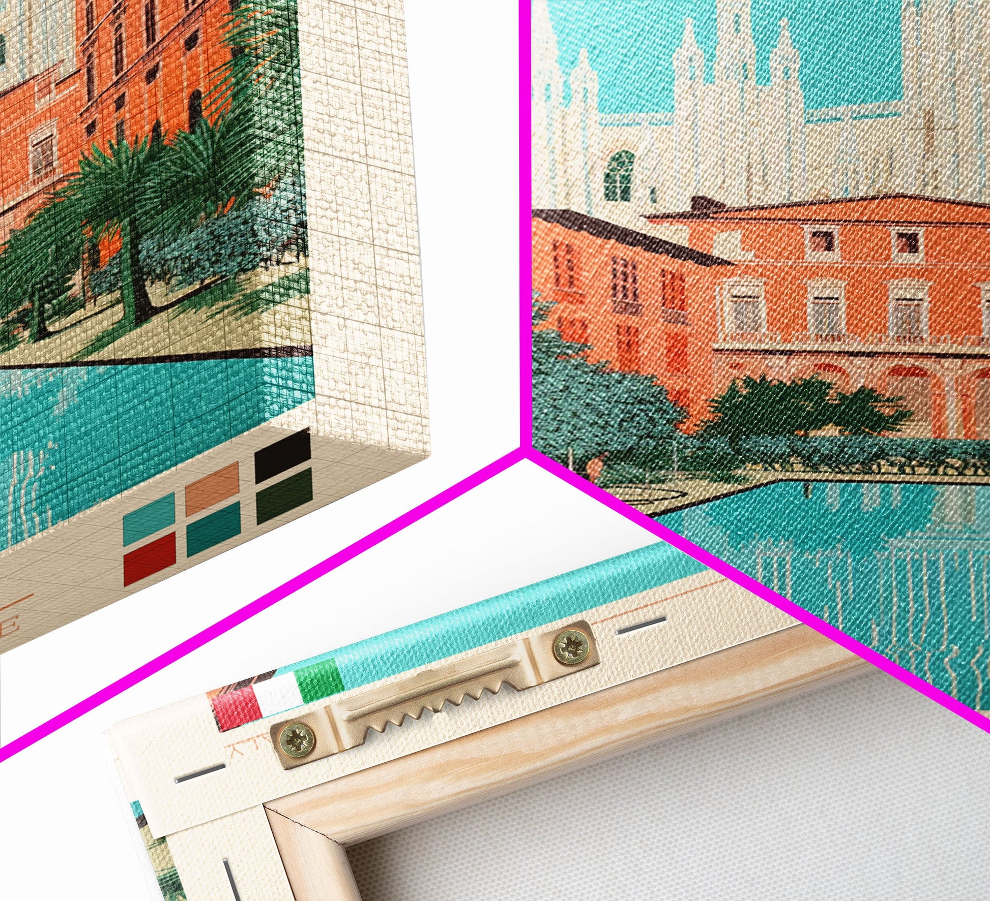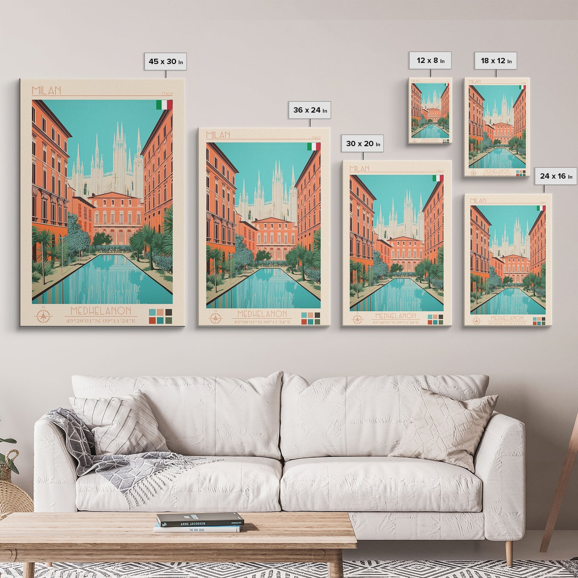 Milan Italy Travel Poster Framed Canvas Print, Midcentury Modern Art, Pop Art Wall Decor, Scenic Bedroom Art, Office Decoration