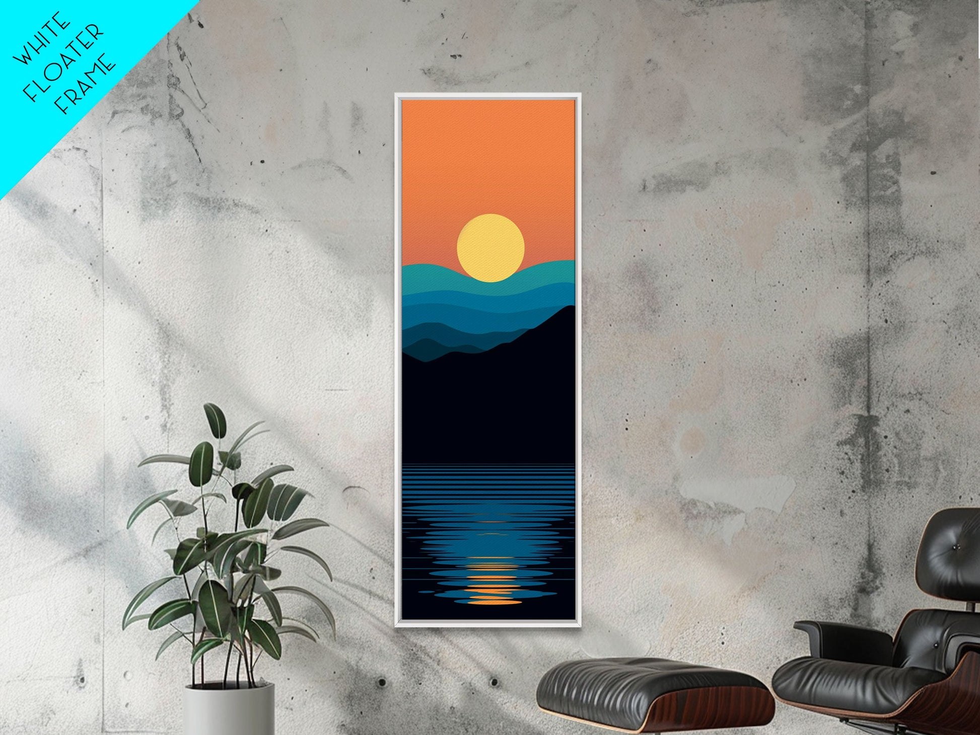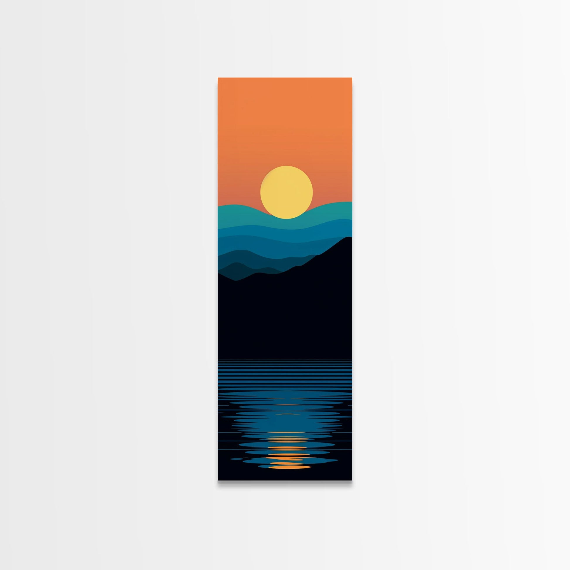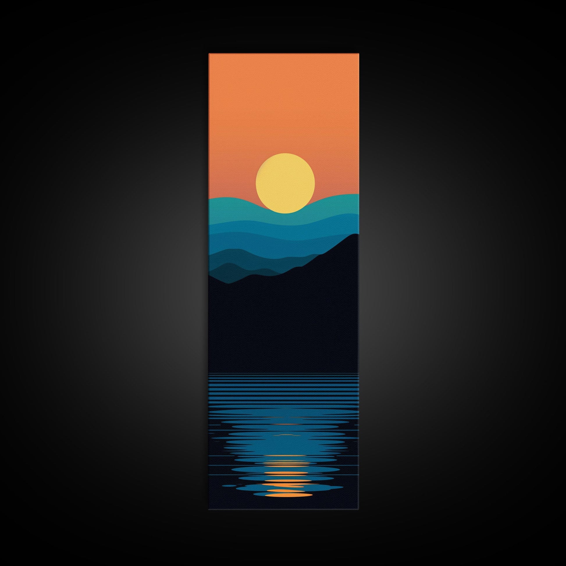 Minimalist Sunset Over Mountains Midcentury Modern Art - Framed Canvas Print, Boho Art, Skinny Art, Living Room Art, Bedroom Decor, Landscape