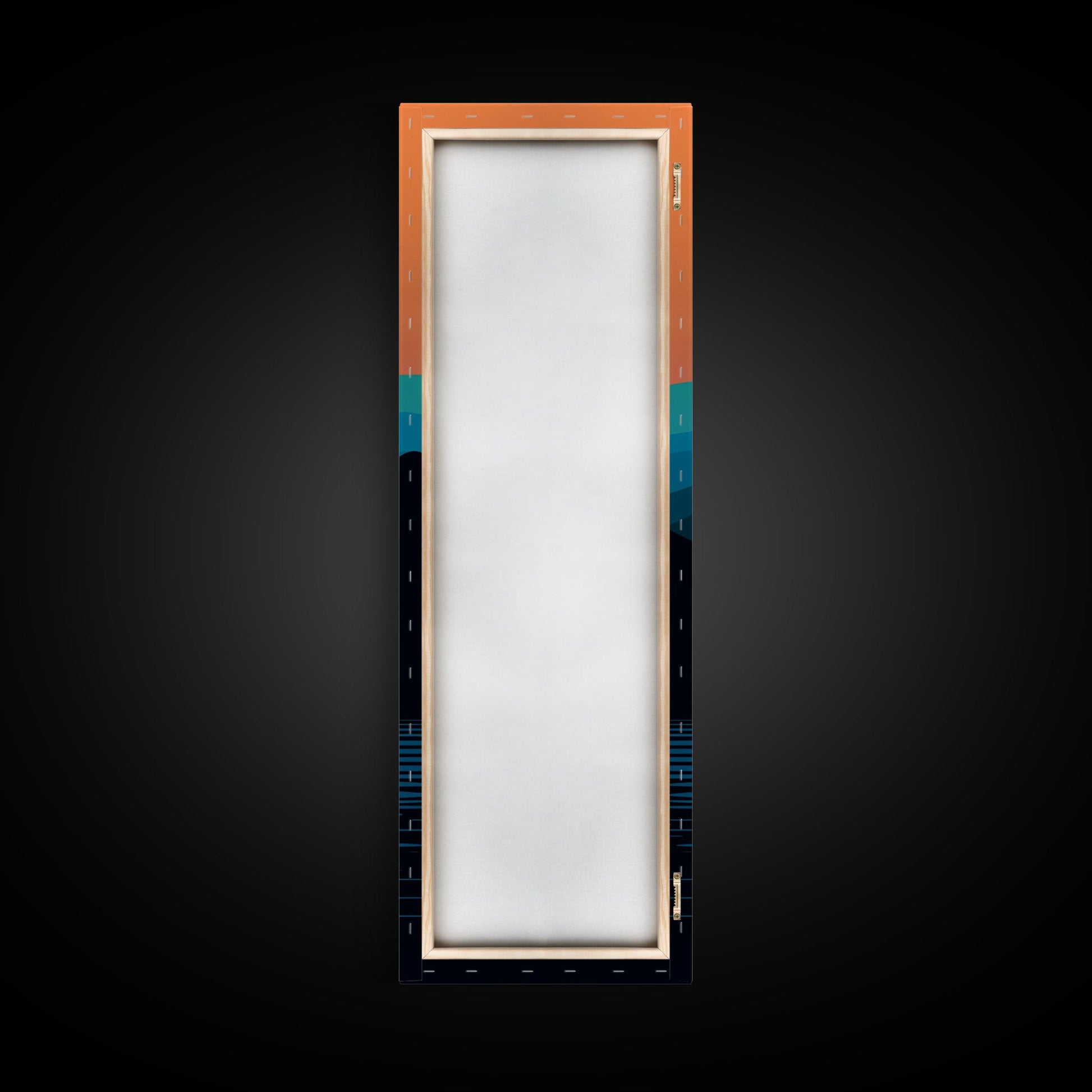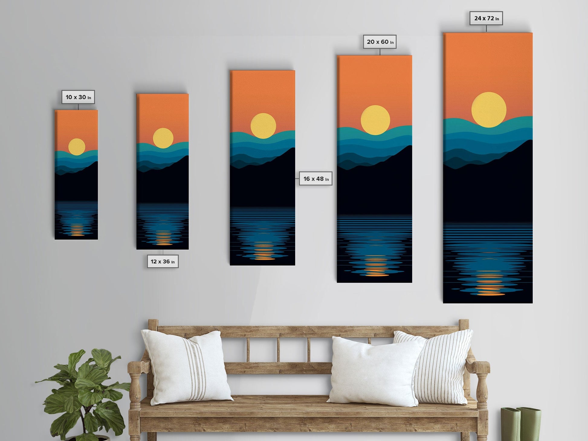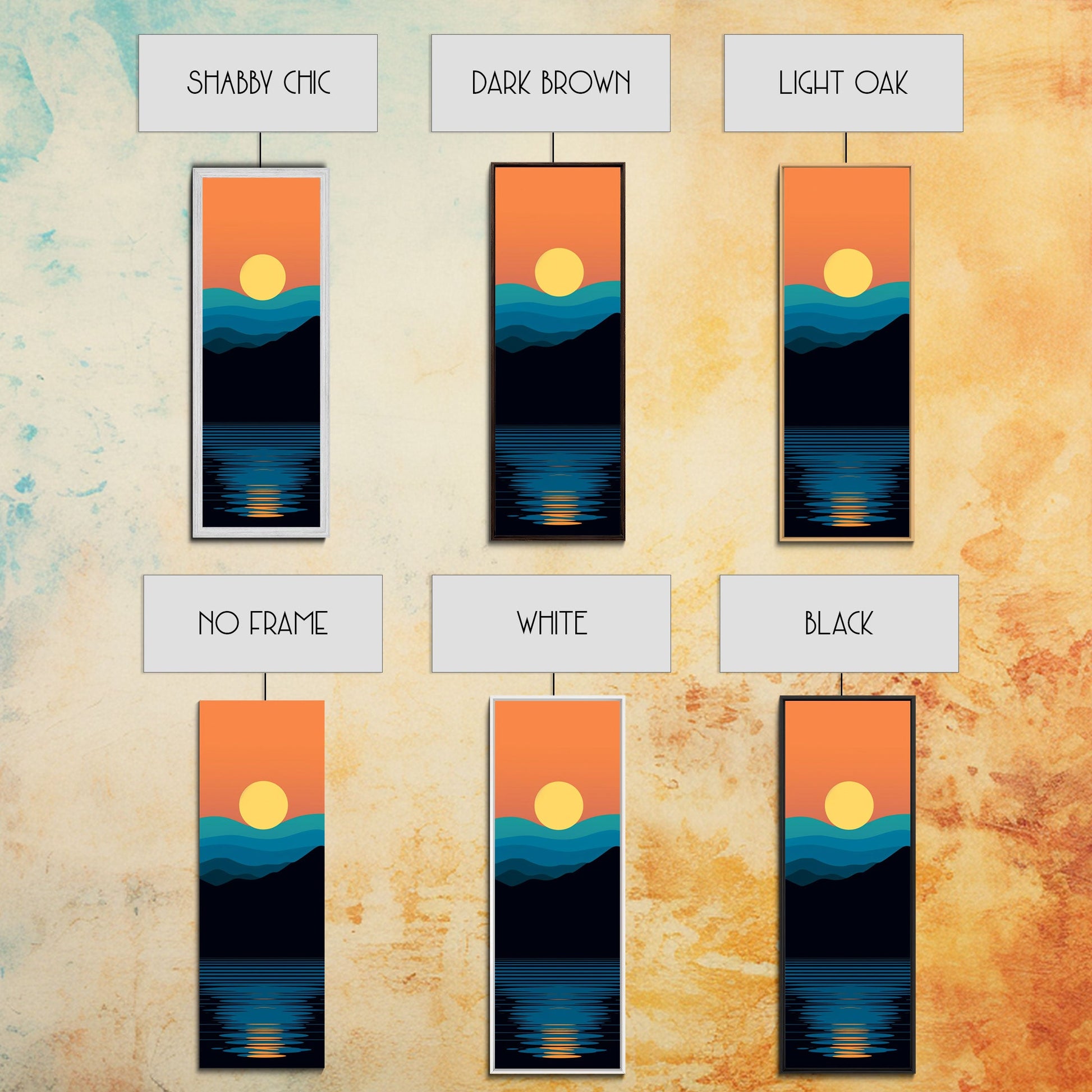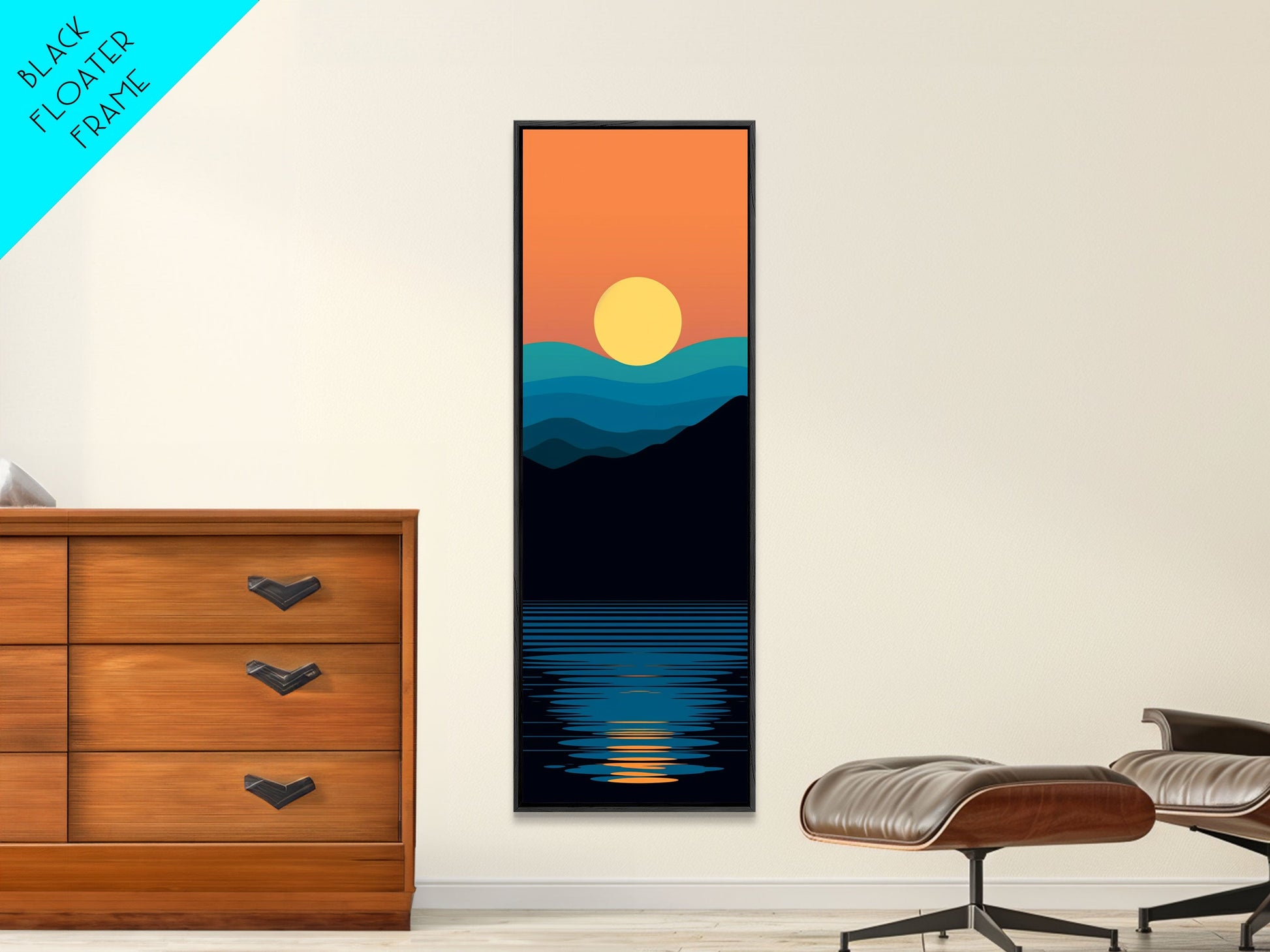 Minimalist Sunset Over Mountains Midcentury Modern Art - Framed Canvas Print, Boho Art, Skinny Art, Living Room Art, Bedroom Decor, Landscape