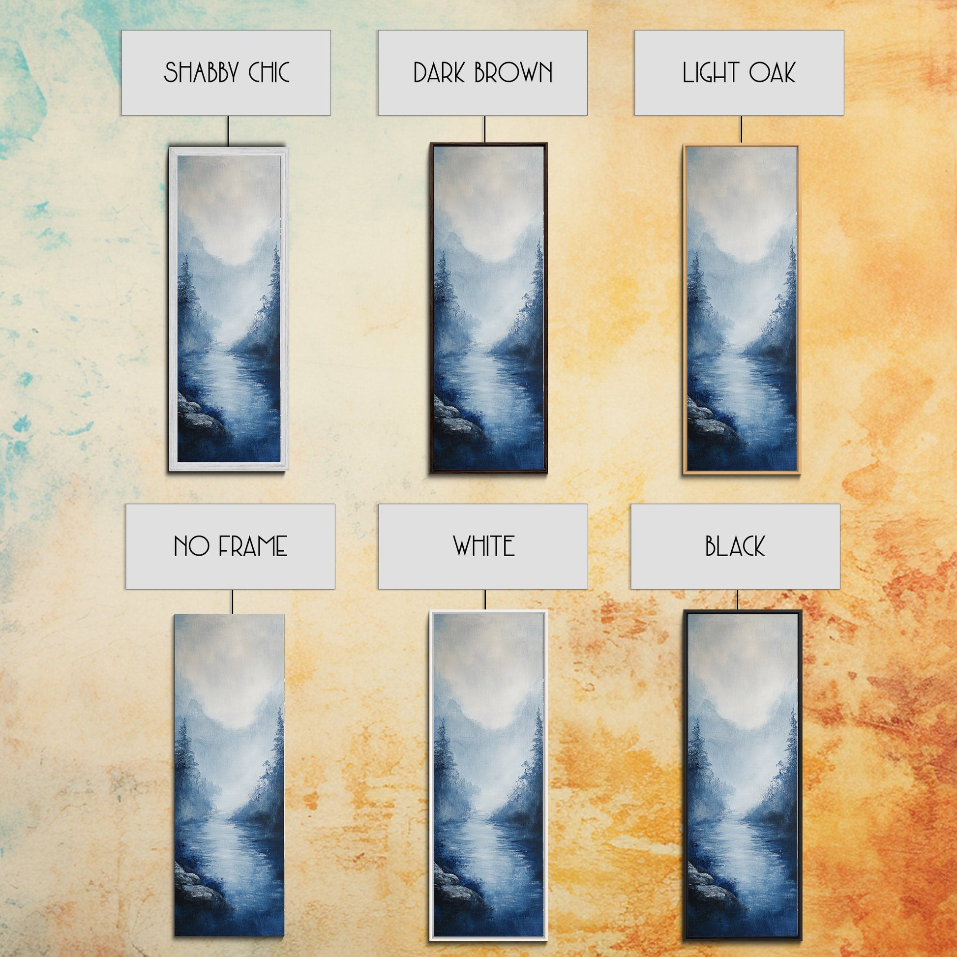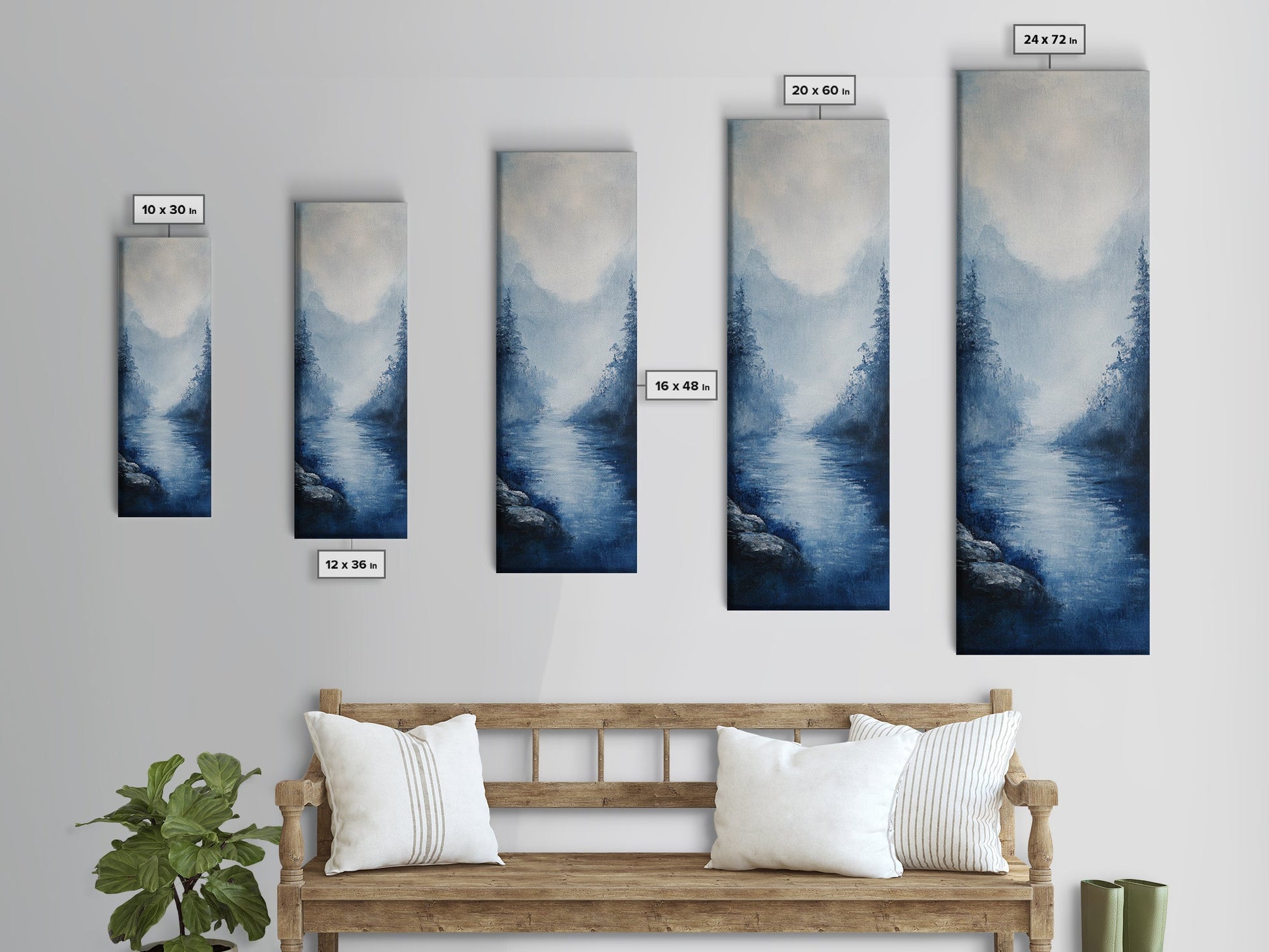 Misty Mountains, smoky mountain art, moody art, panoramic painting, vertical wall art, rustic decor, Canvas Print