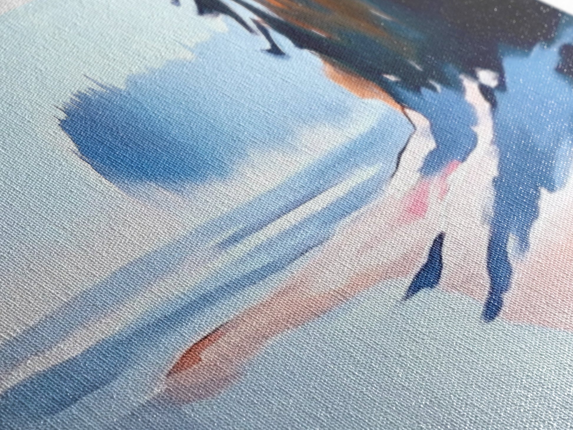 Most of our canvases are made in the USA, with the exception of canvases ordered with the light oak unstained frames, and any large canvases (24x48, 30x60, 16x48 and 20x60) ordered WITH a frame. These are temporarily made in and shipped from Europe, while we try to find a more consistent supplier in the USA.