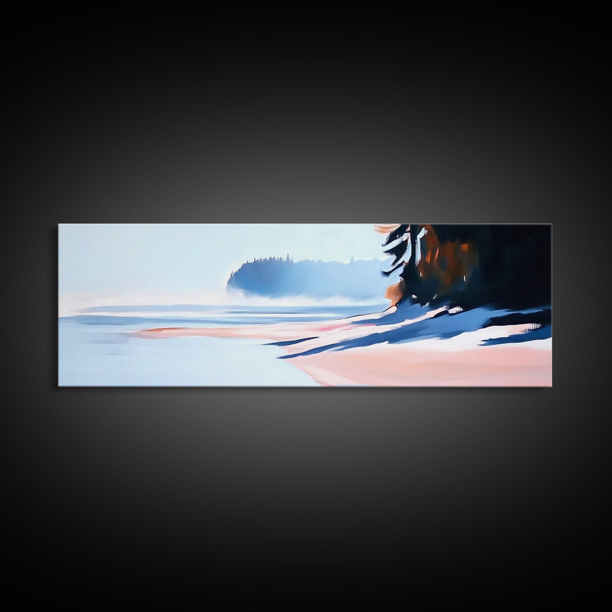 Misty Shoreline, Coastal Landscape Art, Minimalist Seascape, Ocean View, Framed Canvas Print, Modern Home Decor, Living Room Art