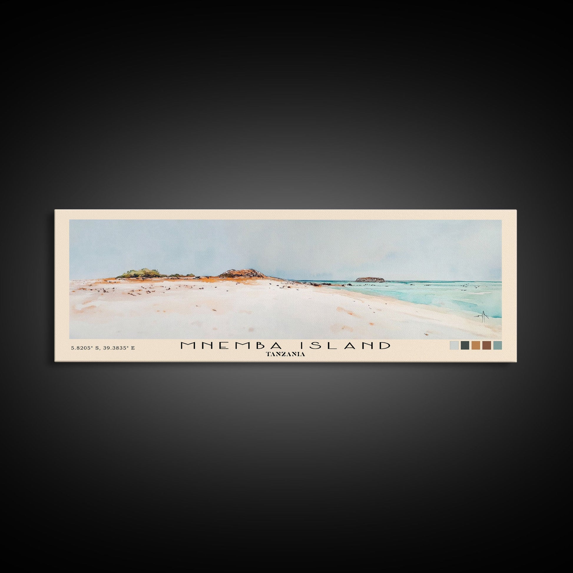 Mnemba Island, Tanzania Watercolor Beach Print, Vacation Gift, Tanzania Wall Art, Framed Canvas Print, Framed Beach Painting
