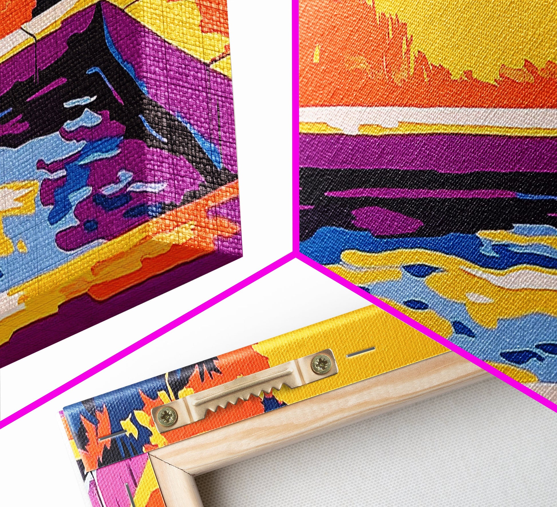 Hello and thank you for taking the time to view our modern high quality giclée artwork! We offer both posters and stretched canvas prints. Our posters are printed on Ultra Matte 60 lb / 230 GSM high quality photo paper, with a thickness of 10 mil. Our canvases are printed on museum grade 350 GSM canvas material with ECO friendly archival grade ink, then hand stretched and stapled over premium, FSC certified and shrink resistant frames. Designed and built to last a lifetime.