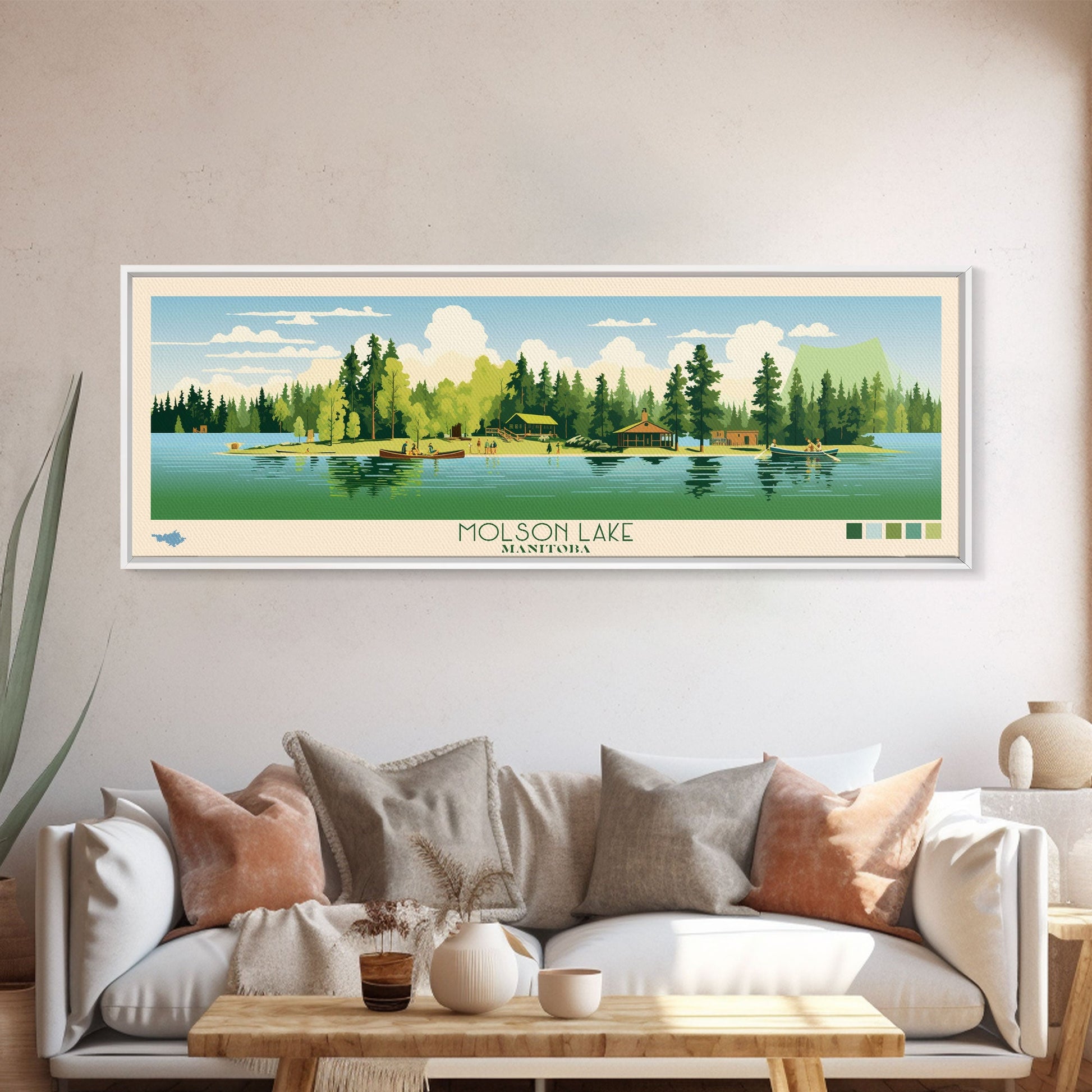 Molson Lake, Manitoba Framed Canvas Print, Panoramic Wall Art, Midcentury Modern, Pop Art, Home Decor, Travel Poster, Bedroom Art